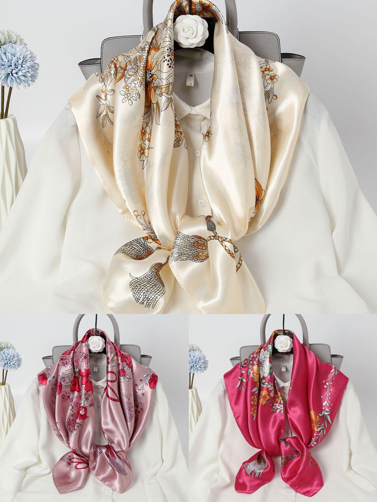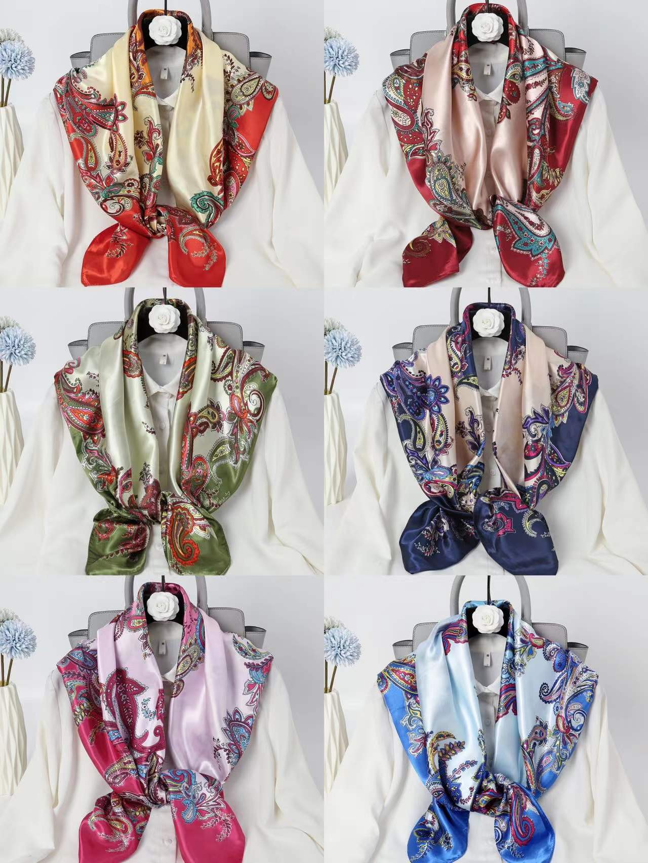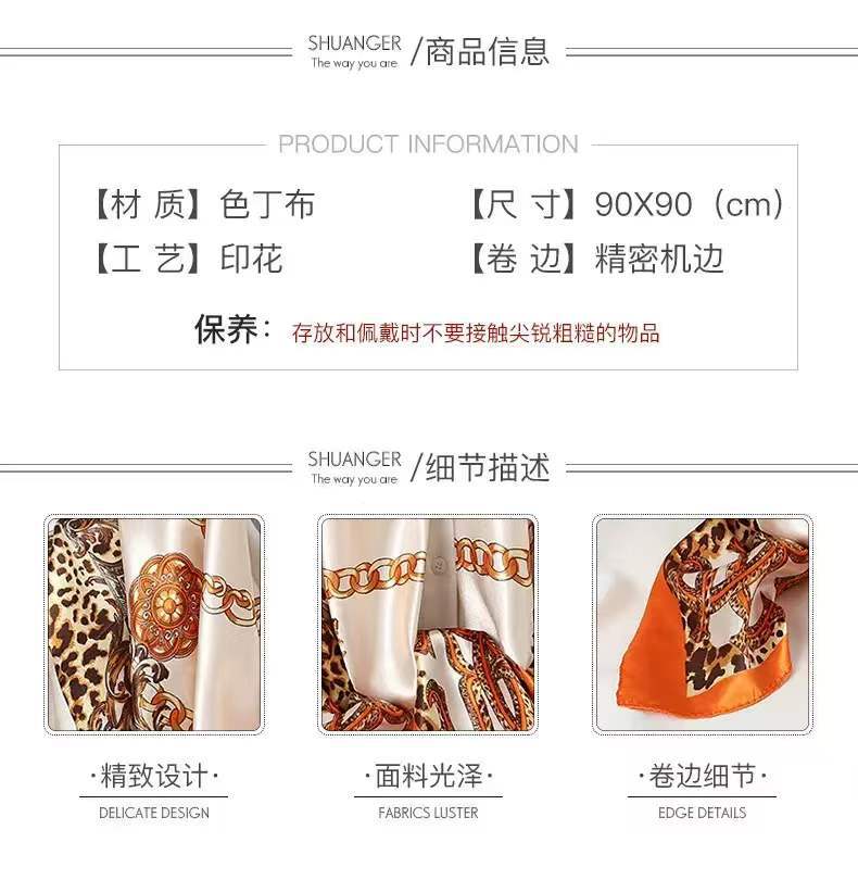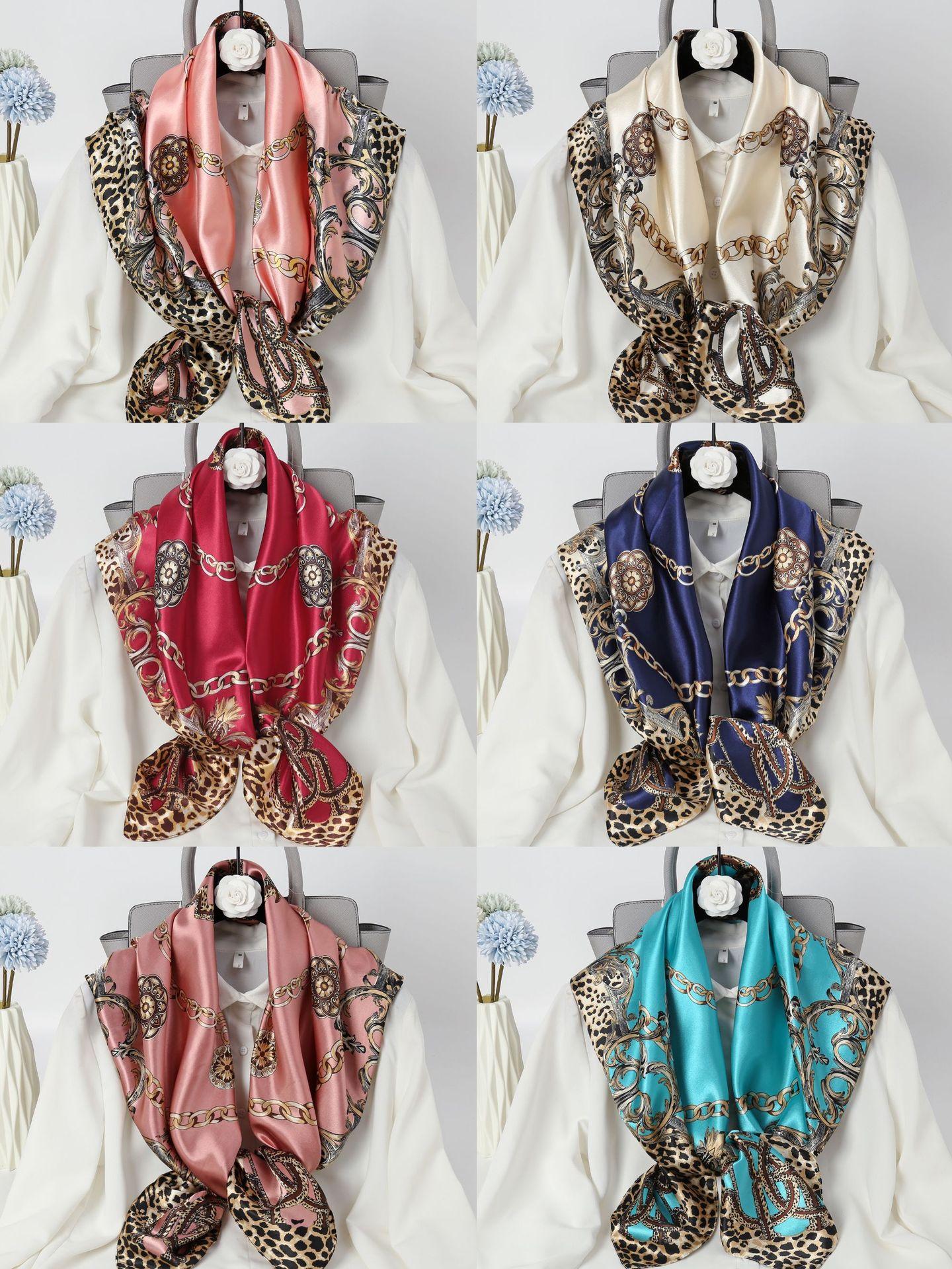 Bufanda cuadrada grande de satén de primavera y otoño de 90 cm, bufanda de moda occidental, bufanda cuadrada, bufanda decorativa, regalo de exhibición al por mayor