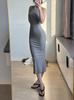 Vestido sin mangas ajustado con cintura ajustada y cuello redondo estilo americano de verano 2024 para mujer.