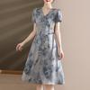 Vestido de manga corta para mamá, para mujer, verano 2024, nuevo estilo, estilo occidental, de mediana edad, elegante, noble, floral, falda cheongsam, adelgazante