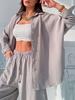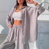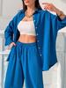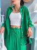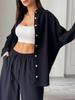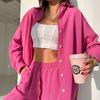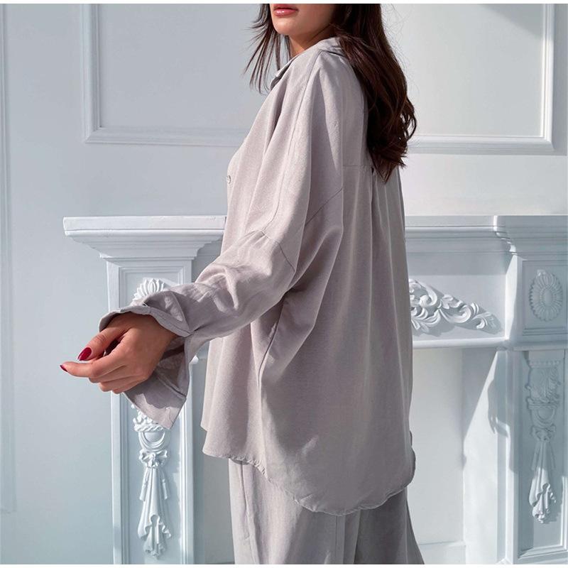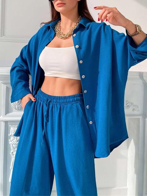Traje Casual Transfronterizo Europeo y Americano Primavera 2025 Nuevo Camisa de Solapa de Color Puro de Manga Larga Top Pantalones Harem Conjunto de Dos Piezas