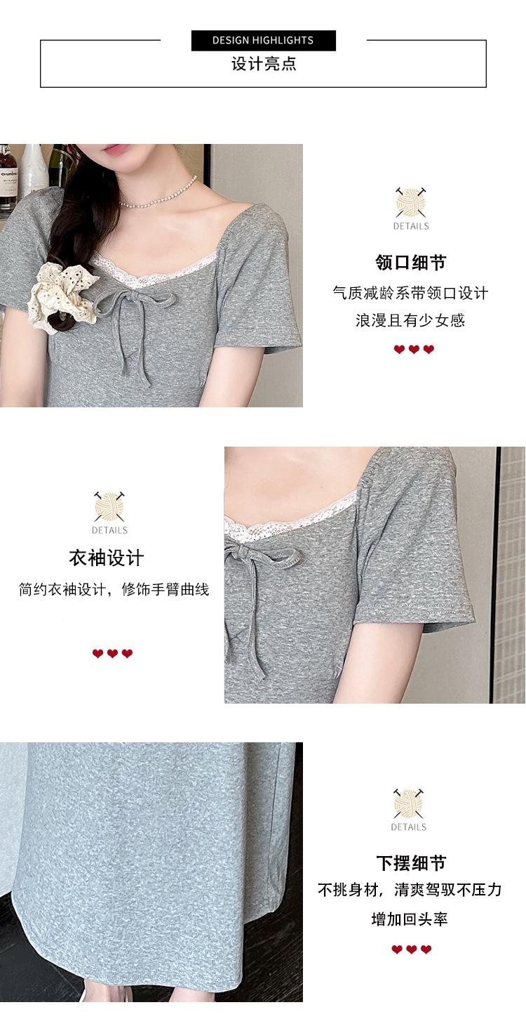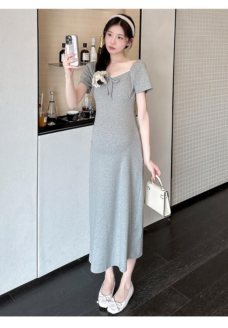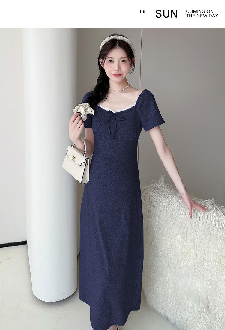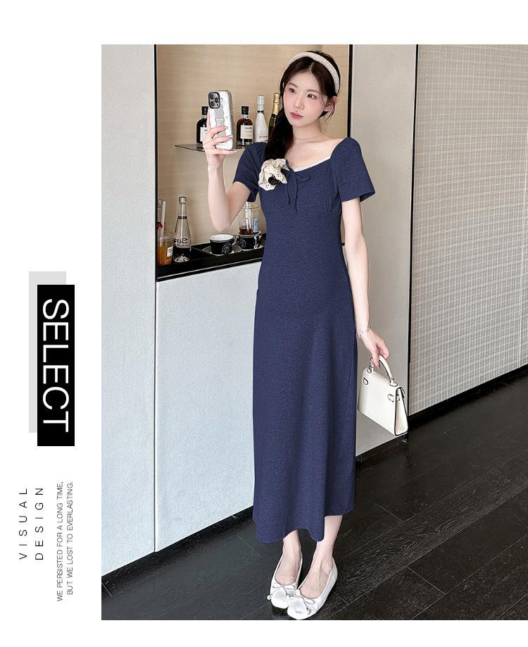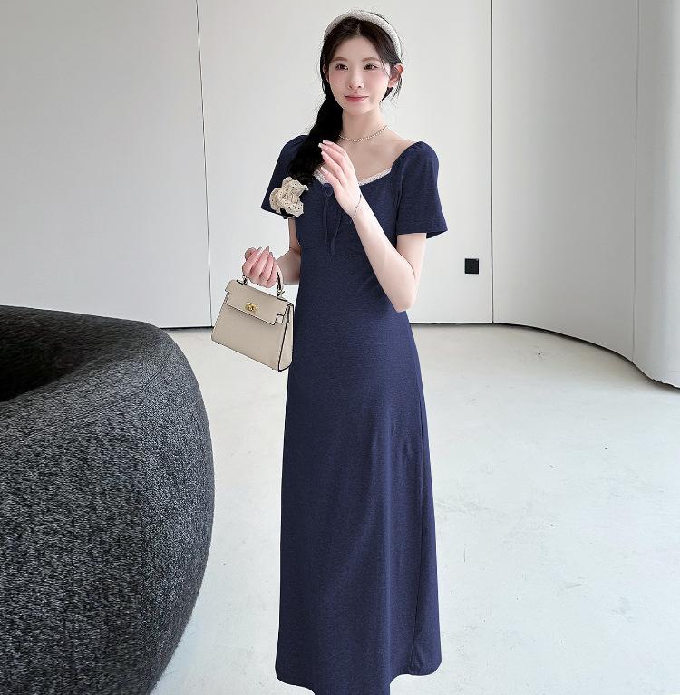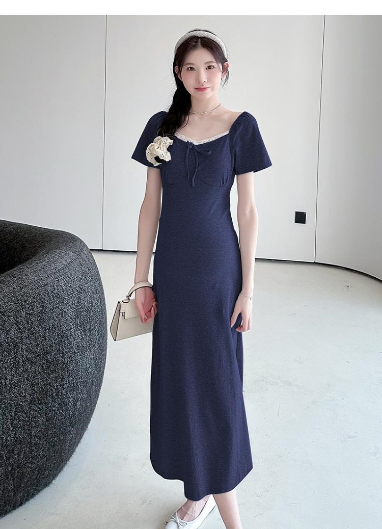 Vestido de maternidad de verano 2025 con lazo de encaje y costuras, elegante, adelgazante y de talla grande para embarazadas.