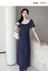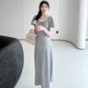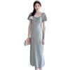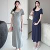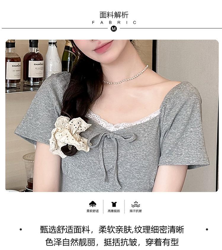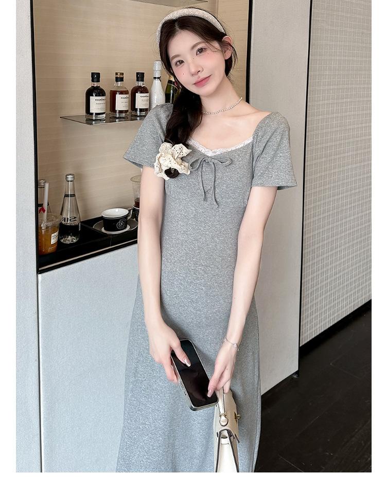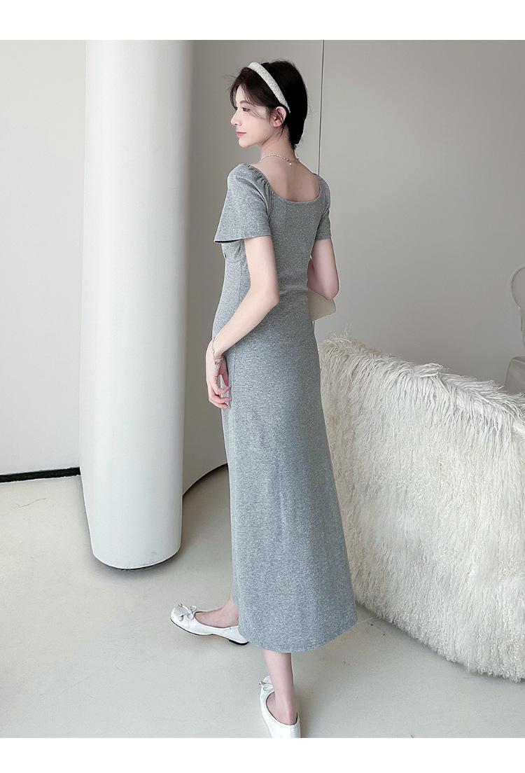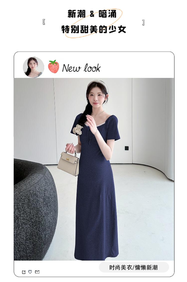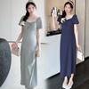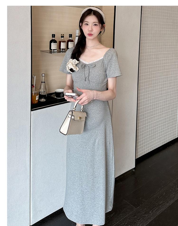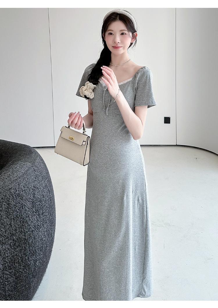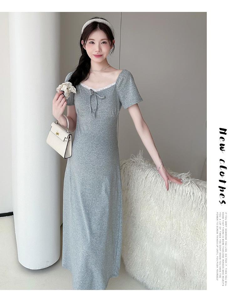 Vestido de maternidad de verano 2025 con lazo de encaje y costuras, elegante, adelgazante y de talla grande para embarazadas.