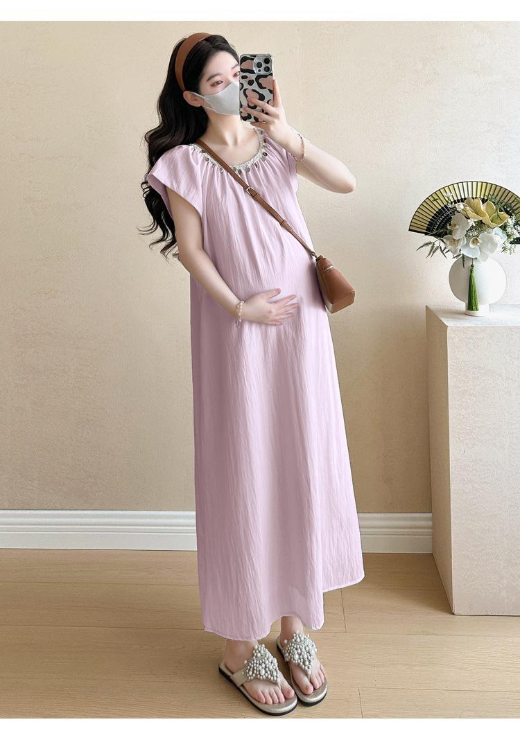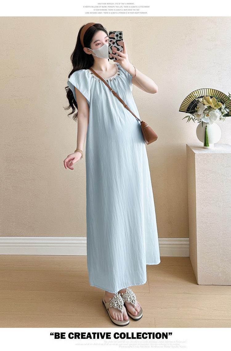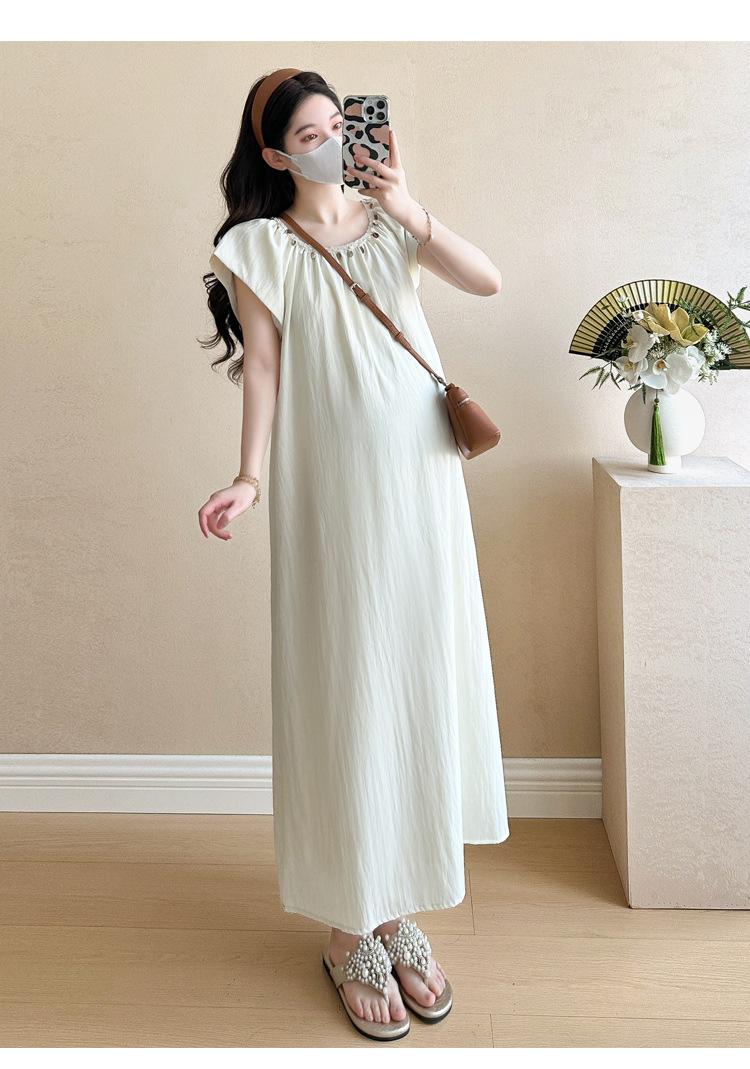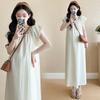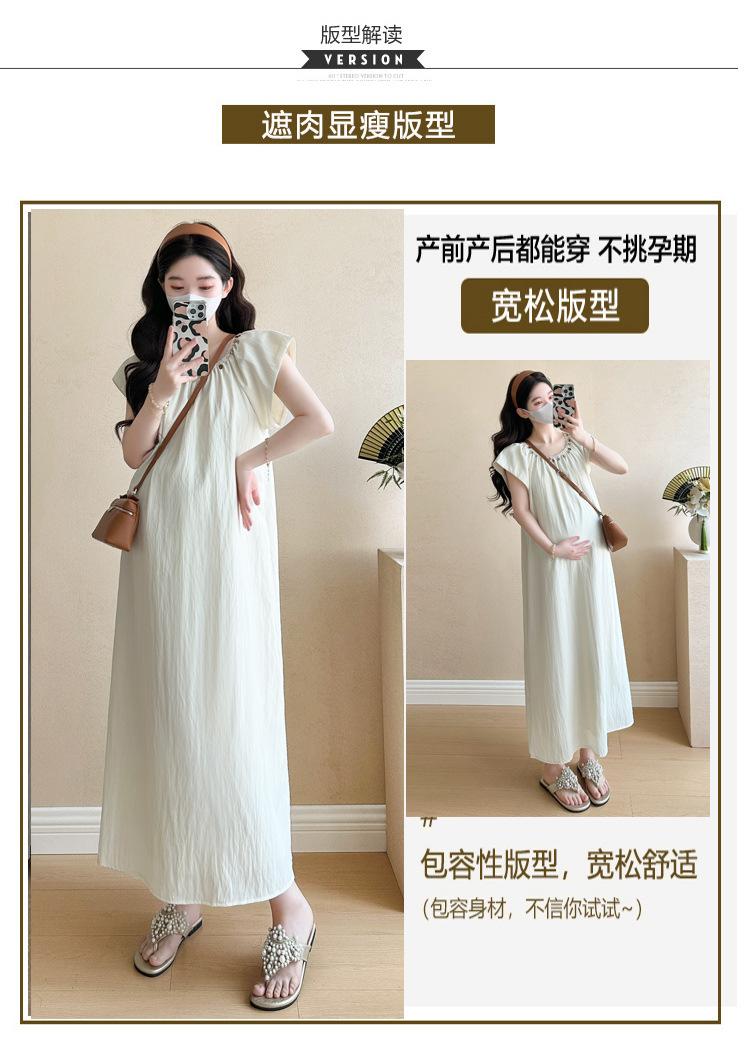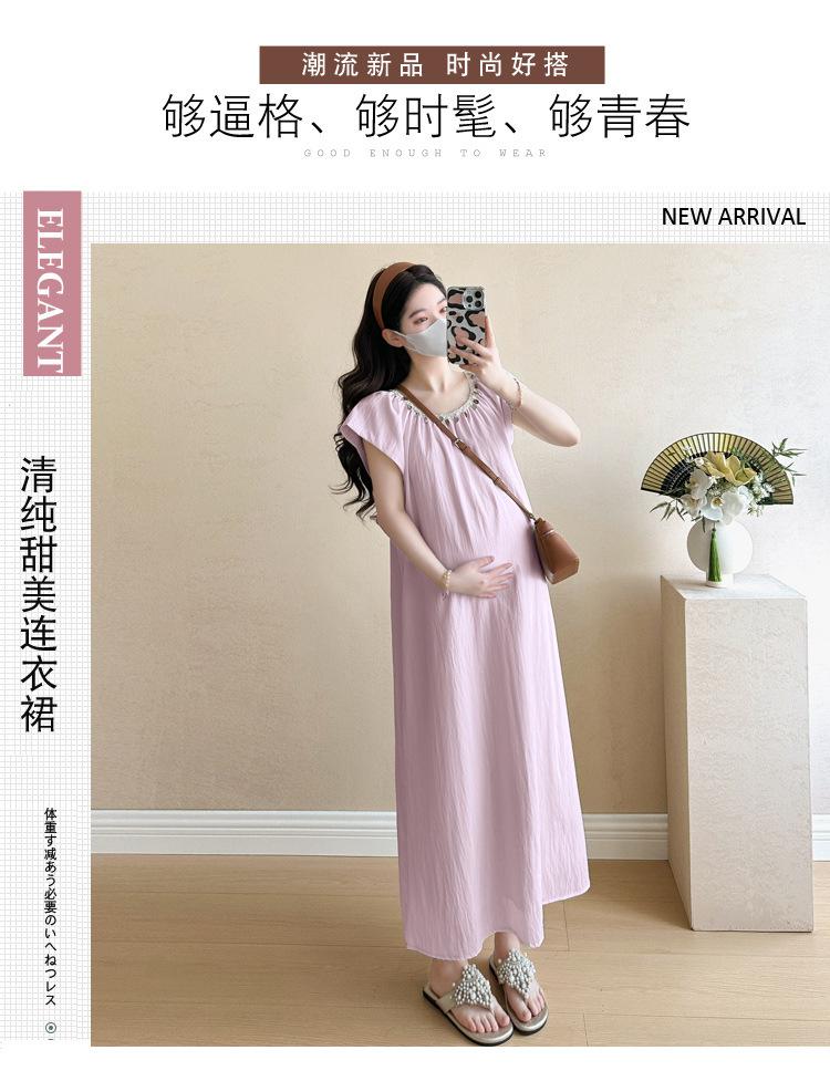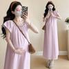 Maternidad 2025 Verano Nuevo Estilo Coreano Moda Elegante Estilo Vacacional Largo Medio Suelto Vestido de Mujer Embarazada