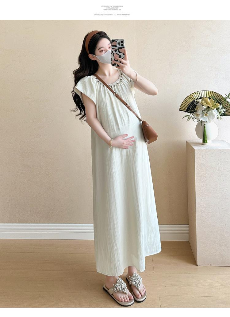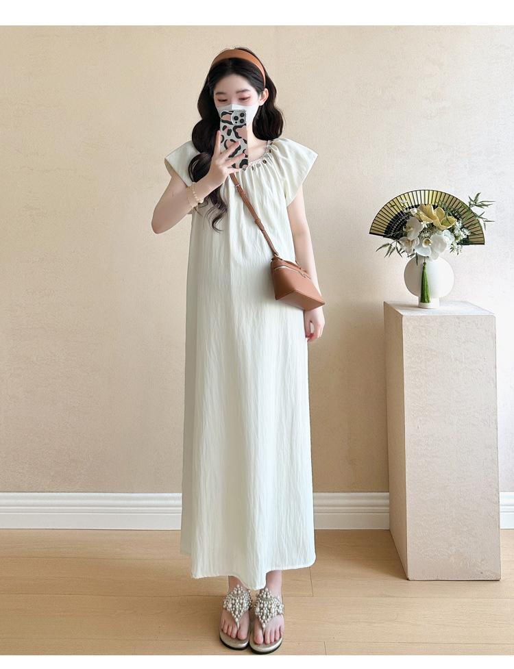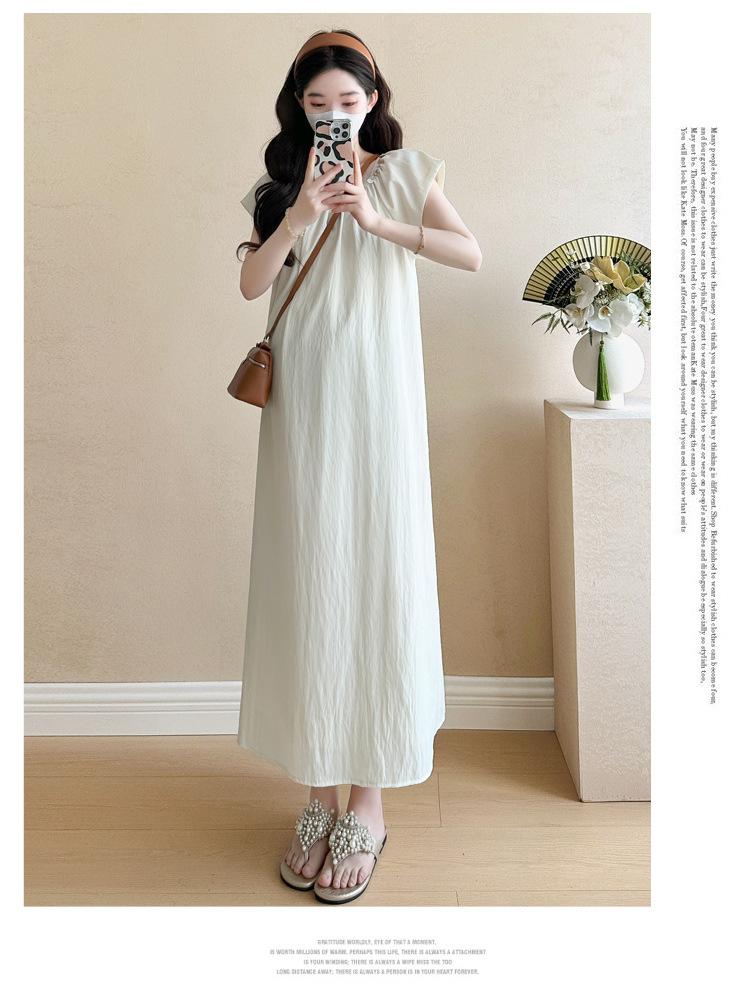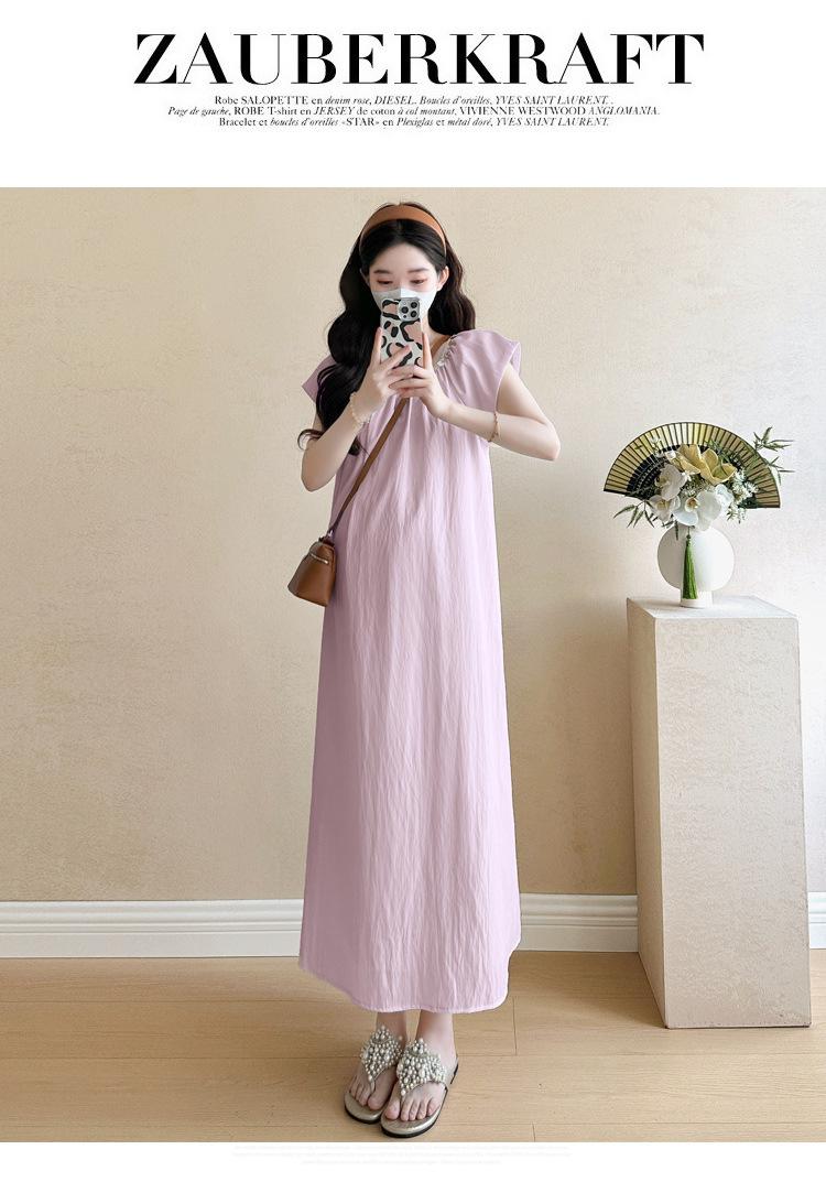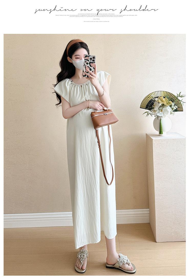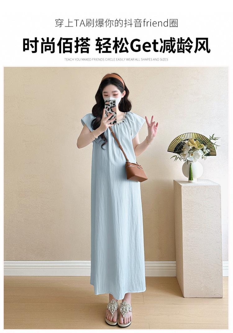 Maternidad 2025 Verano Nuevo Estilo Coreano Moda Elegante Estilo Vacacional Largo Medio Suelto Vestido de Mujer Embarazada