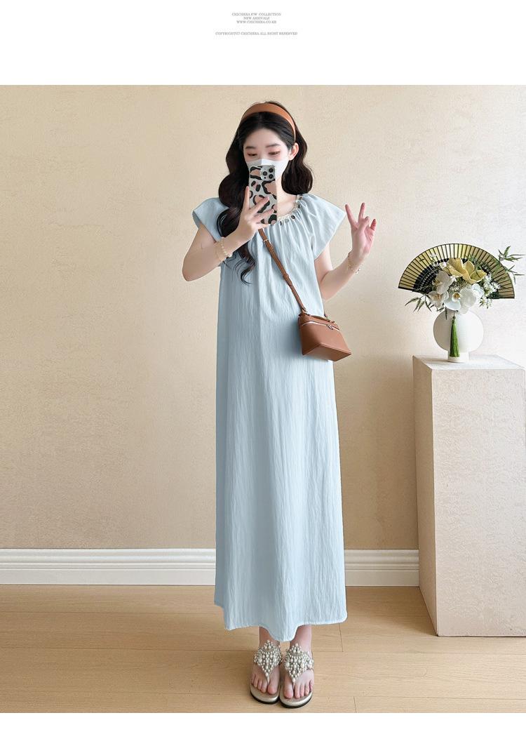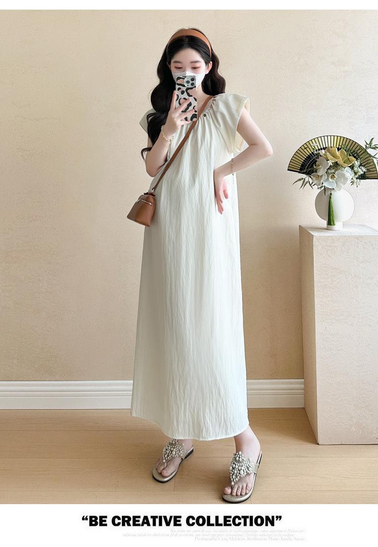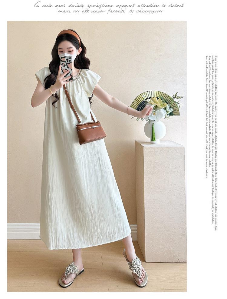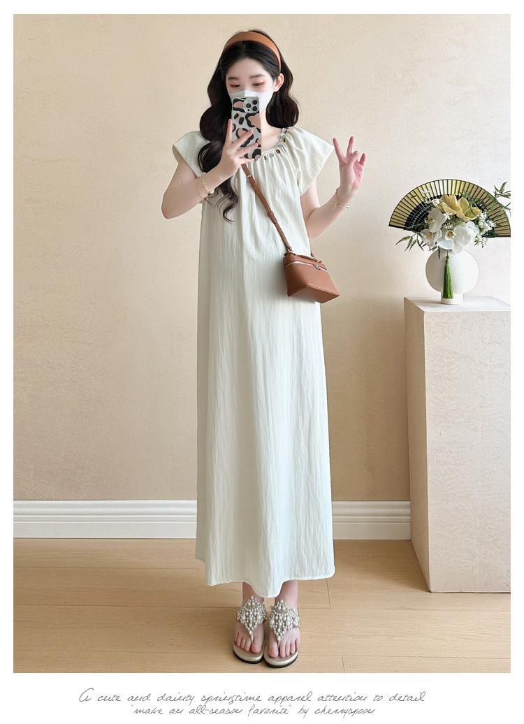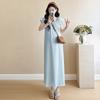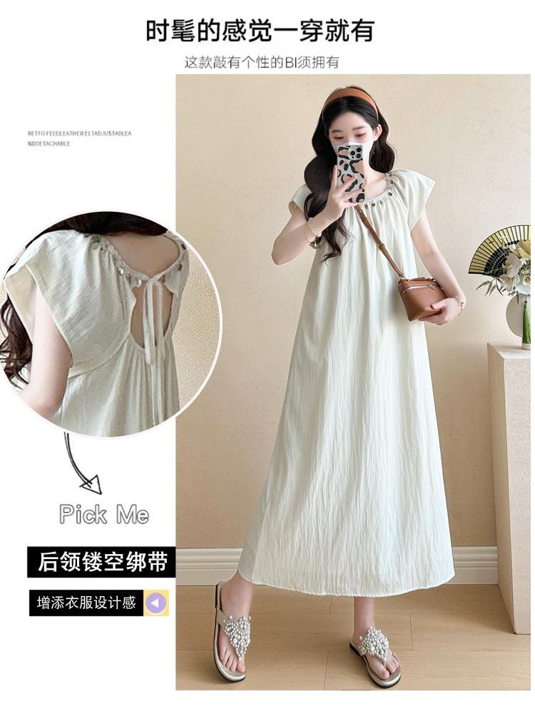 Maternidad 2025 Verano Nuevo Estilo Coreano Moda Elegante Estilo Vacacional Largo Medio Suelto Vestido de Mujer Embarazada