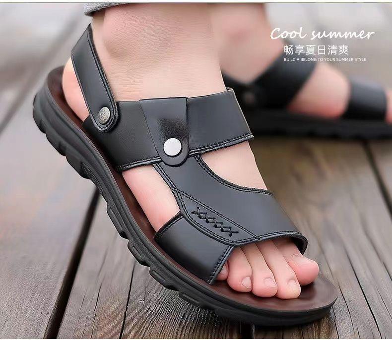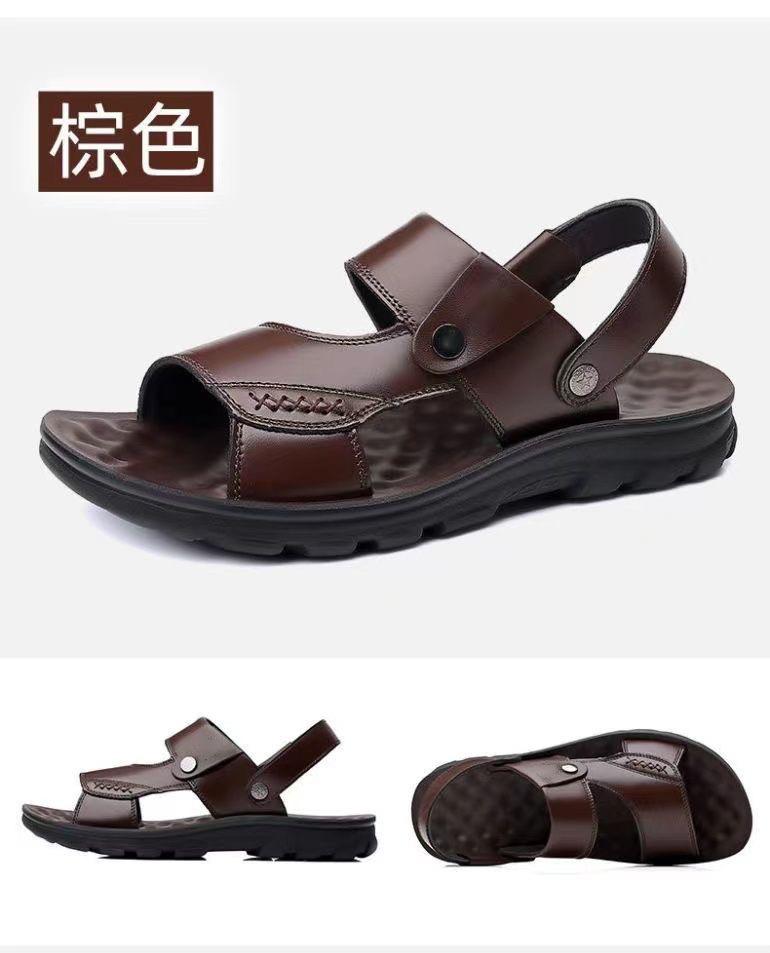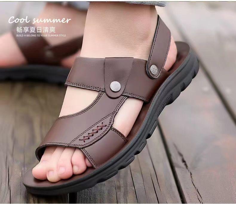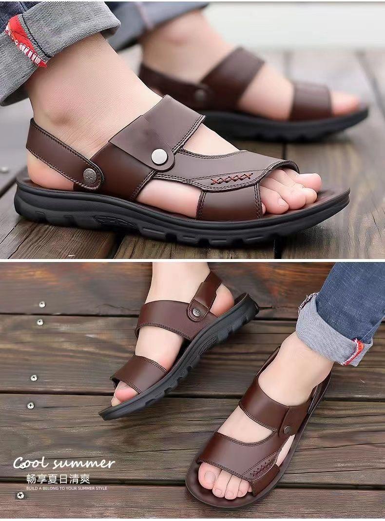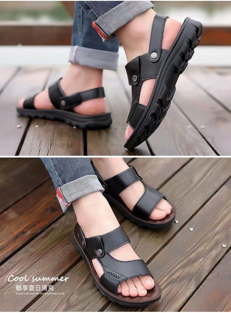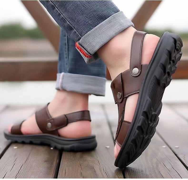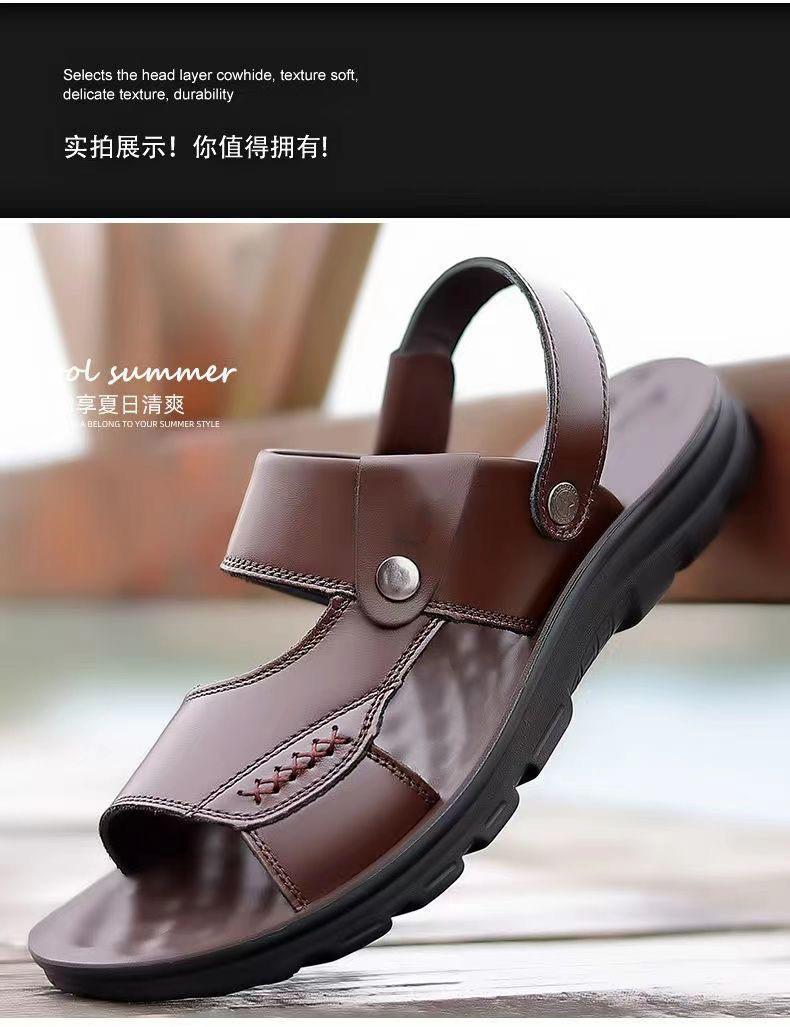 Verano Nuevas Sandalias Outdoor para Hombre Casual Piel de Vacuno de Capa Superior Zapatos de Playa Cómodas Sandalias y Pantuflas de Doble Uso Cuero Genuino Combinan con Todo