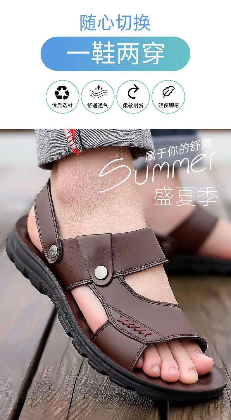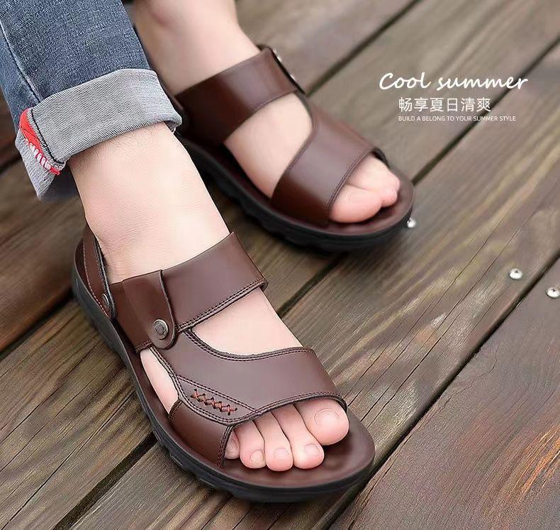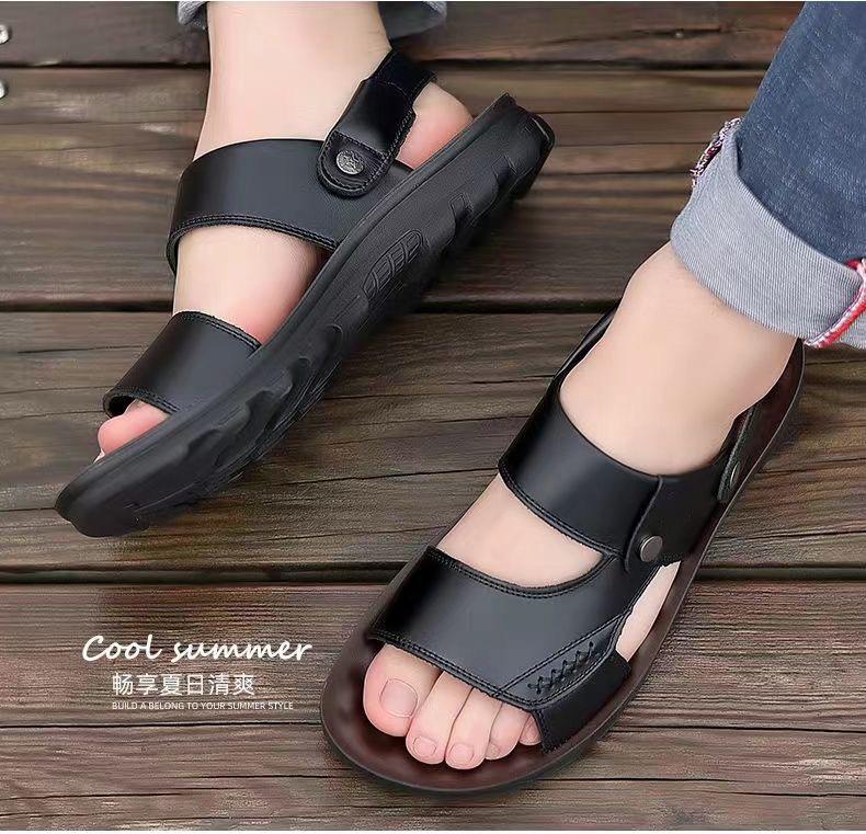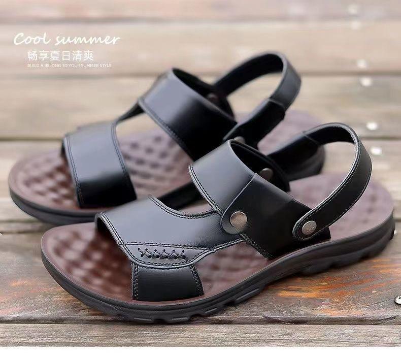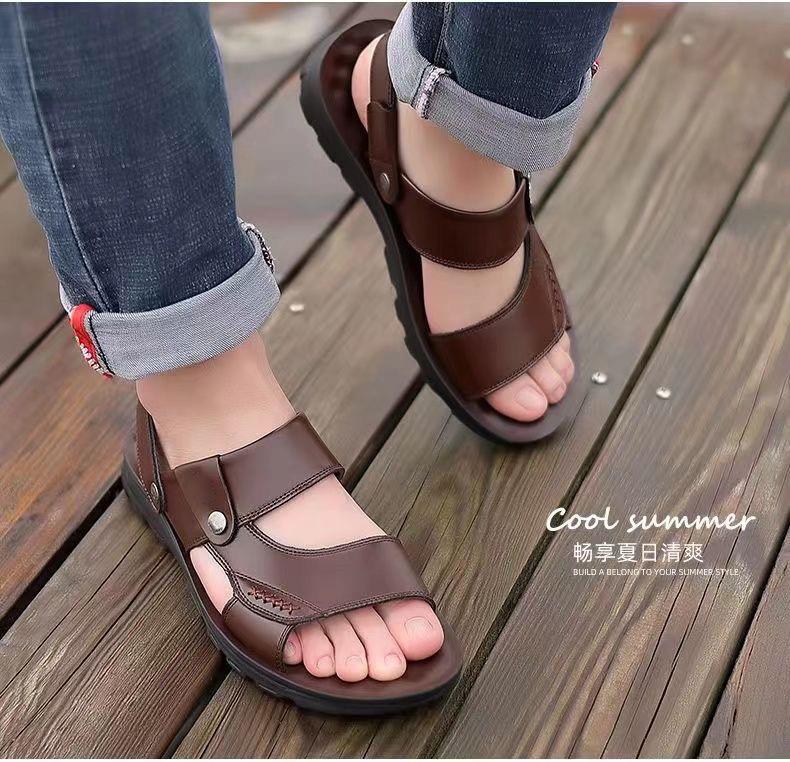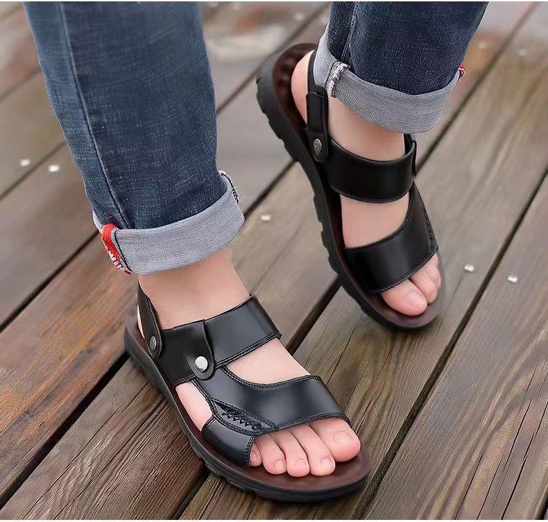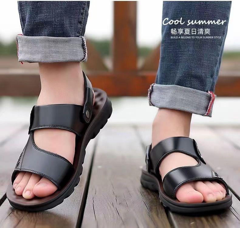 Verano Nuevas Sandalias Outdoor para Hombre Casual Piel de Vacuno de Capa Superior Zapatos de Playa Cómodas Sandalias y Pantuflas de Doble Uso Cuero Genuino Combinan con Todo