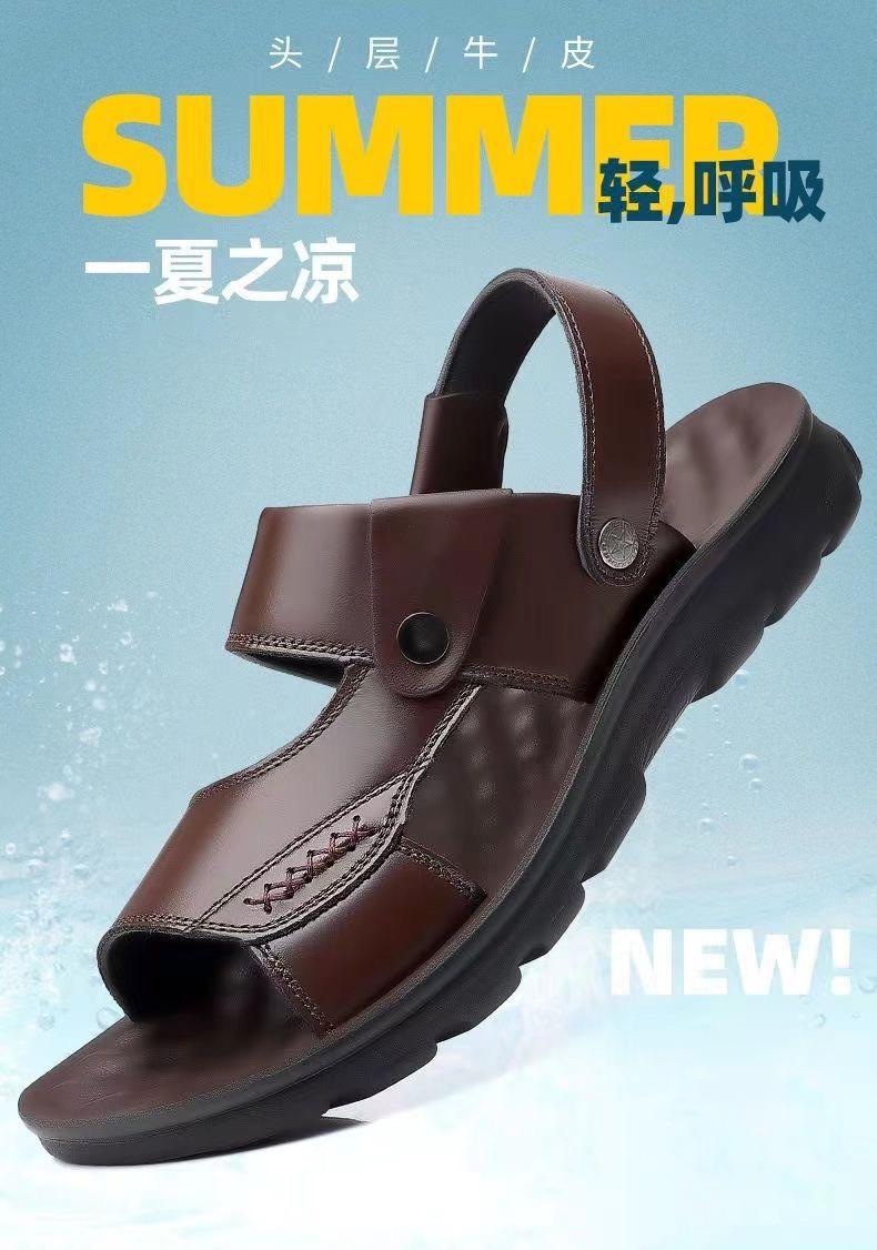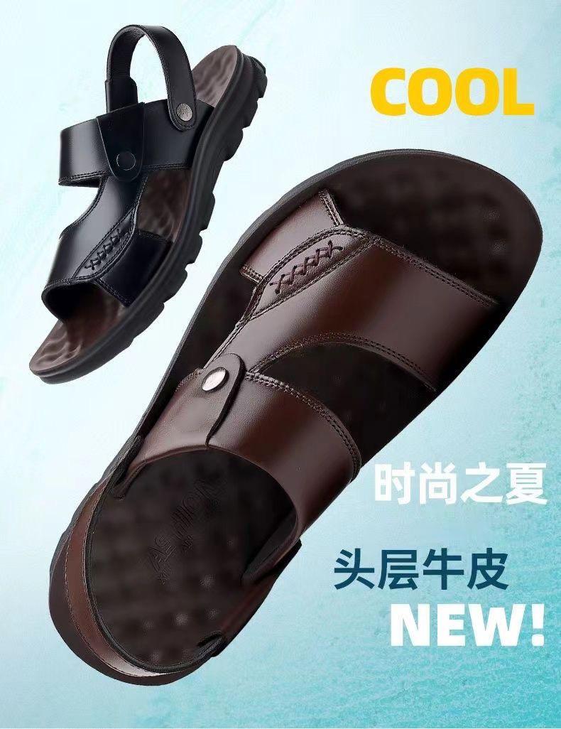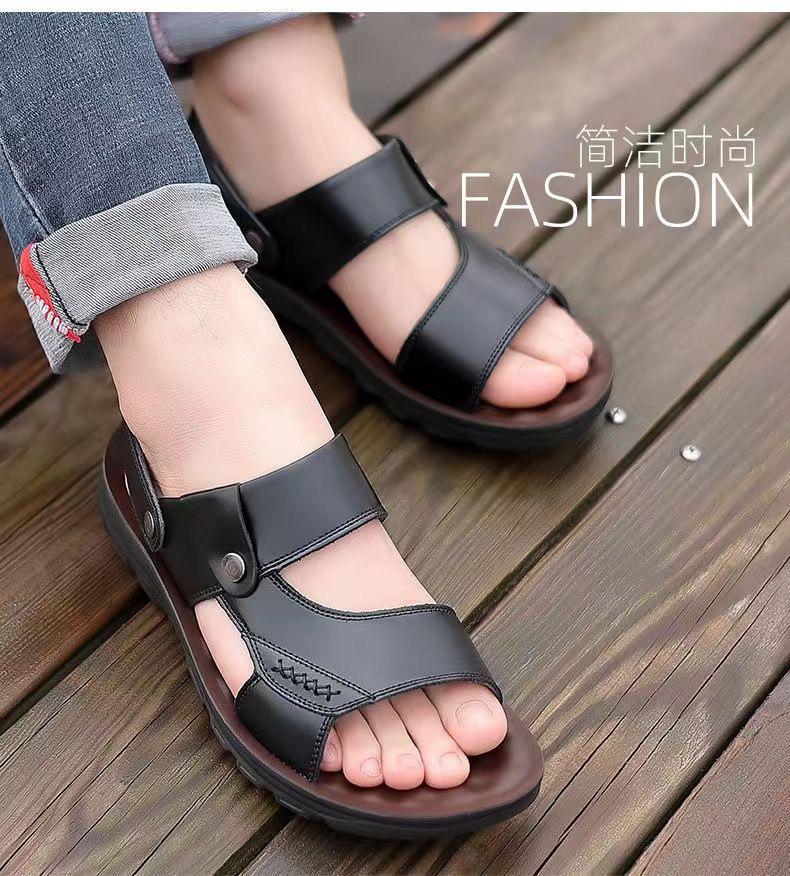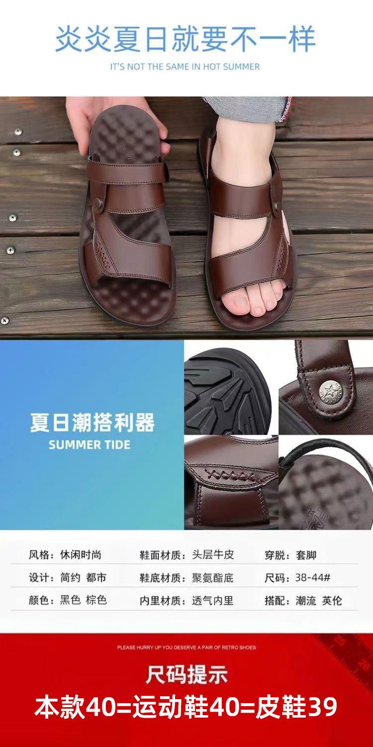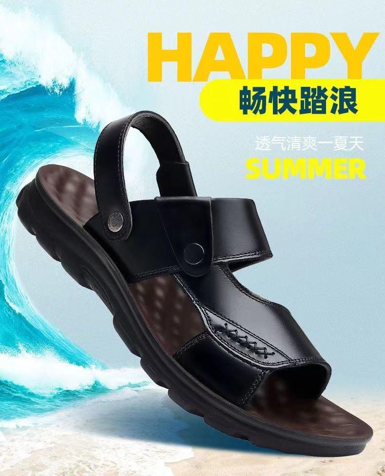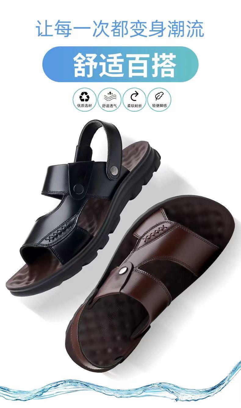 Verano Nuevas Sandalias Outdoor para Hombre Casual Piel de Vacuno de Capa Superior Zapatos de Playa Cómodas Sandalias y Pantuflas de Doble Uso Cuero Genuino Combinan con Todo