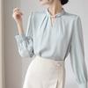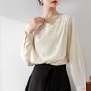 Camisa de Satén Blanco Estilo Francés para Mujer, Diseño Nuevo Primavera 2024, Sensación Nicho de Alta Gama, Top Petit para Viajera