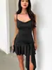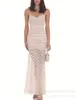 Vestido sexy de encaje ajustado con tirantes finos y temperamento de color sólido simple a la moda de verano europea y americana de comercio exterior 2025