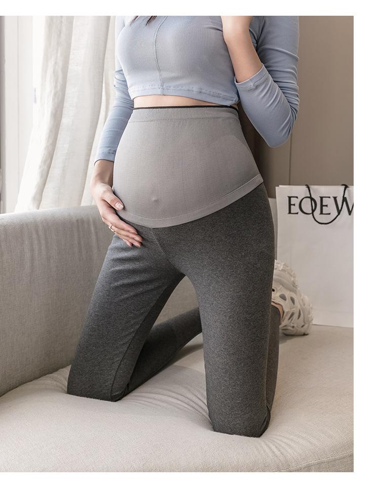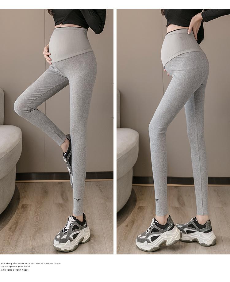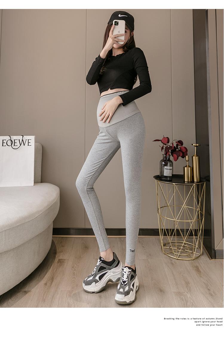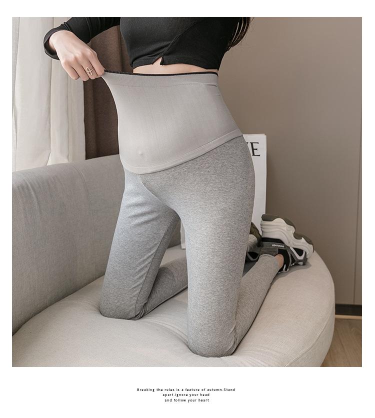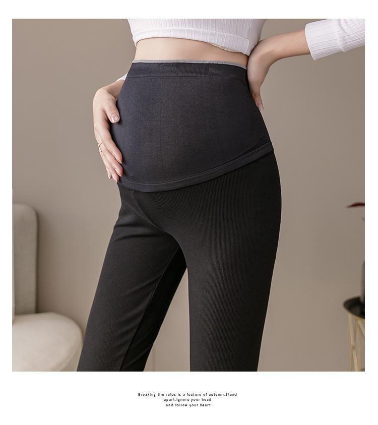 Pantalones de Realidad Pats 9921# para Mujer Embarazada Otoño Abdominal Sin Marcas Boca de Pie Inglés Yoga Nueve Puntos Pantalones Bottom para Mujer Embarazada