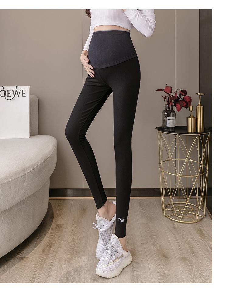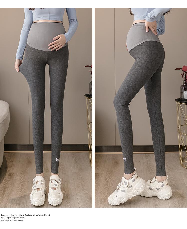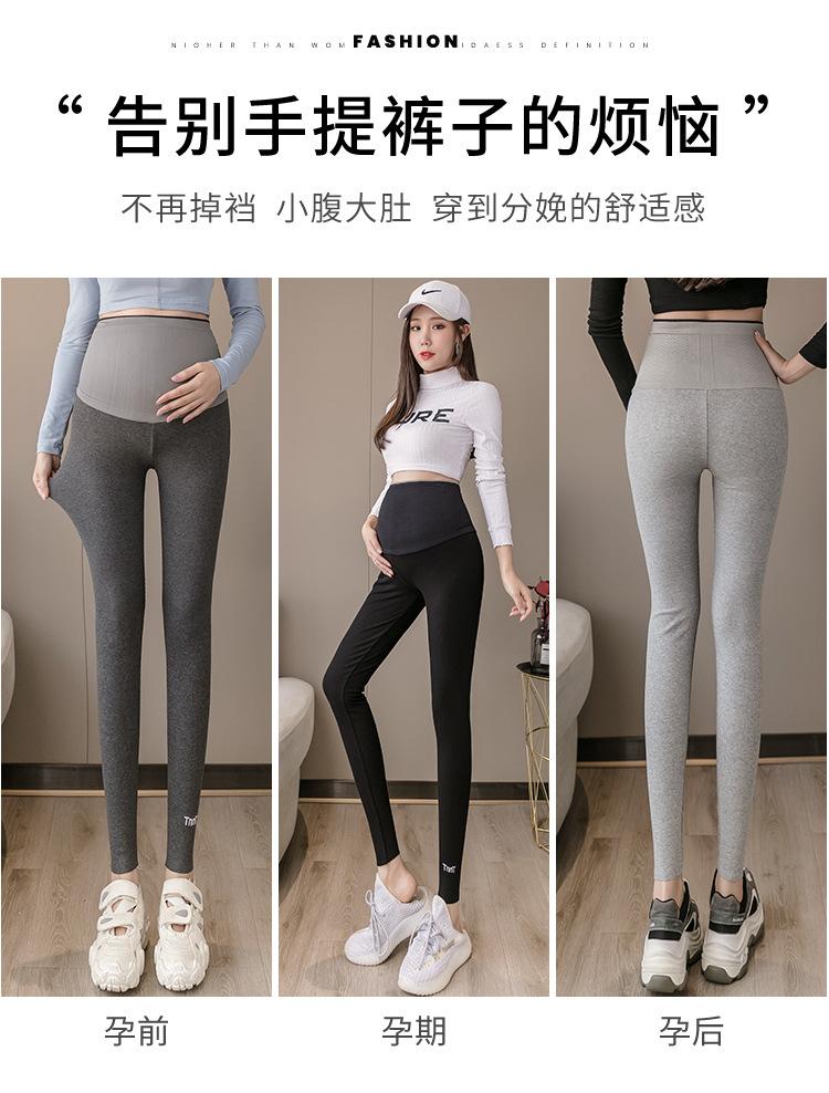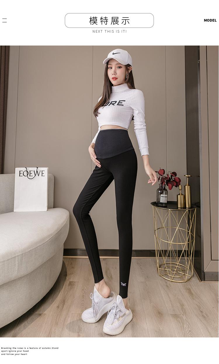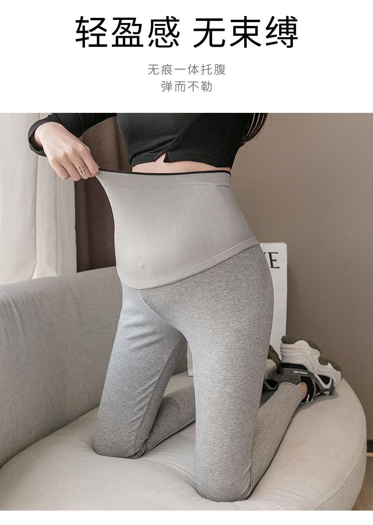 Pantalones de Realidad Pats 9921# para Mujer Embarazada Otoño Abdominal Sin Marcas Boca de Pie Inglés Yoga Nueve Puntos Pantalones Bottom para Mujer Embarazada