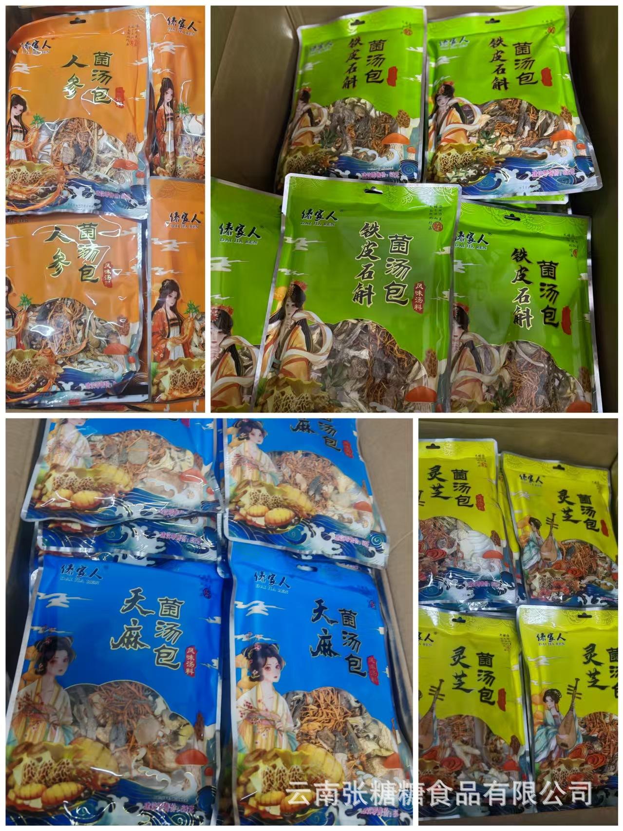 Directamente del Fabricante, Bolsa de Sopa de Hongos de Yunnan, Ginseng, Gastrodia, Ganoderma Lucidum, Dendrobium Officinale Bolsa de Sopa de Hongos 100g