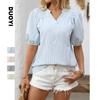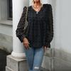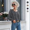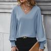 Amazon Estación Independiente Otoño Venta Caliente Camisa de Manga Larga de Comercio Exterior Europeo y Americano Transfronteriza Color Sólido Cuello en V Camisa Calada Mujer