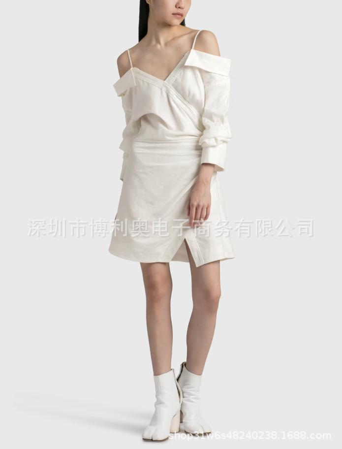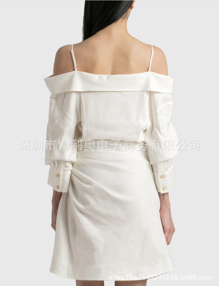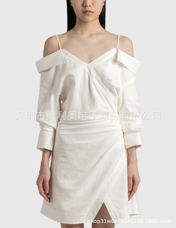 2025 nuevo temperamento ins europeo y americano pinza cintura cuello hombros descubiertos camisa moda irregular vestido ajustado