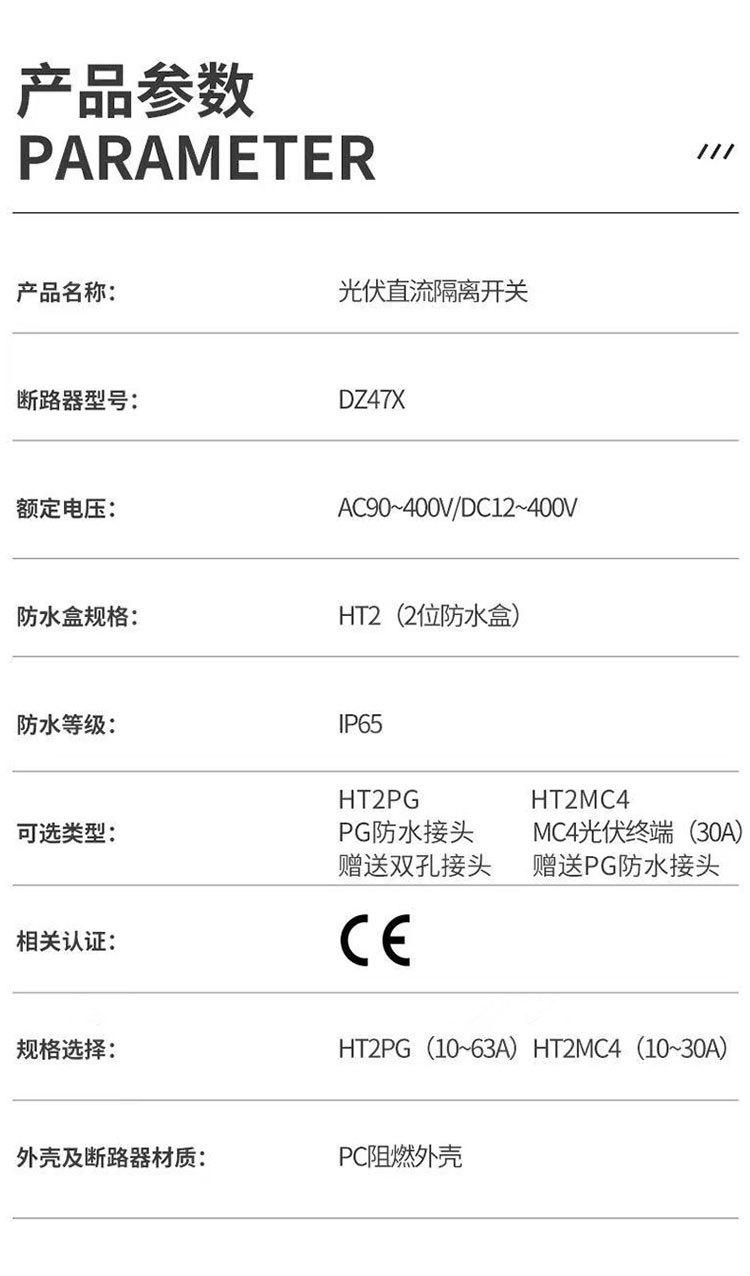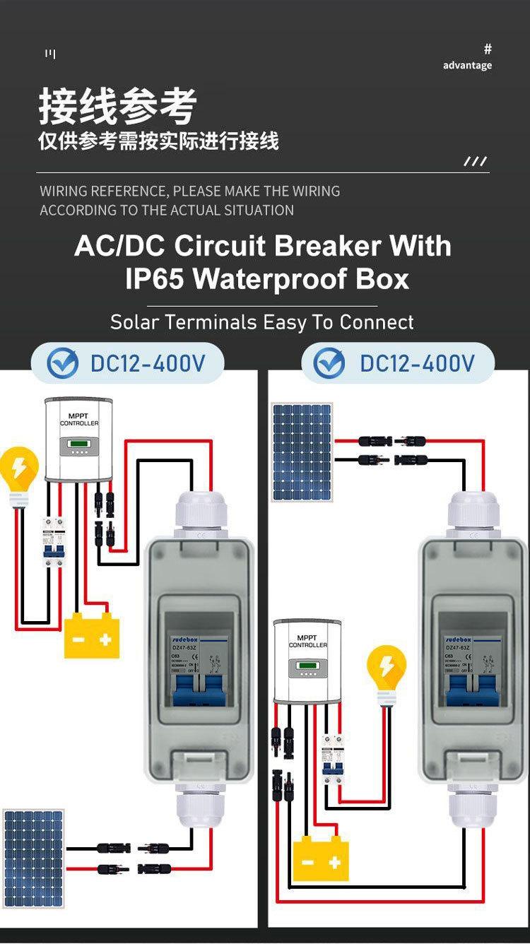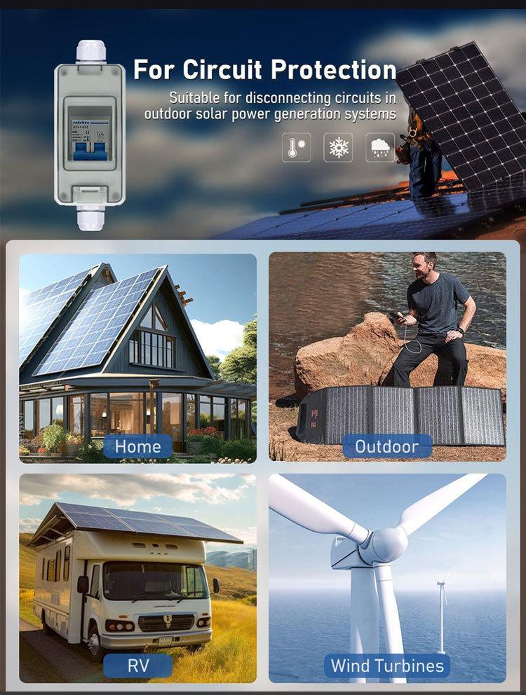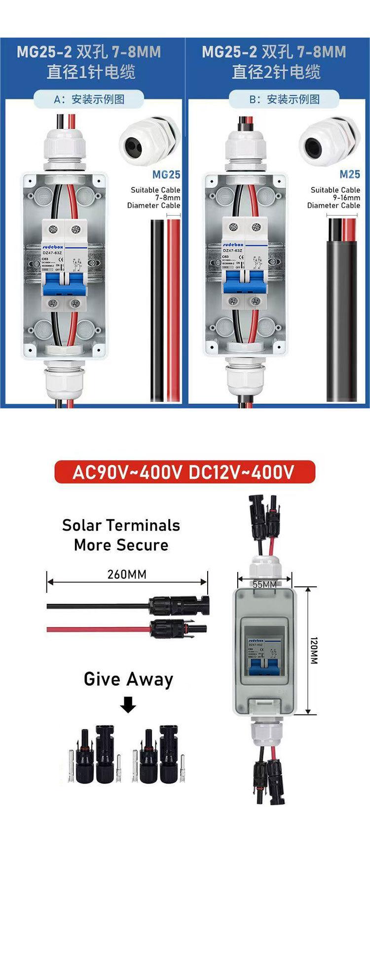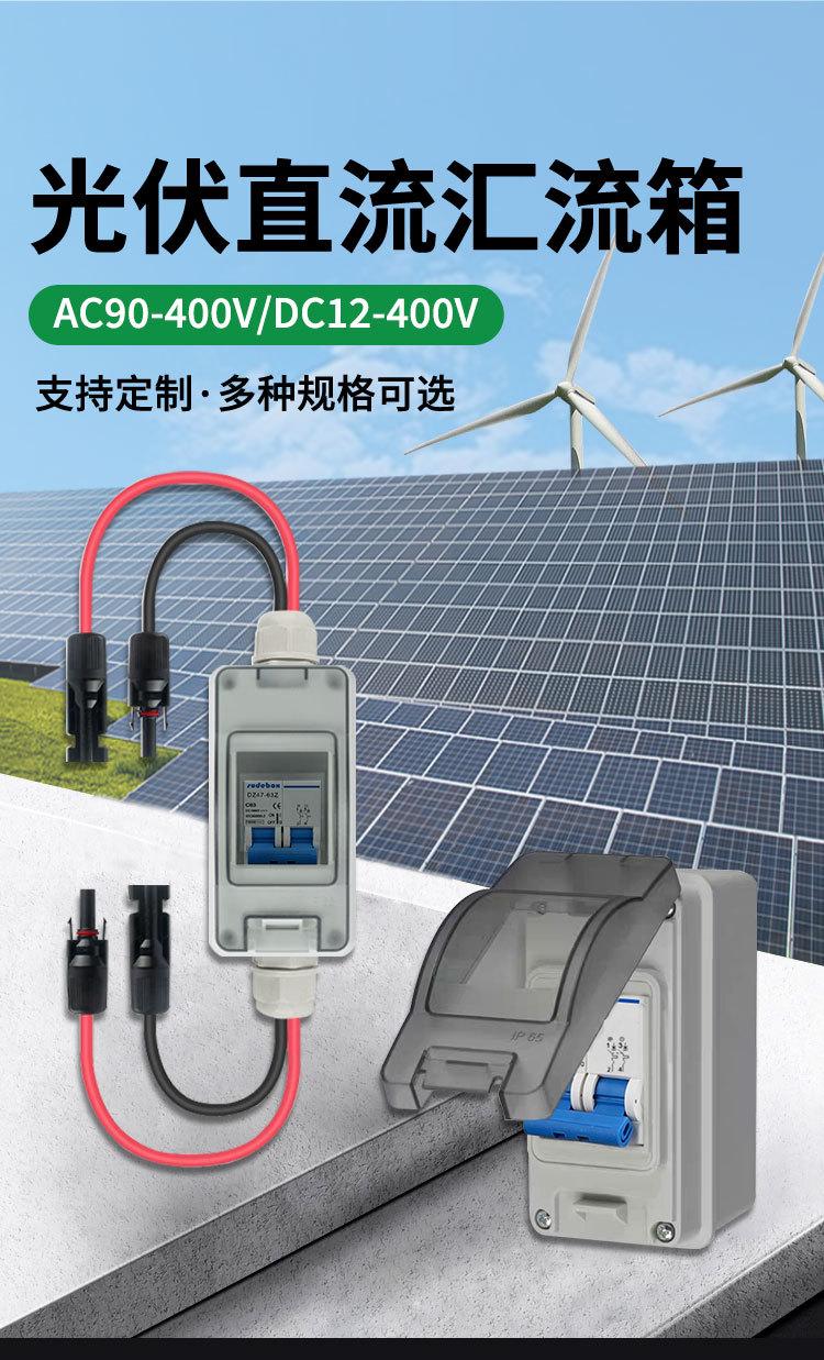 Pequeña caja de distribución impermeable 2p caja fotovoltaica impermeable con interruptor automático caja combinadora solar DC500V protección contra rayos