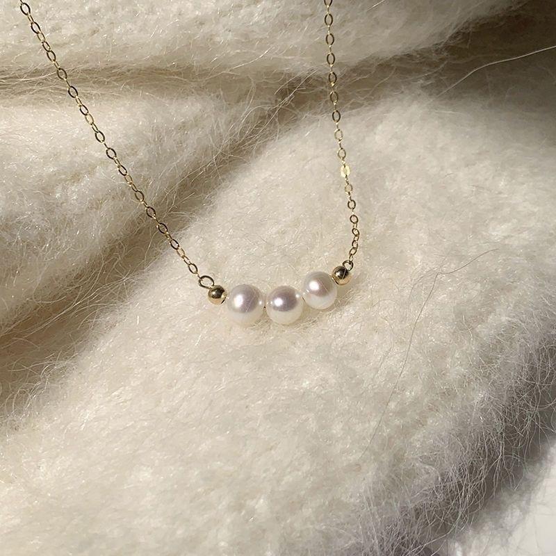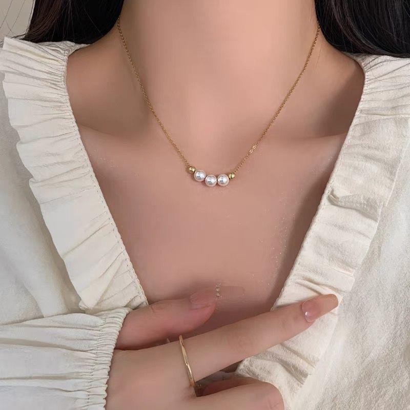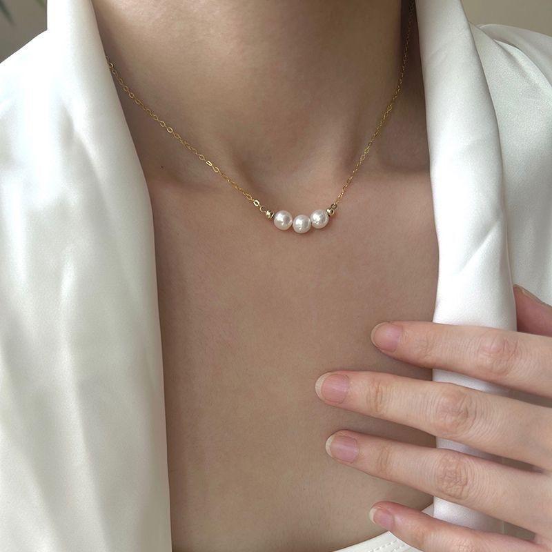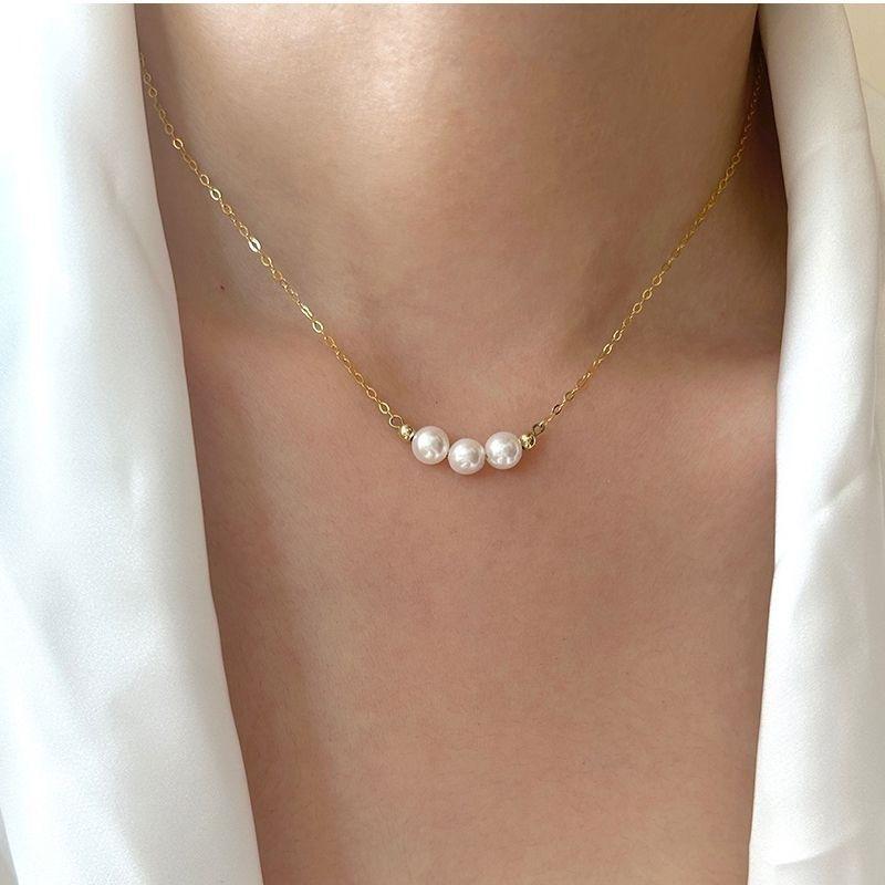 Nuevo collar de perlas con cadena de clavícula para mujer, sencillo, ligero, de lujo, diseño de nicho, collar retro chapado en oro a la moda para mujer, combina con todo.