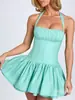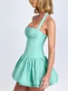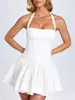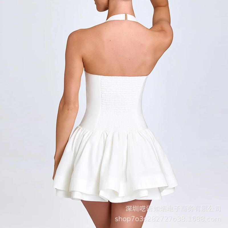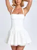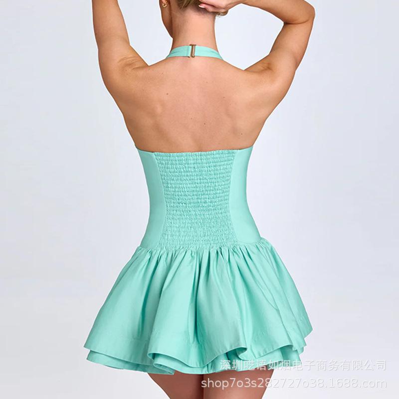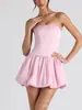 2025 Nuevo Europeo y Americano Transfronterizo Deseo Puro Chica Caliente Color Sólido Sin Espalda Sin Tirantes Vestido con Volantes Abullonado Falda Corta para Mujer