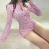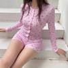 2025 Europa y Estados Unidos transfronterizo primavera y verano nuevo dulce viento botón cintura figura floral pequeño hoyo manga larga mameluco