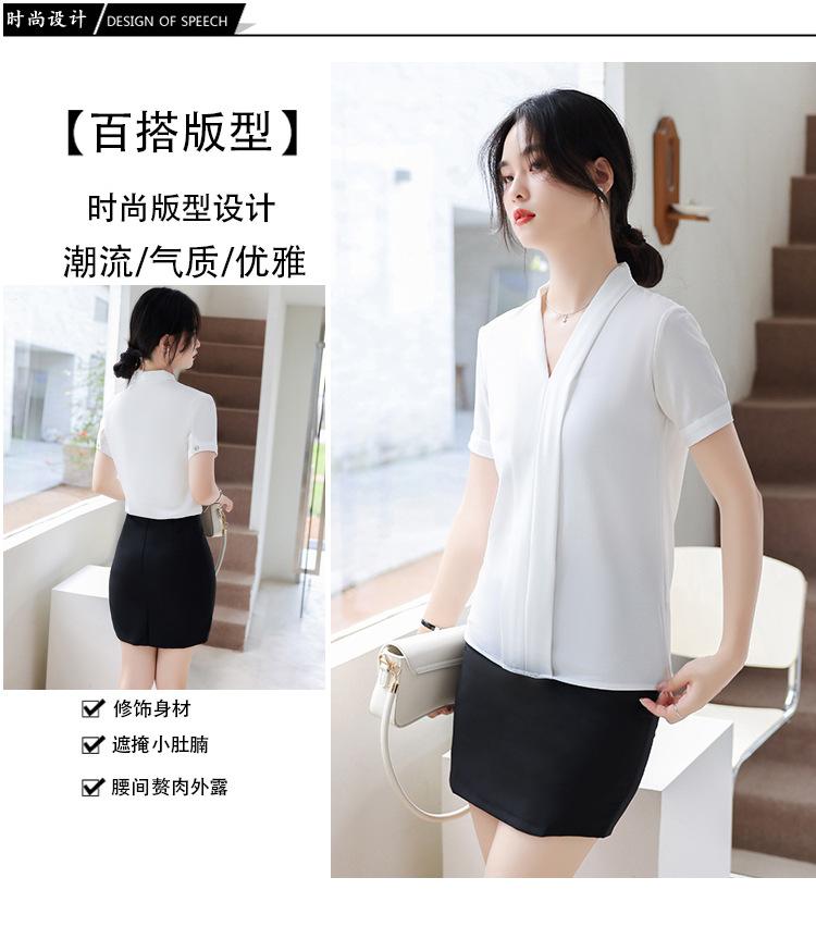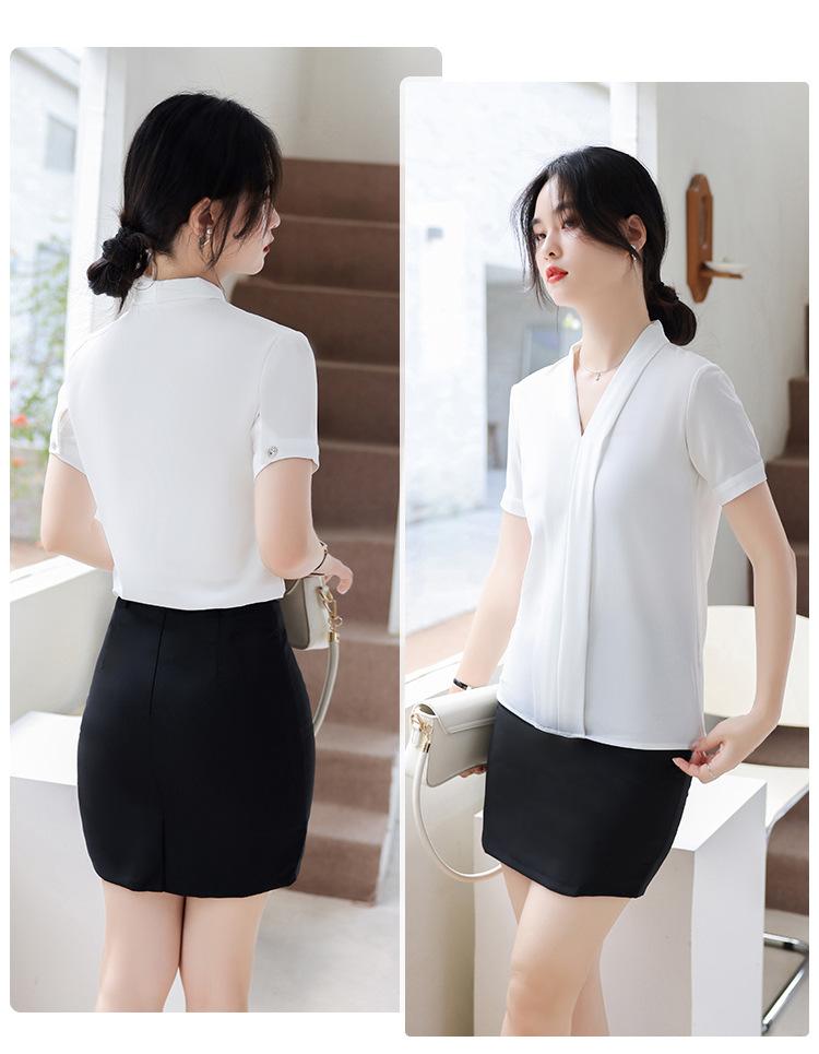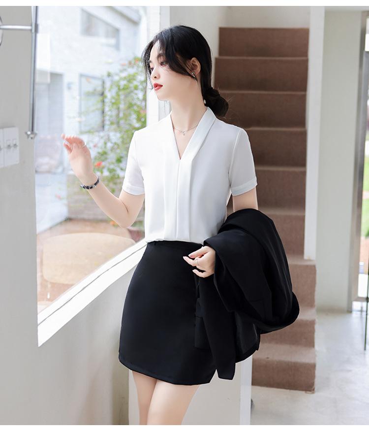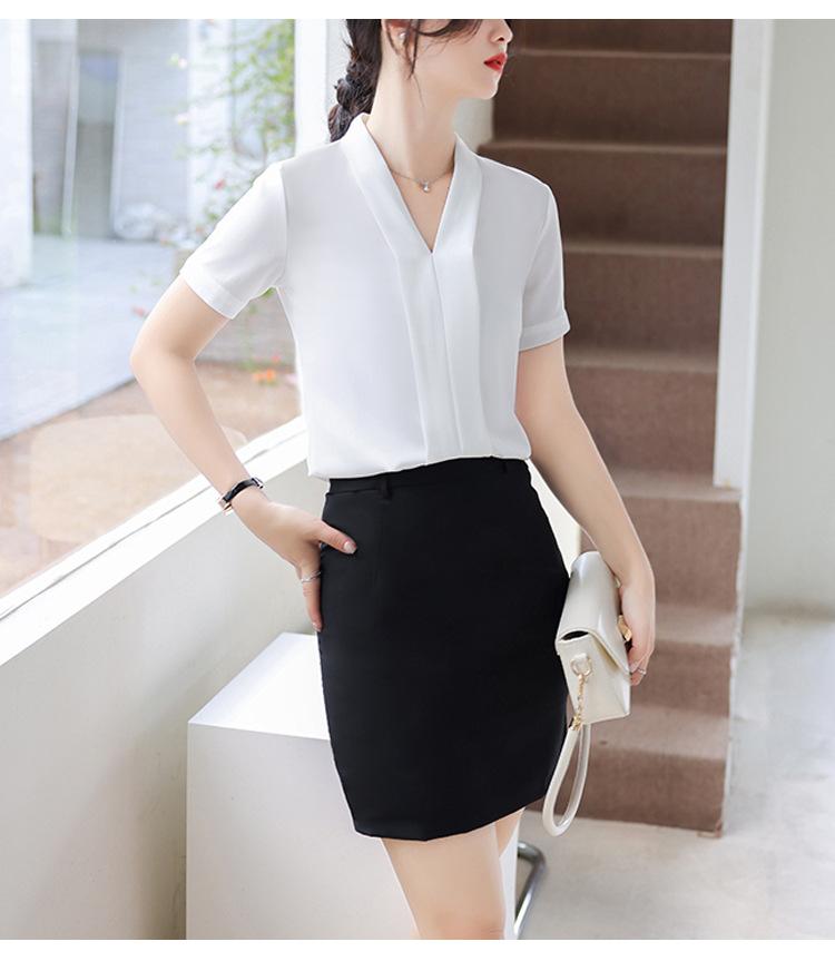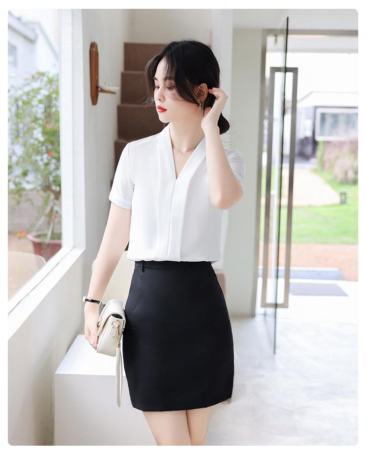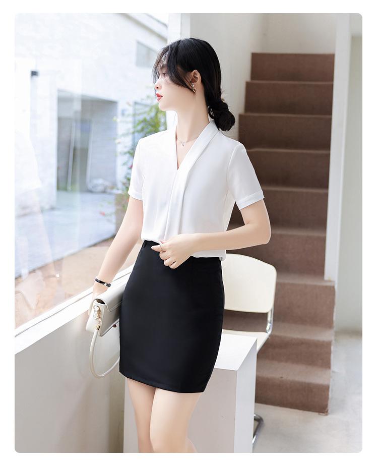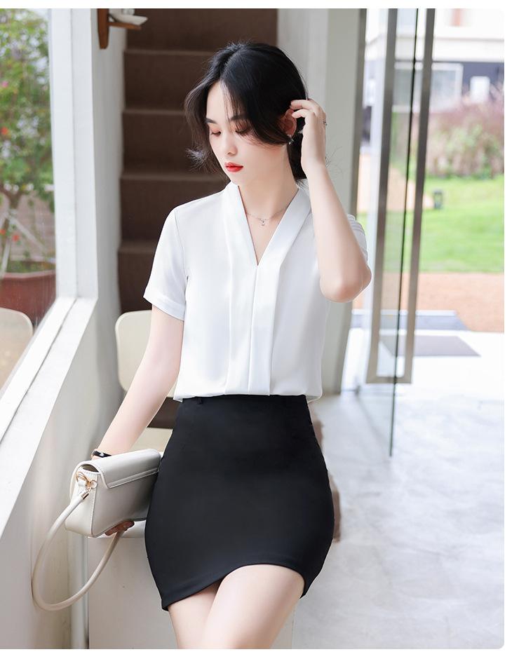 Camisa de Manga Corta con Cuello en V Ropa de Negocios para Mujer 2025 Nuevo Estilo Top Verano Estilo Profesional Camisa Elegante