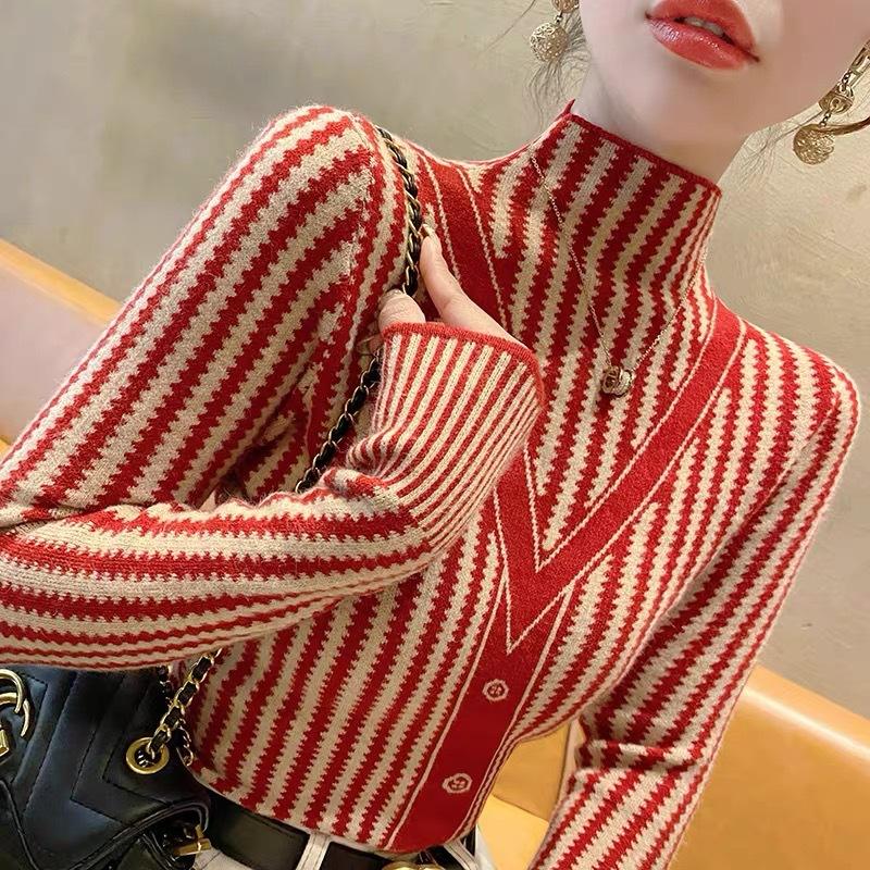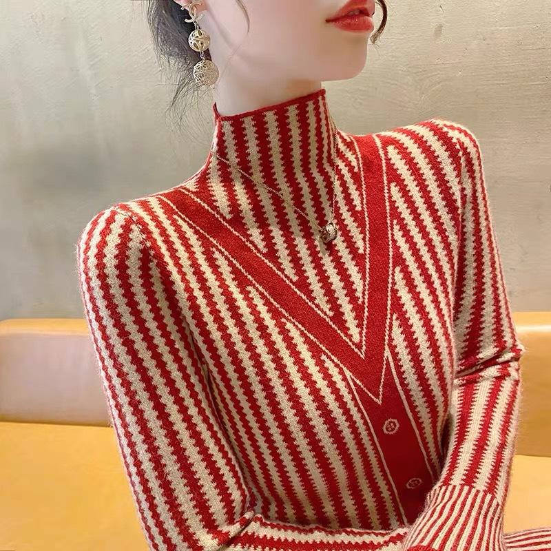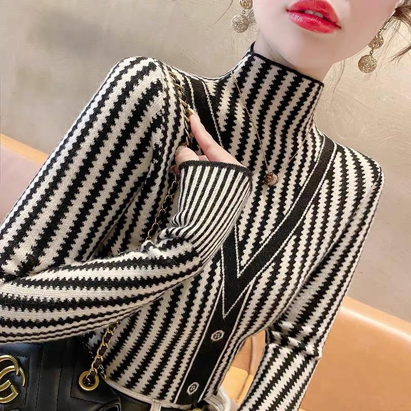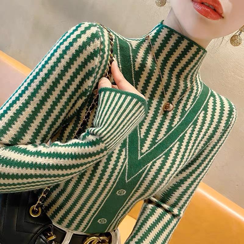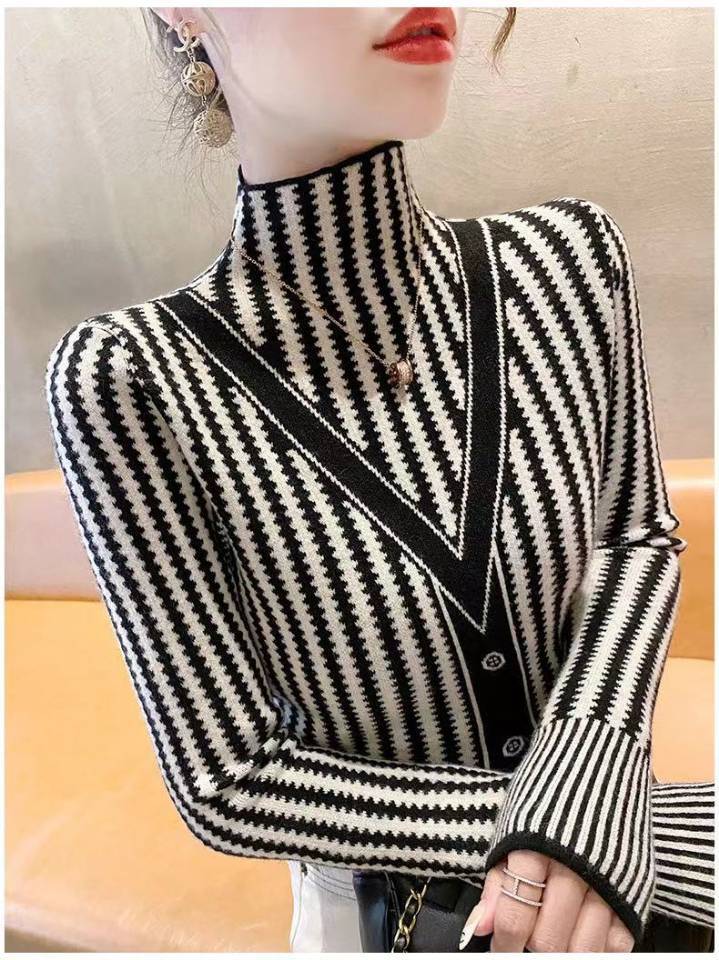 Suéter de punto de cuello alto medio de Otoño e Invierno, camiseta interior 2023, nueva, moderna, estilo occidental, manga larga para mujer