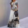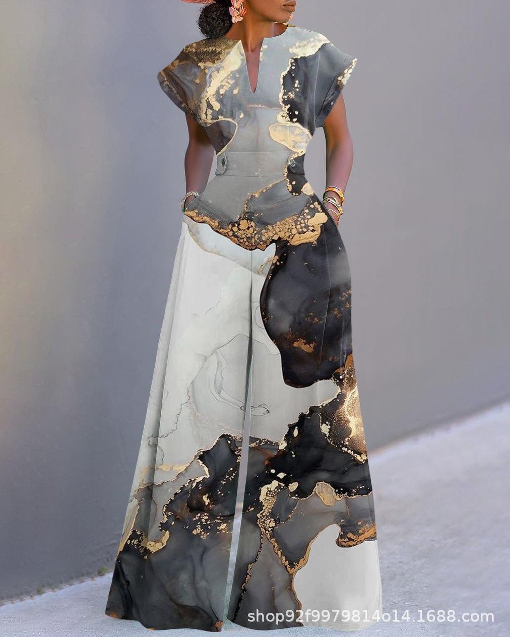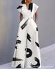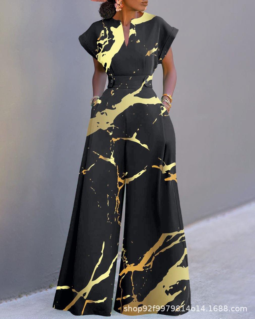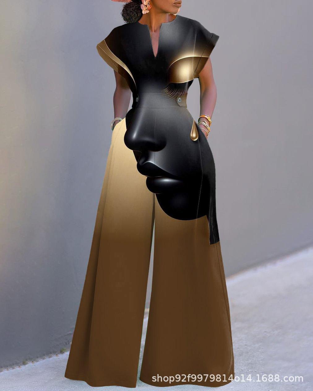 2024 comercio exterior transfronterizo nuevo patrón de estampado tribal 3D temperamento cuello en V bolsillo pierna ancha mono jumpsuit