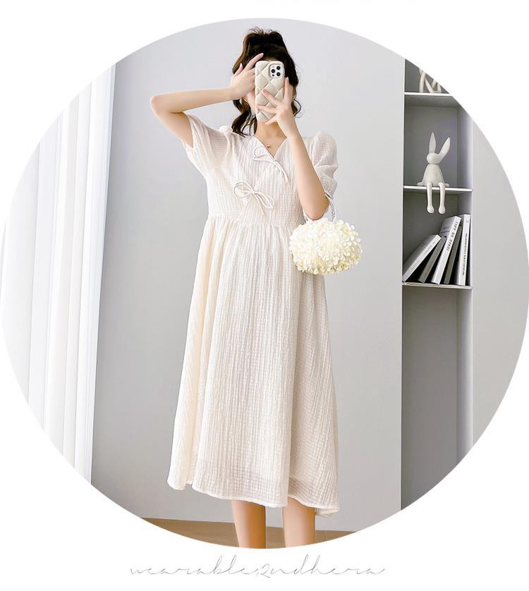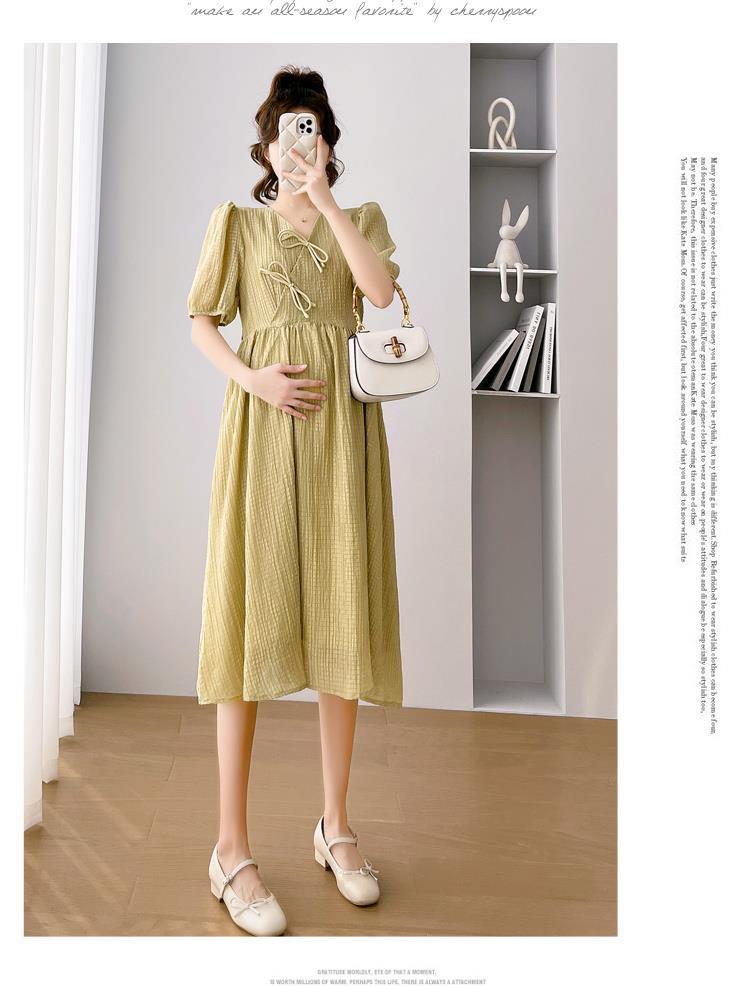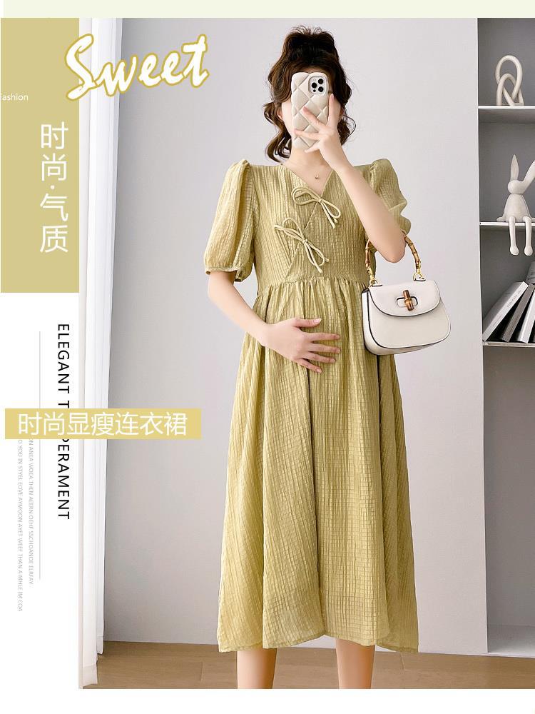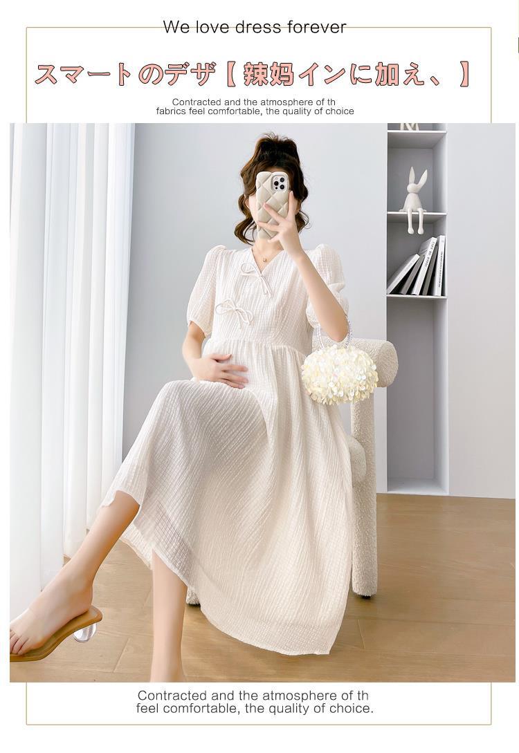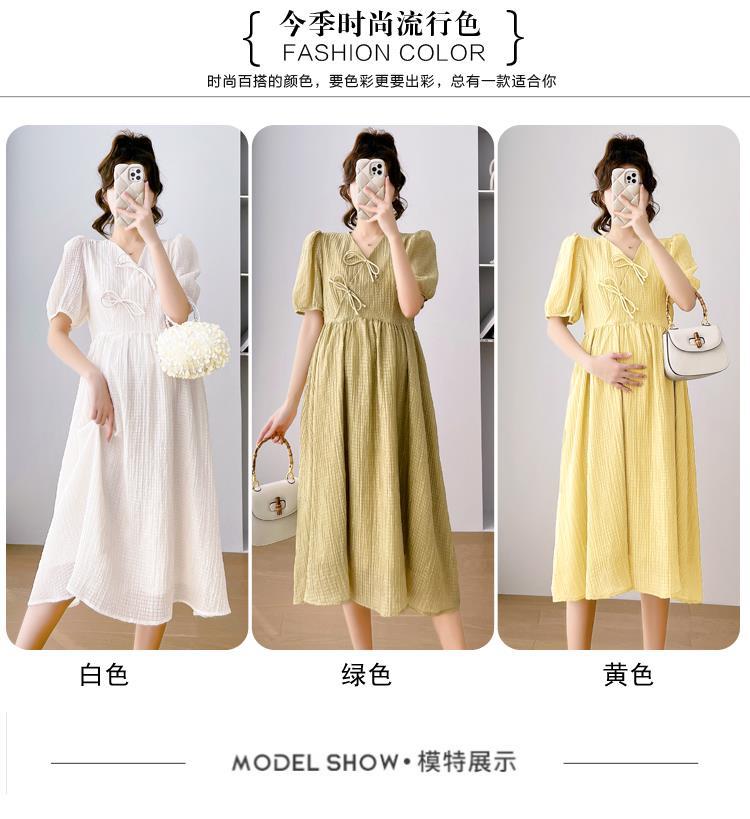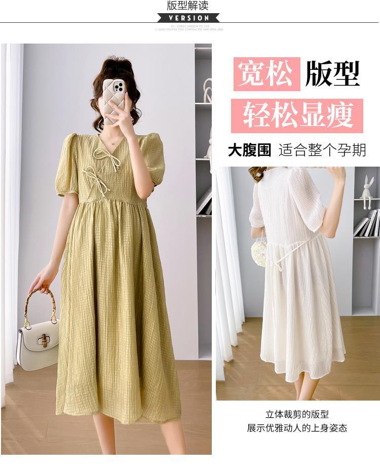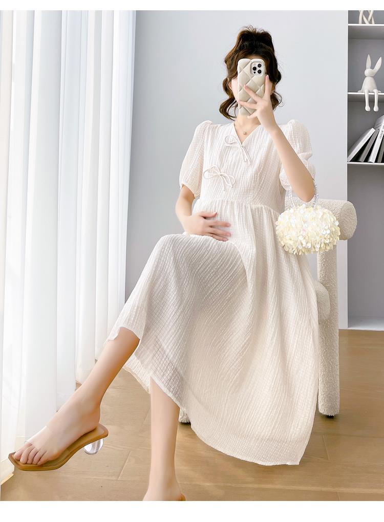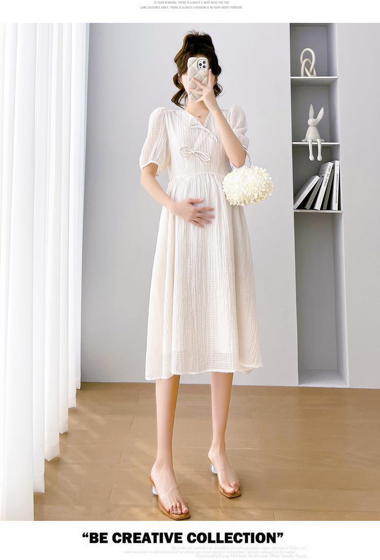 Vestido de Maternidad 2024 Verano Nuevo Temperamento Retro Slim Maternidad Suelto Talla Grande