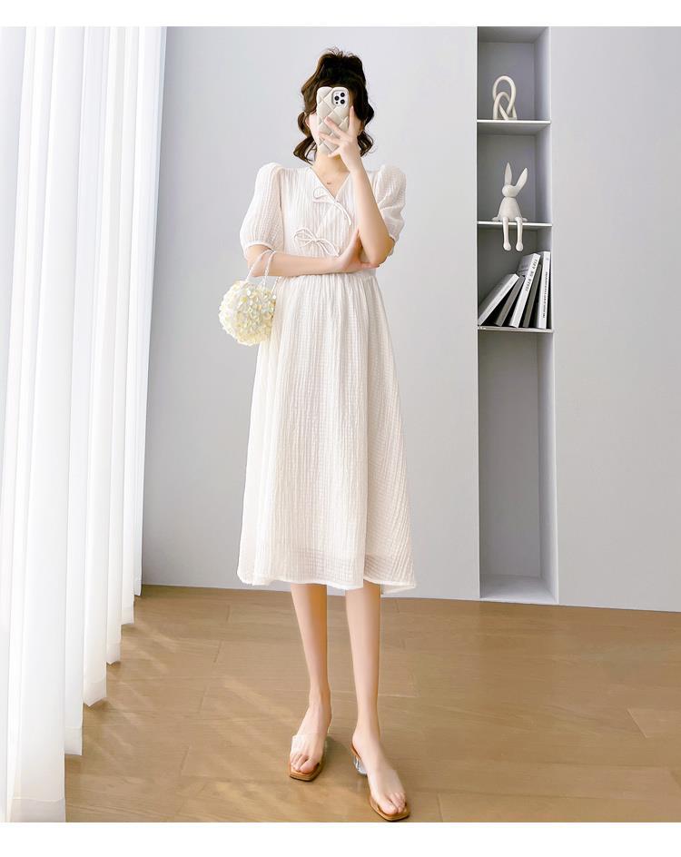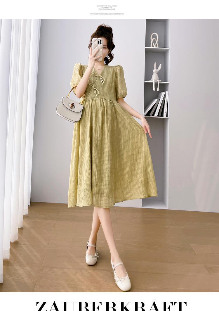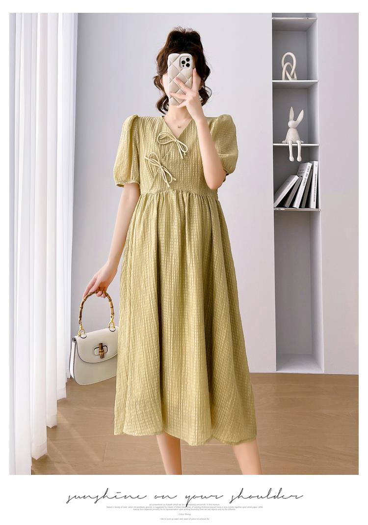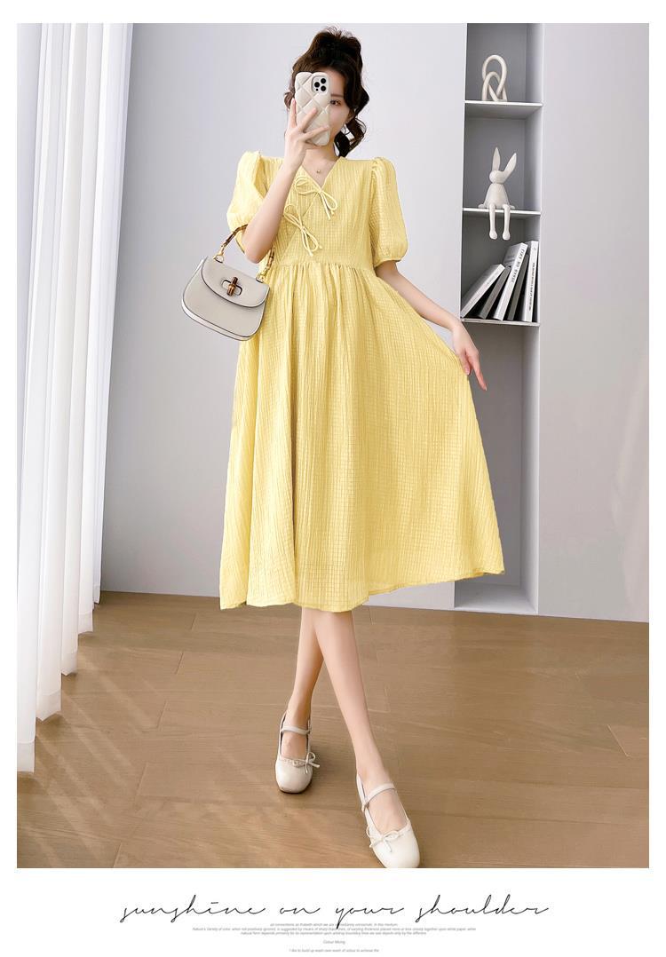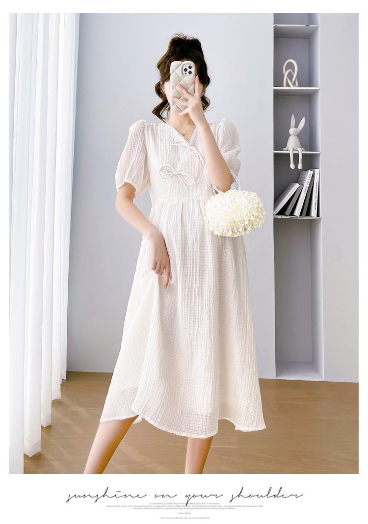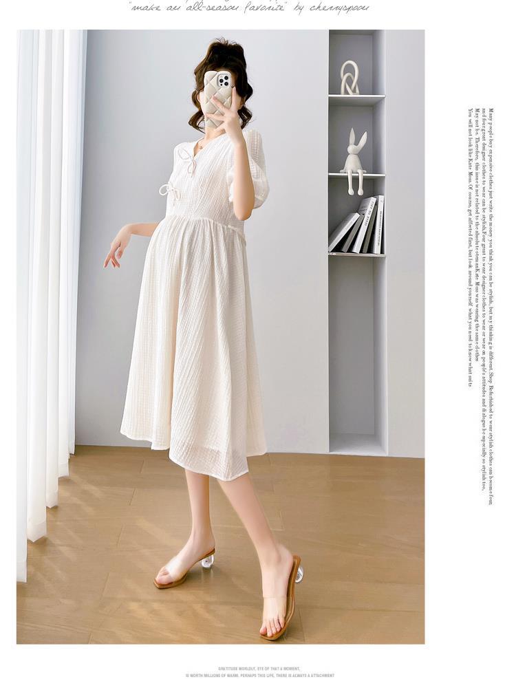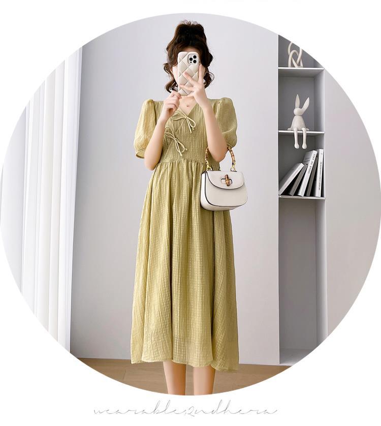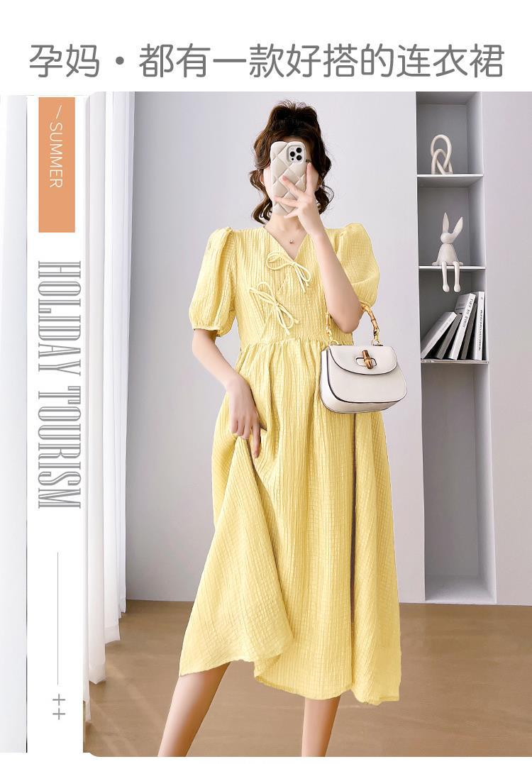Vestido de Maternidad 2024 Verano Nuevo Temperamento Retro Slim Maternidad Suelto Talla Grande