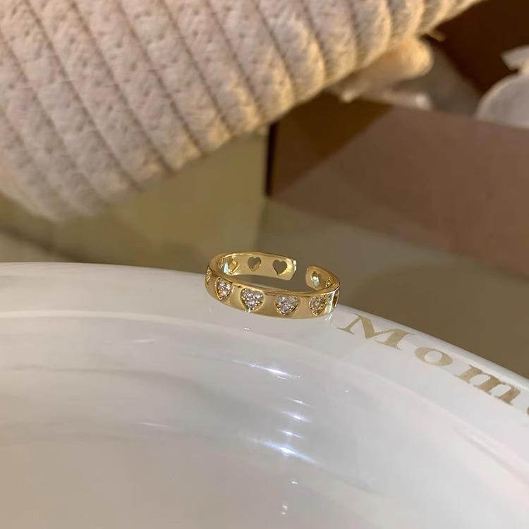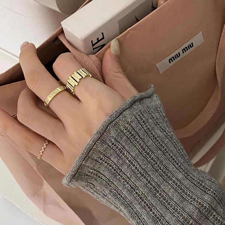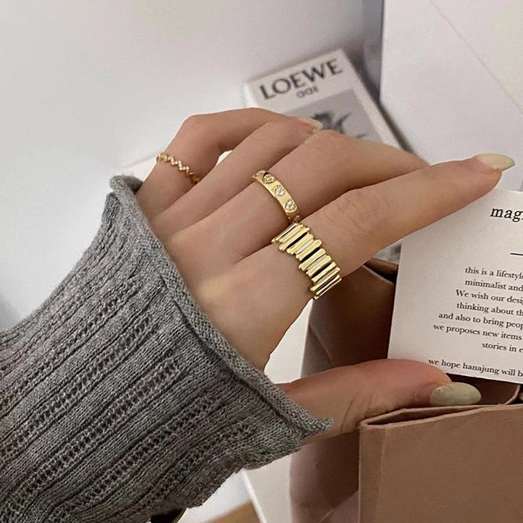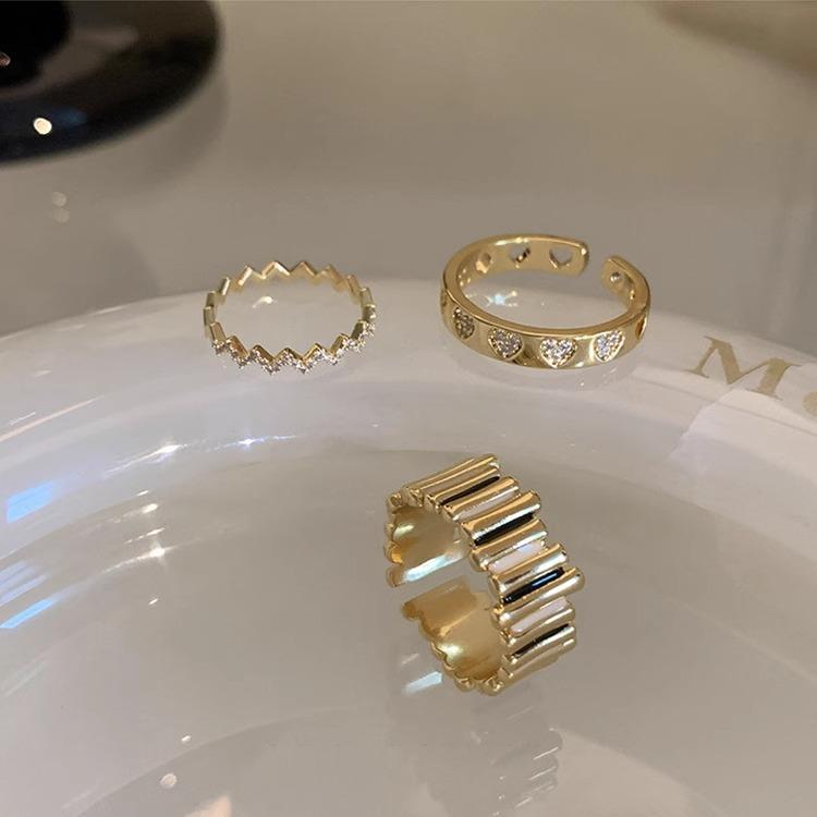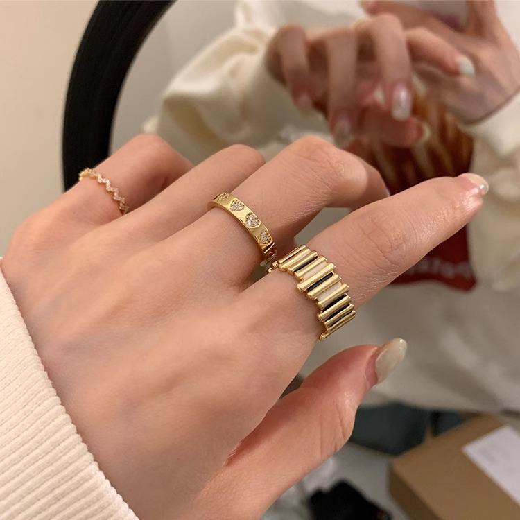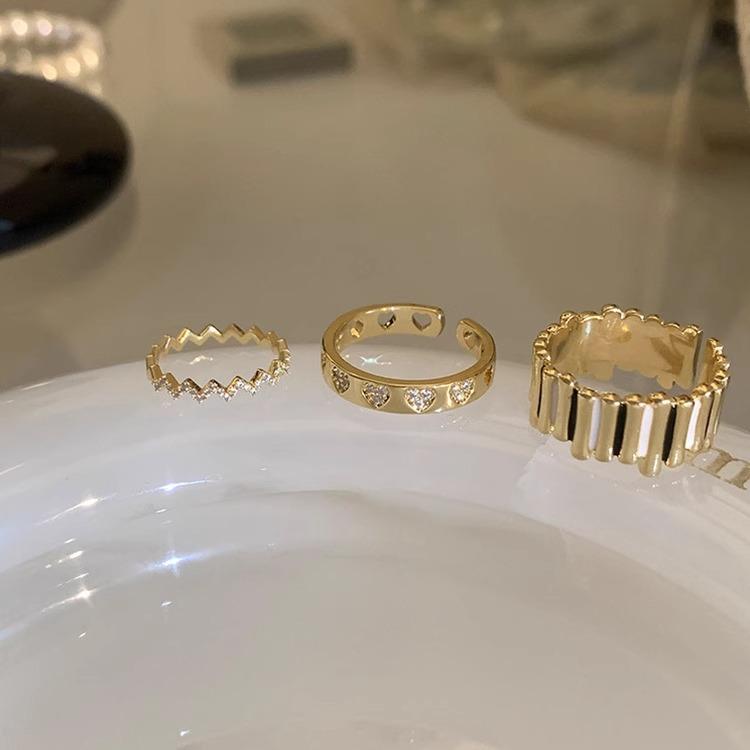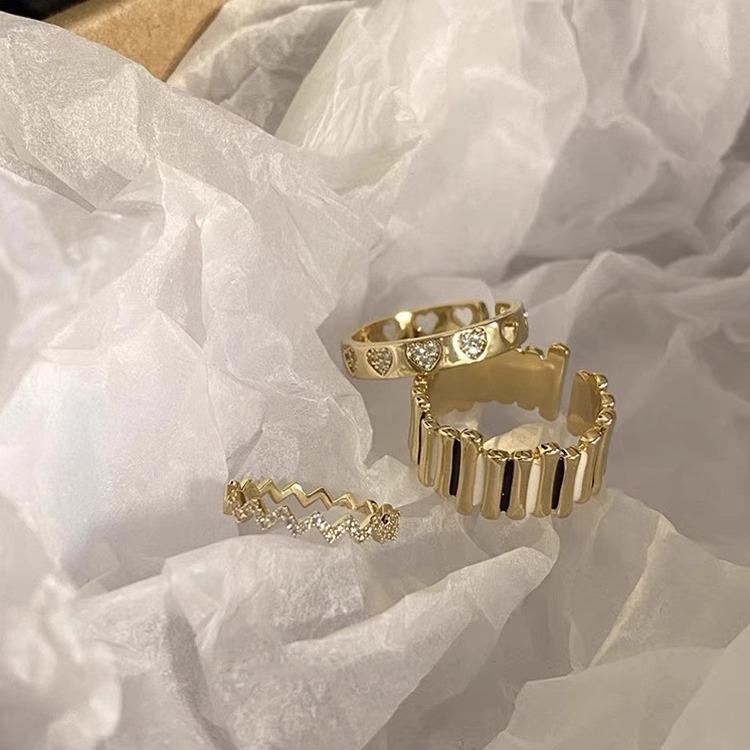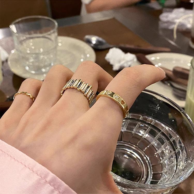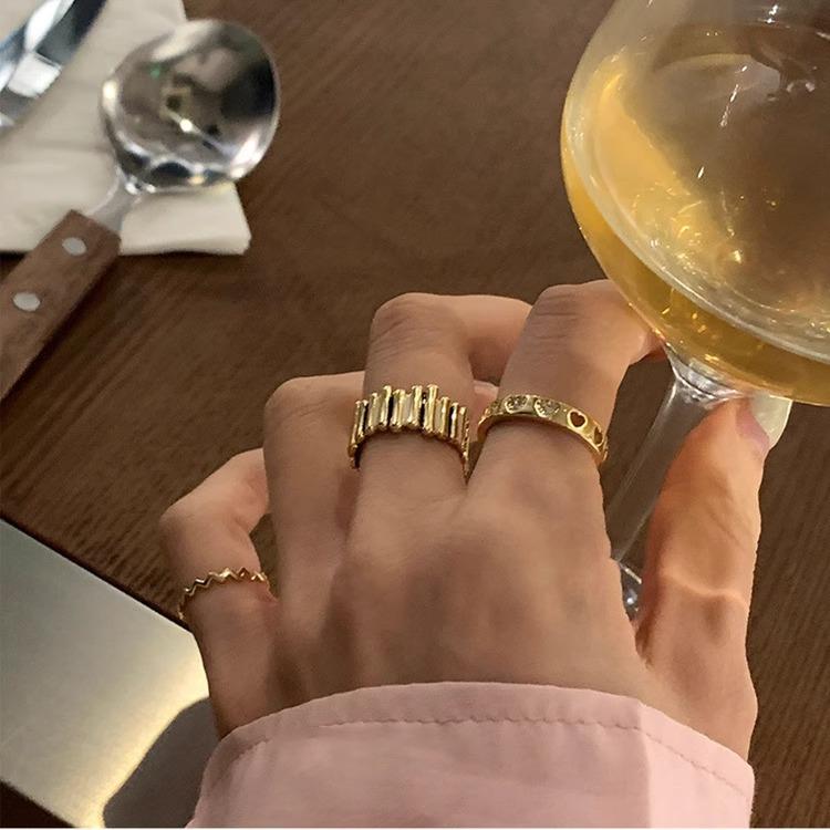 Anillo de amor de metal con onda irregular simple y circonita para mujer, personalidad retro, simple, versátil, temperamento, moda