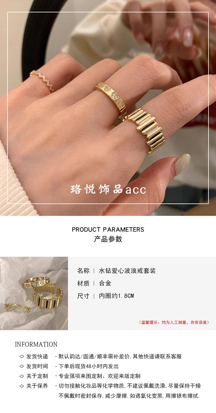 Rhinestone love wave ring set, Irregular style, Love rhinestone style, Wavy tail ring