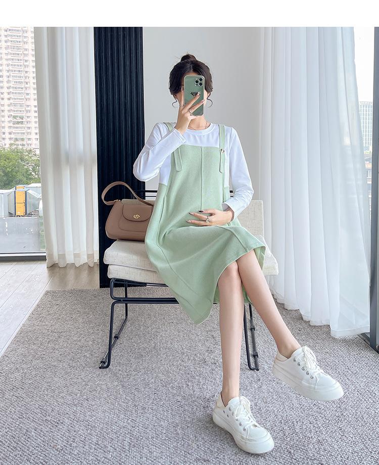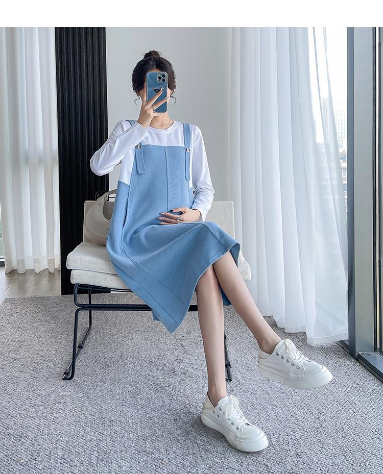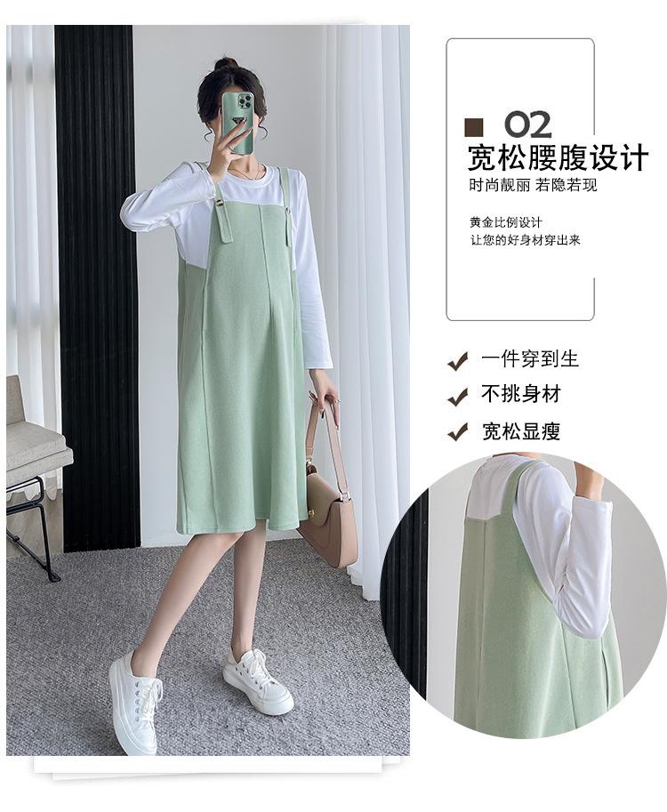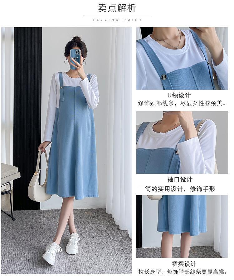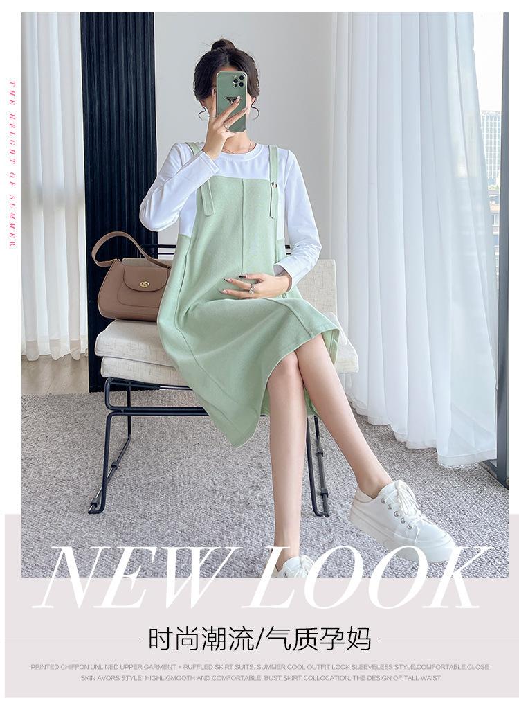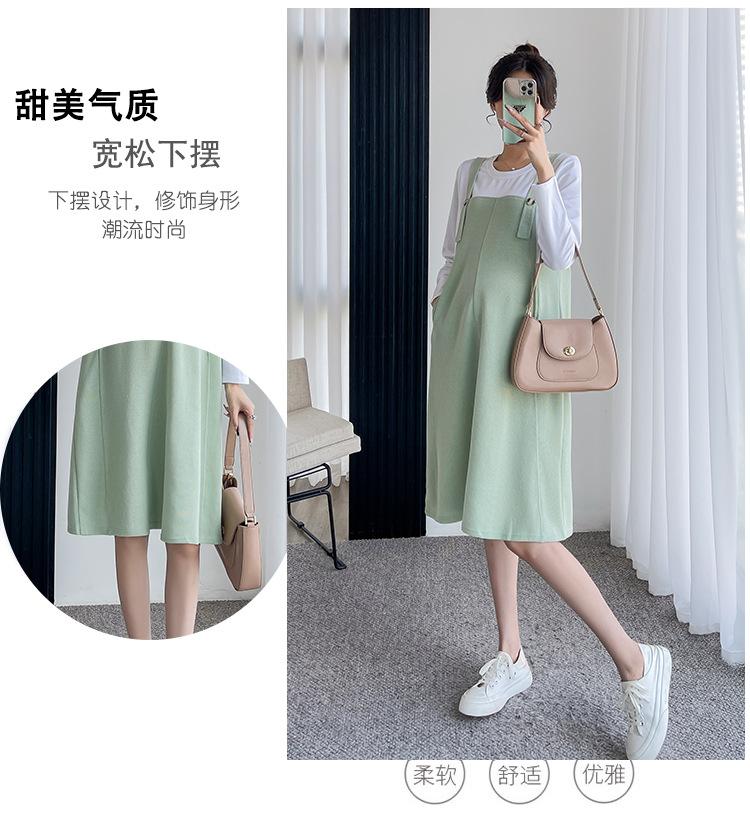 Vestido de mujer embarazada de primavera, nuevo, dulce, de moda, falso, de dos piezas, de longitud media, de talla grande, vestido de manga larga para mujer embarazada