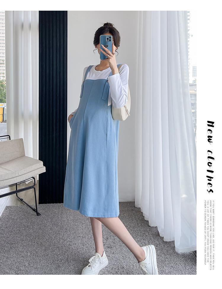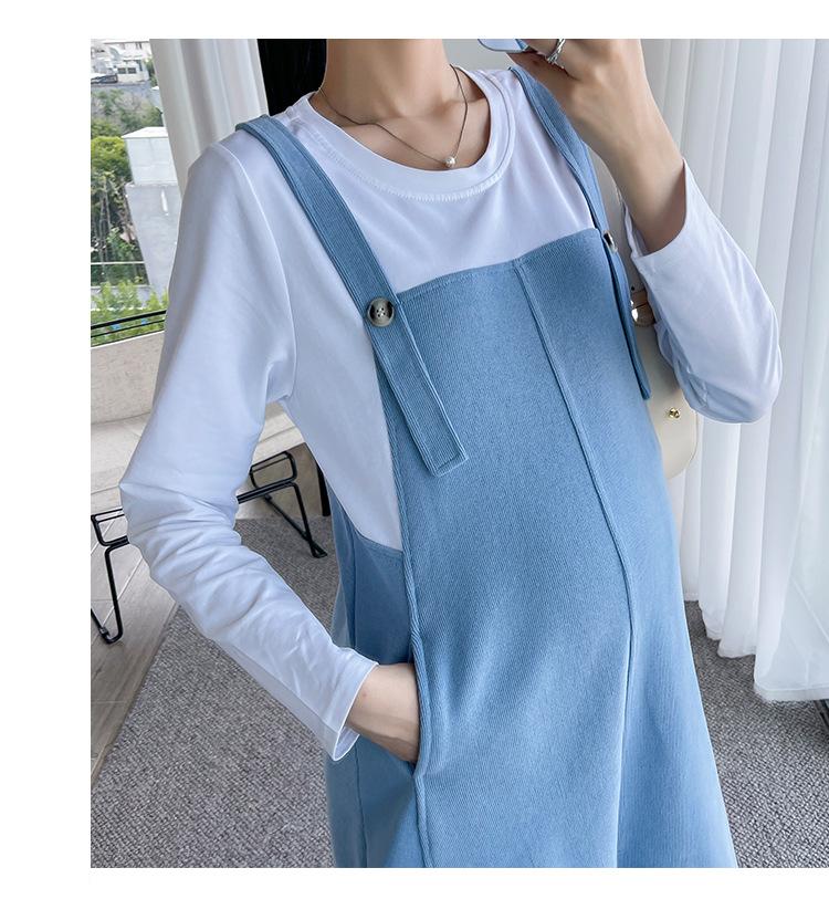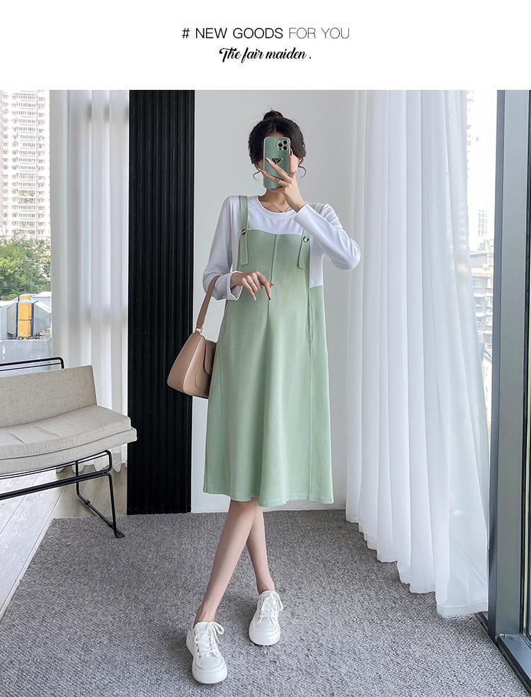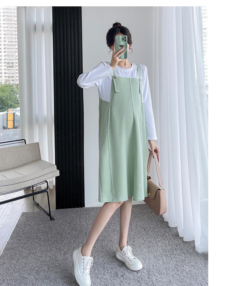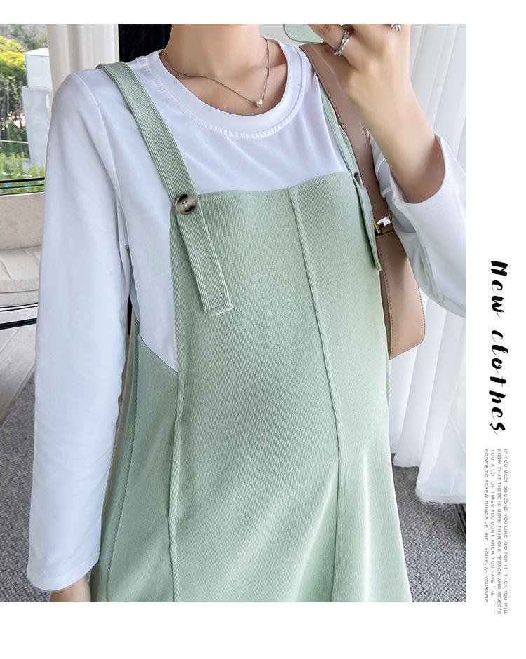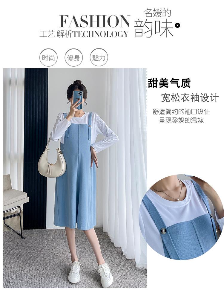 Vestido de mujer embarazada de primavera, nuevo, dulce, de moda, falso, de dos piezas, de longitud media, de talla grande, vestido de manga larga para mujer embarazada