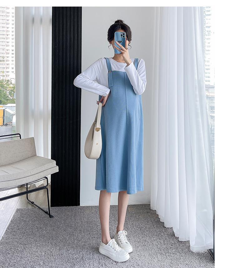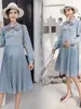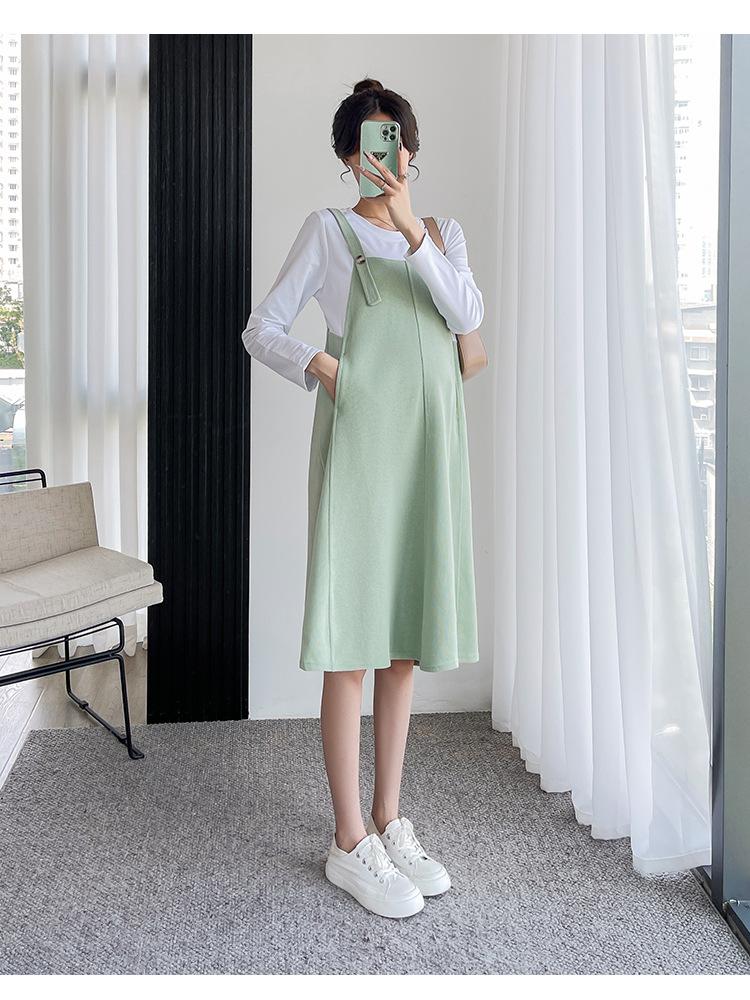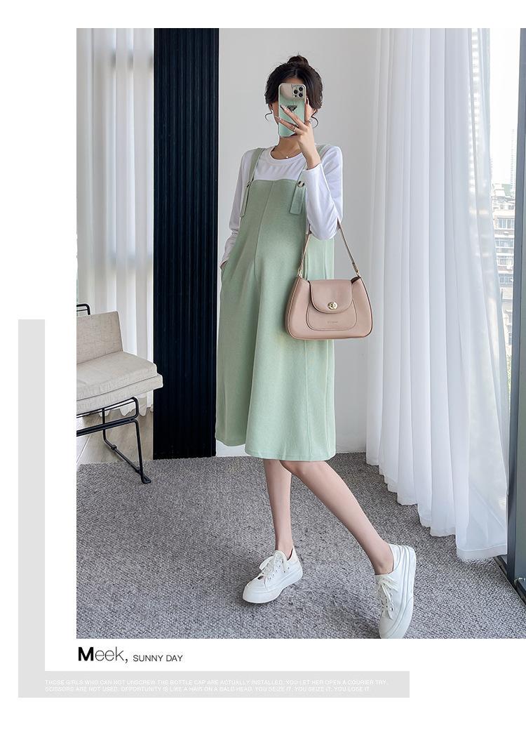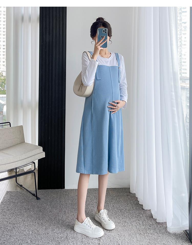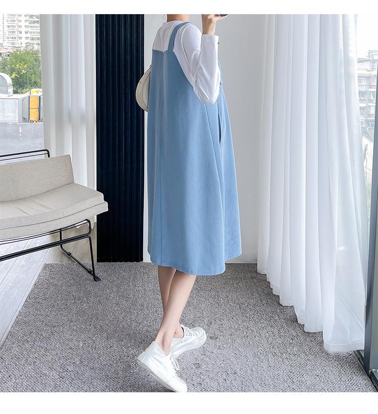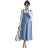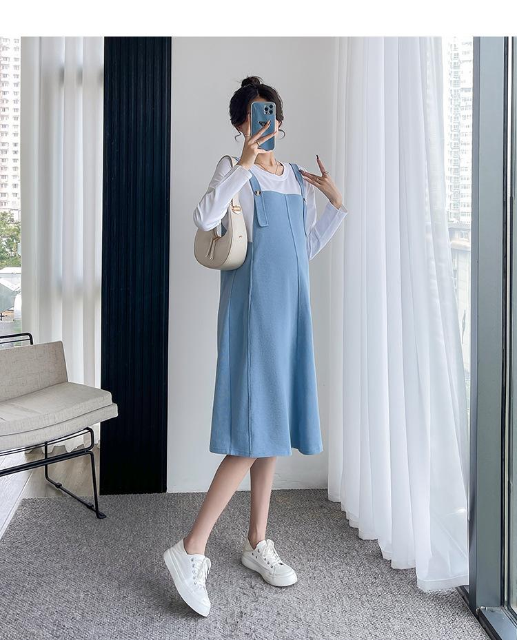 Vestido de mujer embarazada de primavera, nuevo, dulce, de moda, falso, de dos piezas, de longitud media, de talla grande, vestido de manga larga para mujer embarazada