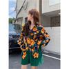 2021 Nueva Blusa Fina de Primavera y Otoño con Patrón Retro Transfronteriza de Comercio Exterior Amazon para Mujer, Holgada y de Manga Corta