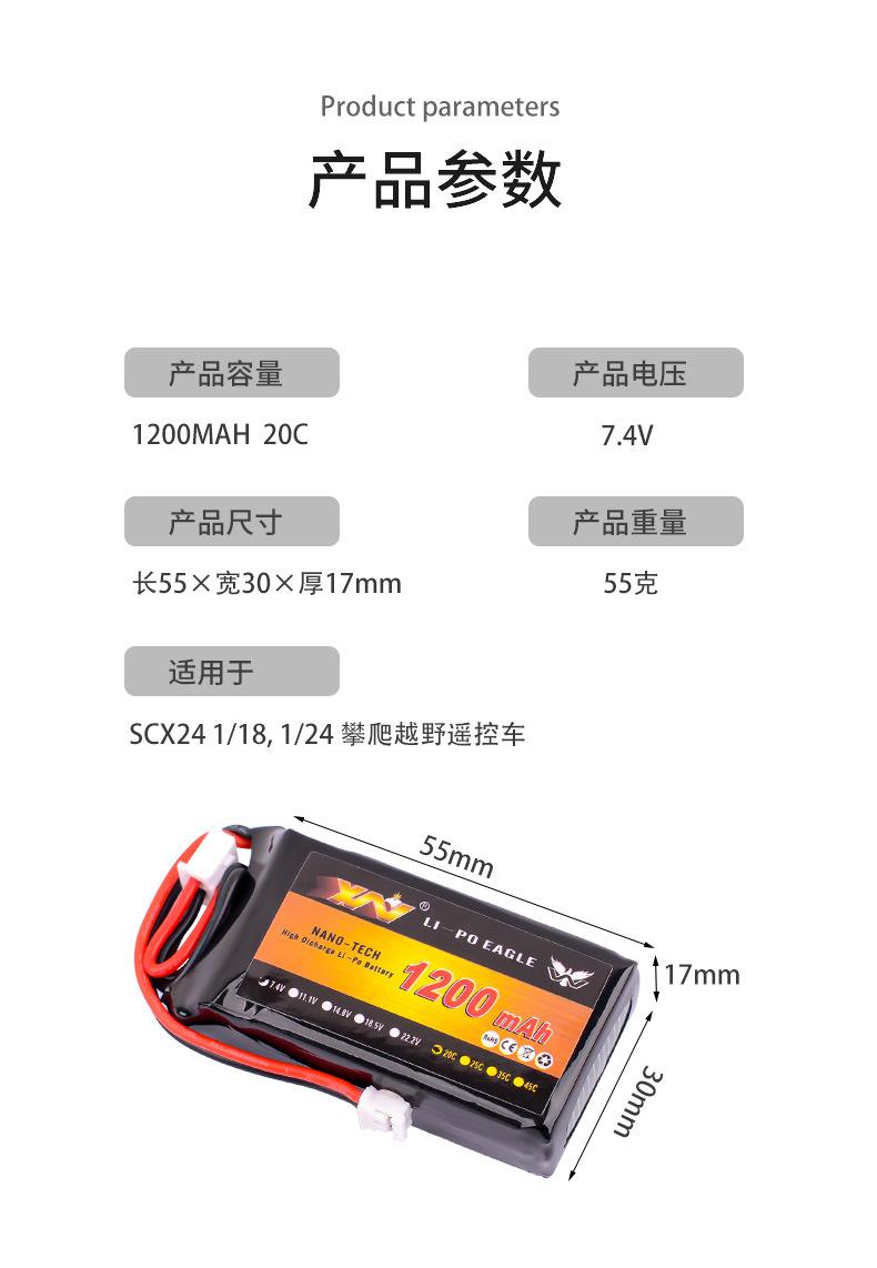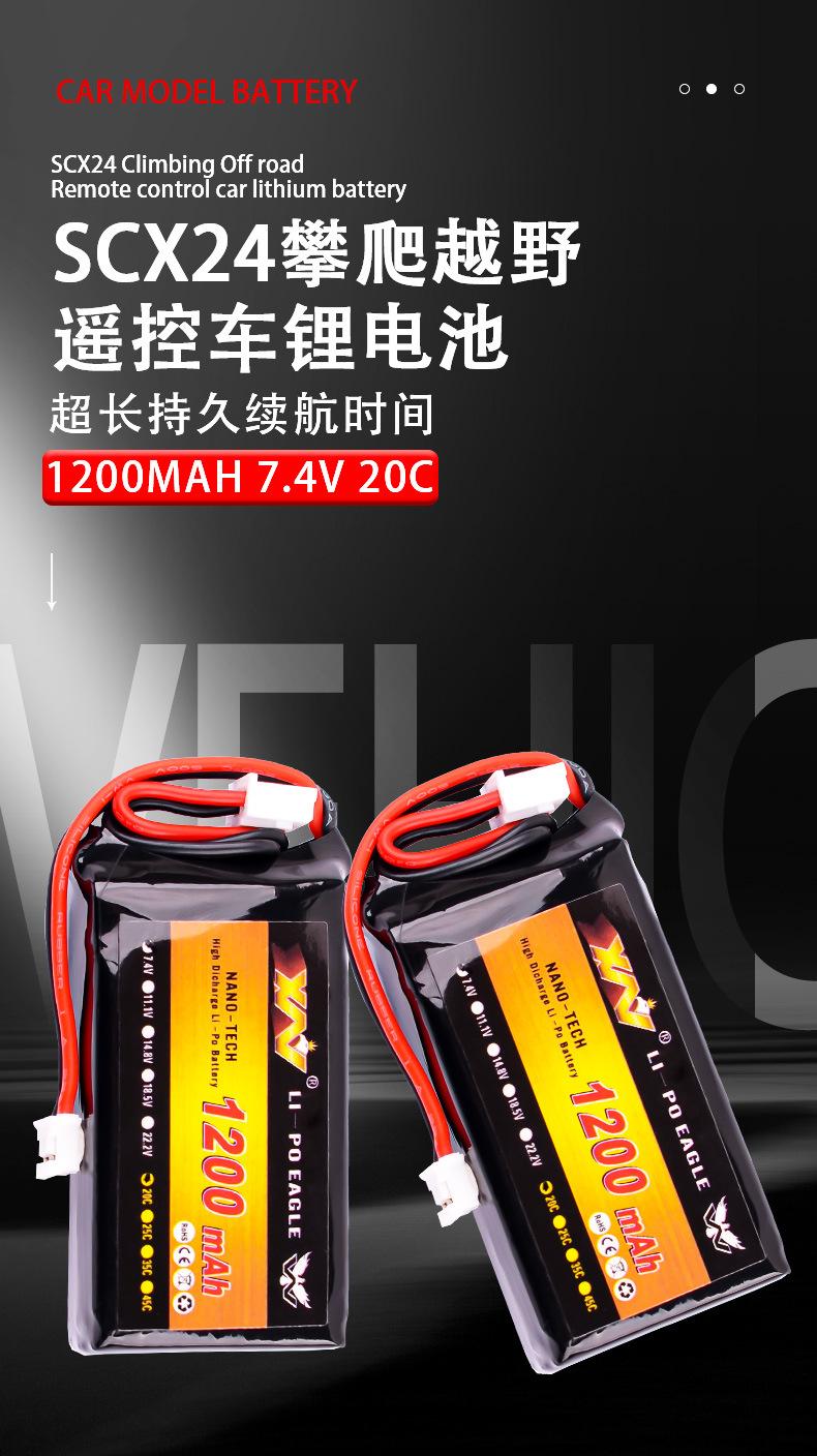 Para coche modelo de control remoto eléctrico AXIAL SCX24 7.4V 1200mAh 20C 2S batería de litio para modelo de avión