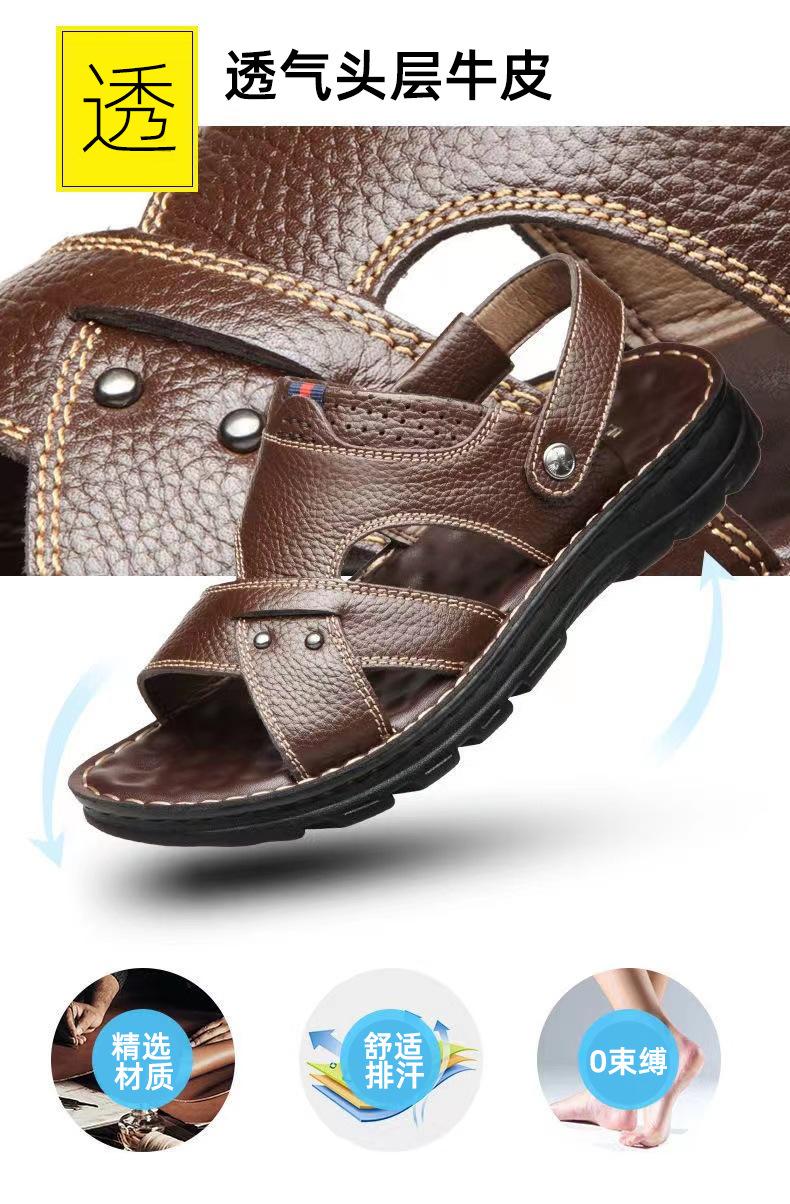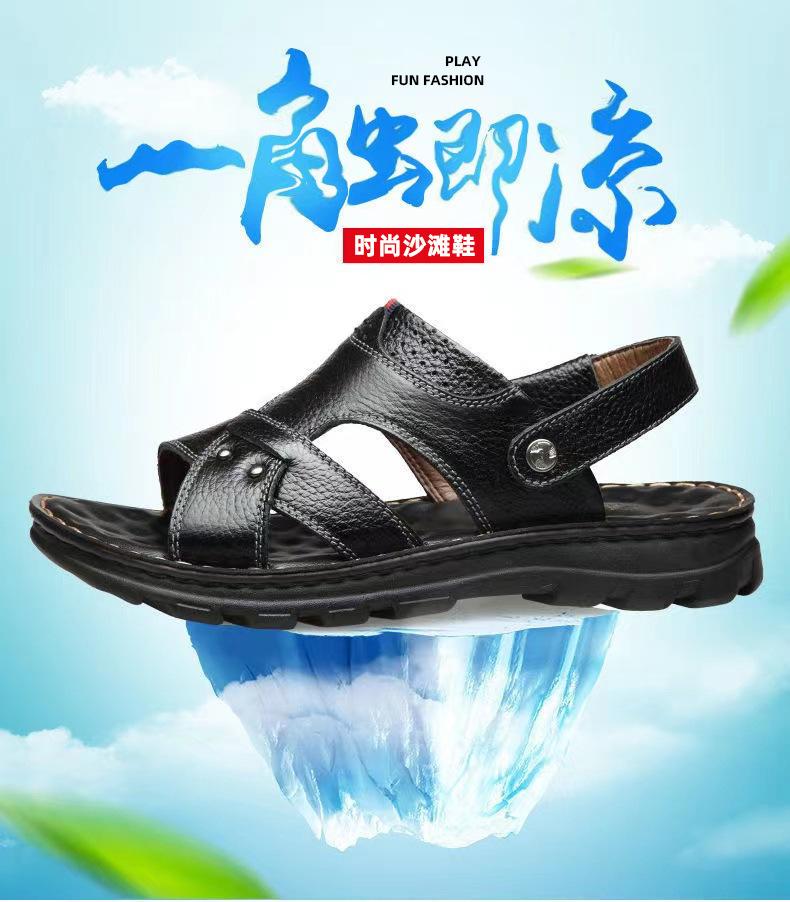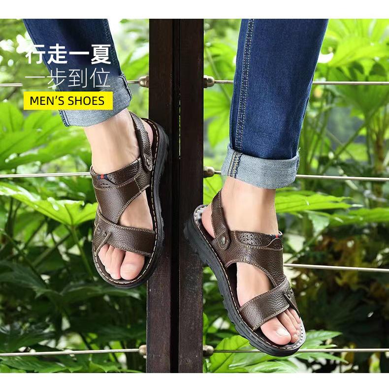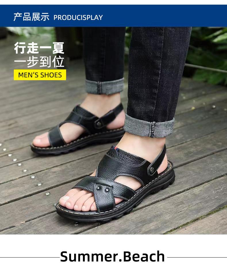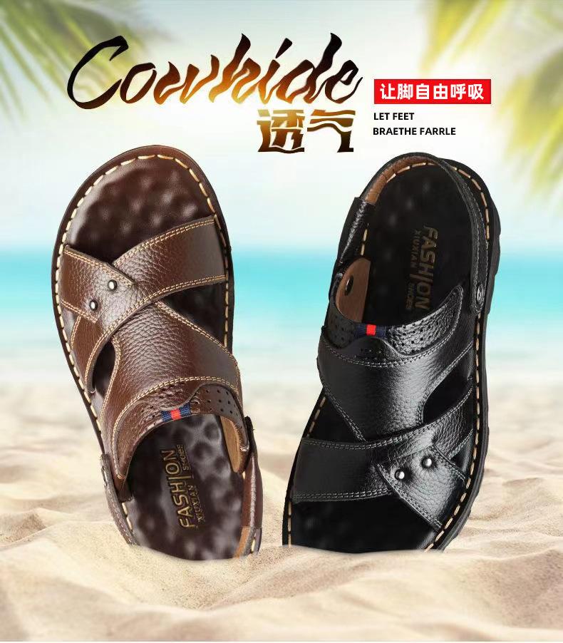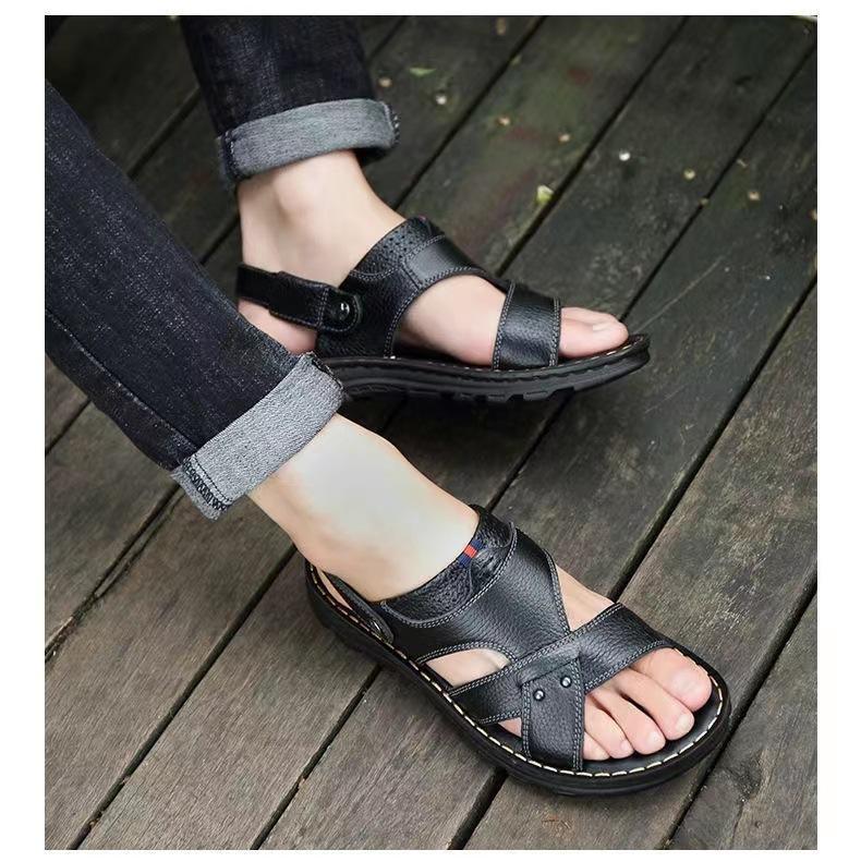 Sandalias Casuales para Hombre de Piel de Vacuno de Capa Superior Zapatos de Playa Verano Nuevo Cómodas Sandalias y Pantuflas de Doble Uso Cuero Genuino Combinación con Todo para Exterior