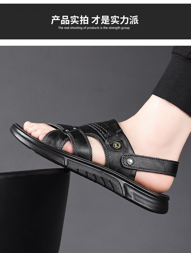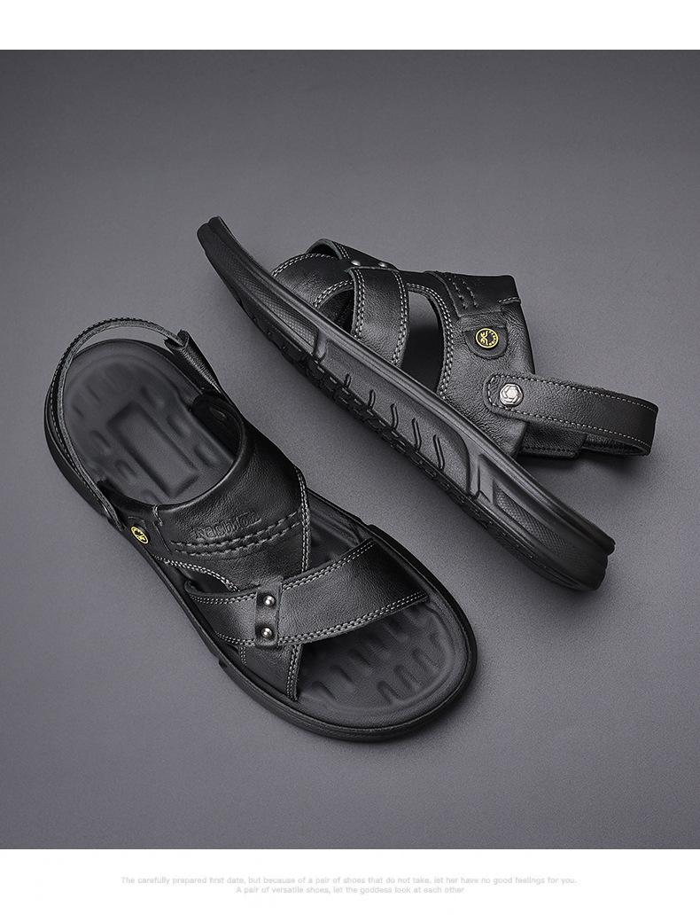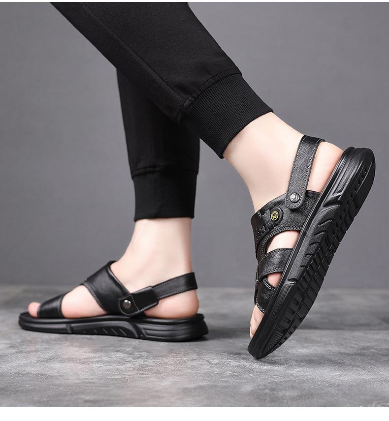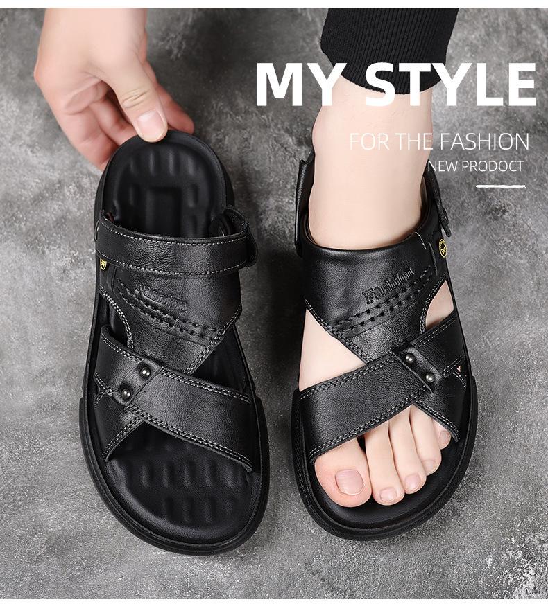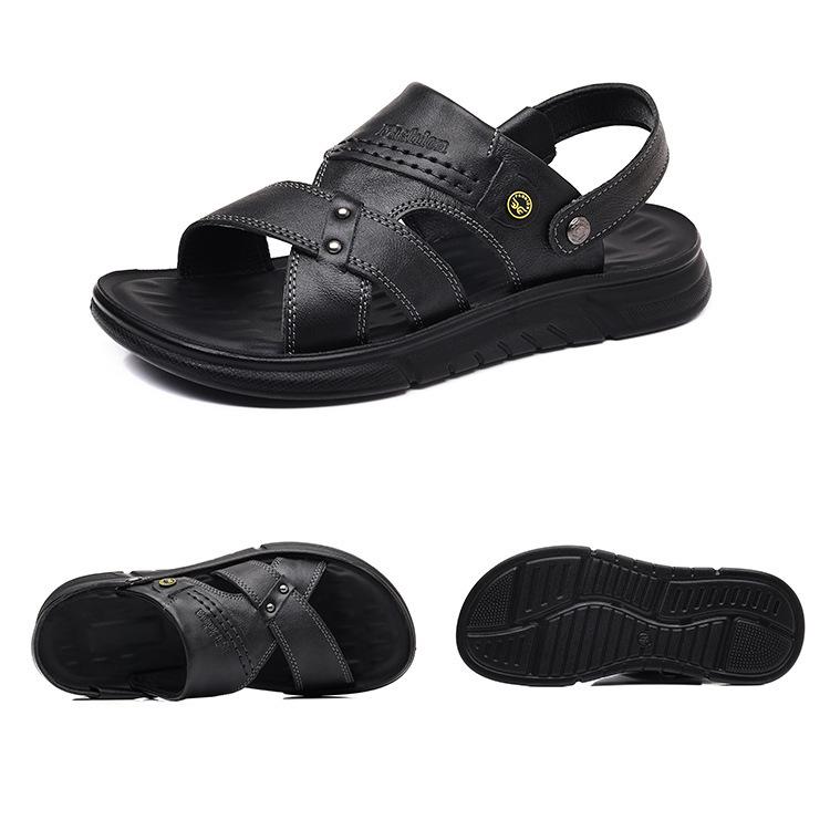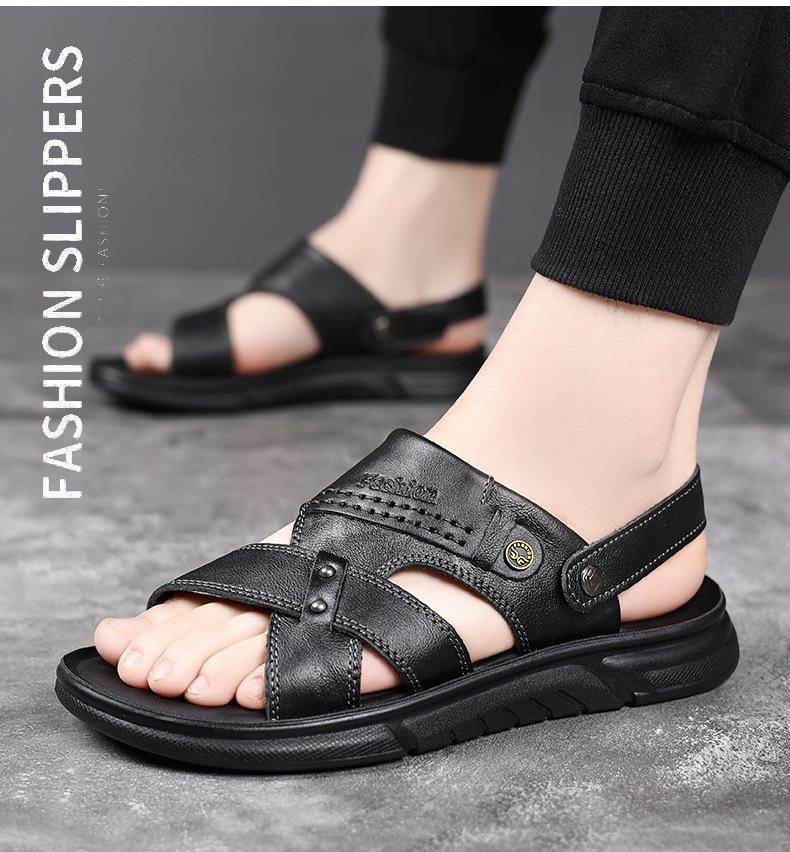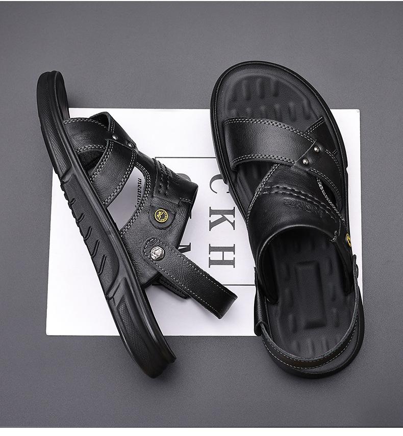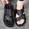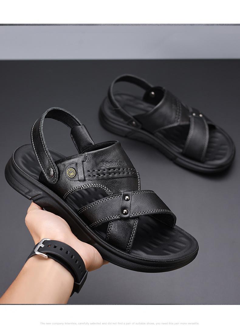 Sandalias casuales para hombre, de piel de vaca de primera capa, para playa, de verano, nuevas, cómodas, de doble uso, de cuero genuino, para todo tipo de usos, para exteriores.