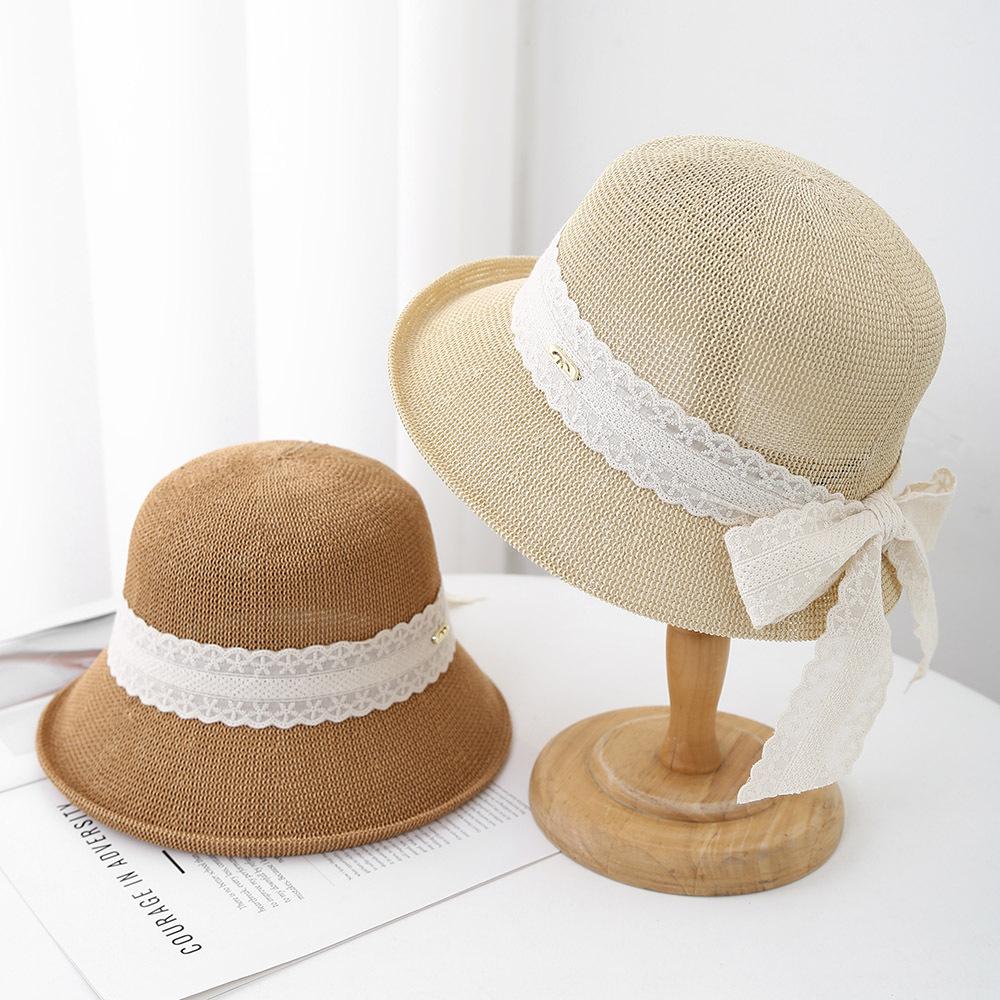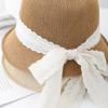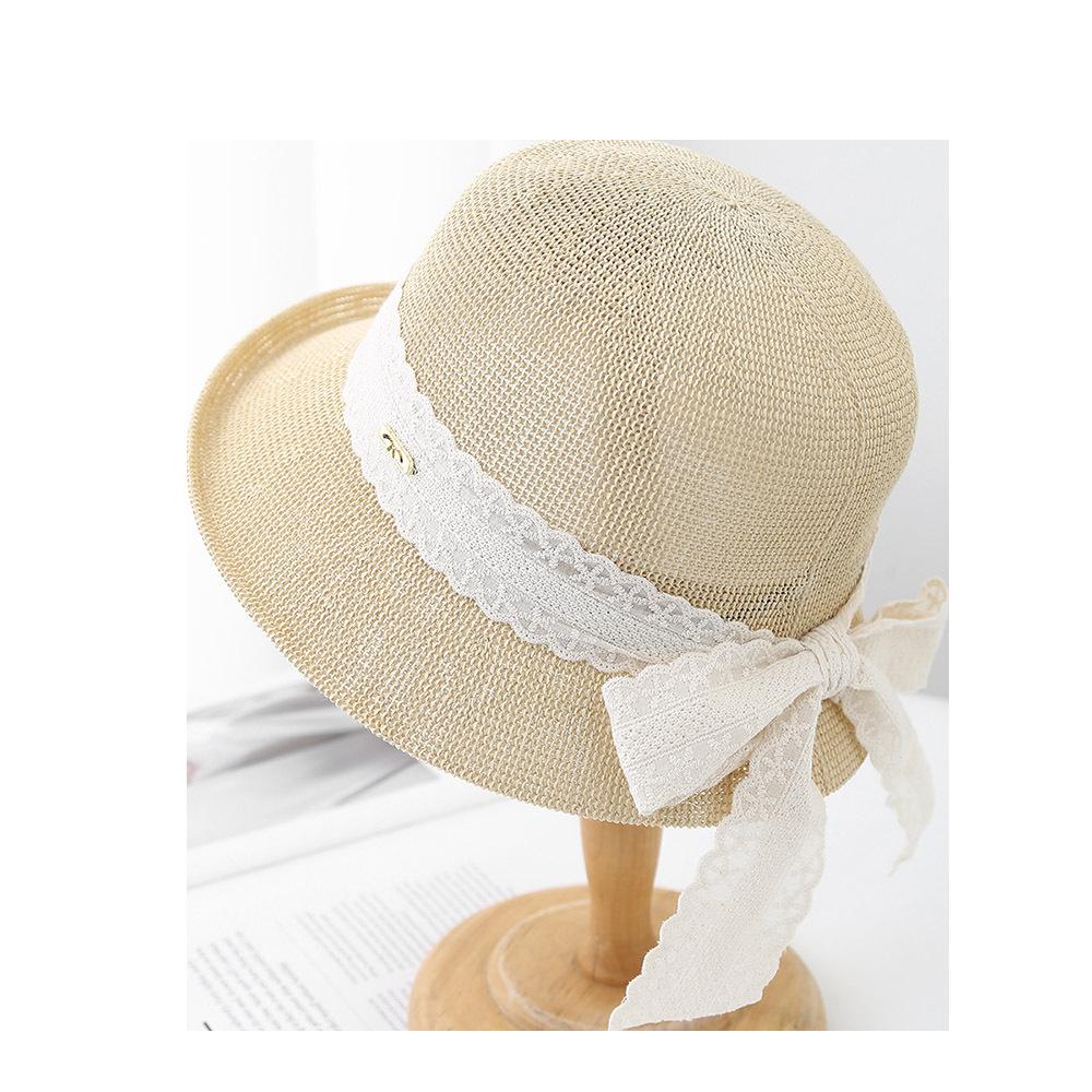 Sombrero de Playa con Cinta de Encaje y Lazo para Mujer Verano Parasol Protector Solar Rizo Sombrero de Pescador Vacaciones Junto al Mar Sombrero para el Sol Moderno