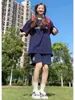 Traje estilo universitario para mujer, ropa deportiva informal de verano para chicas, pantalones cortos holgados de manga corta para correr, conjunto de dos piezas a la moda