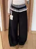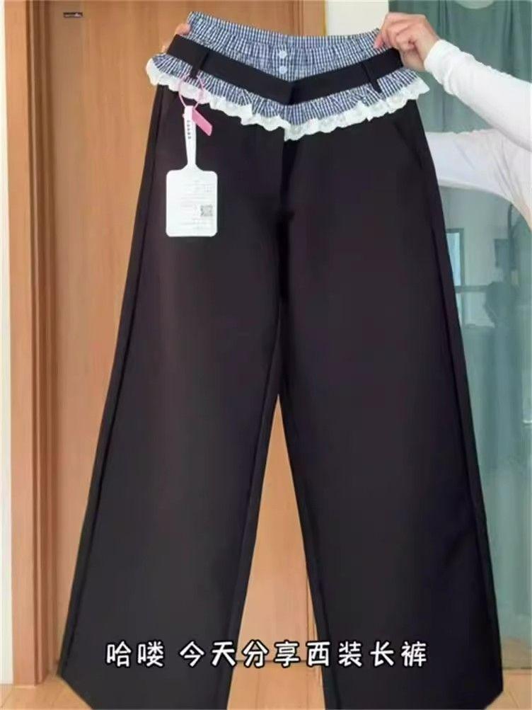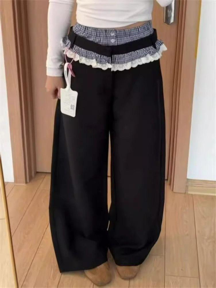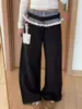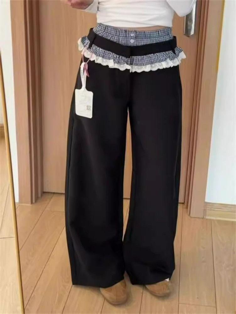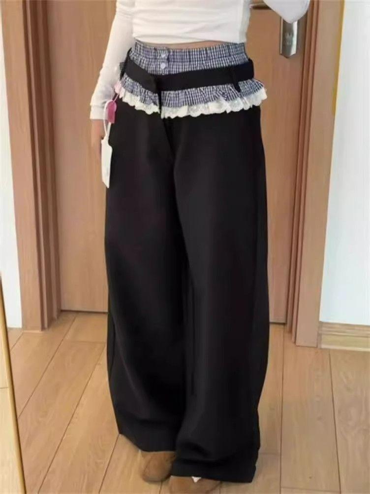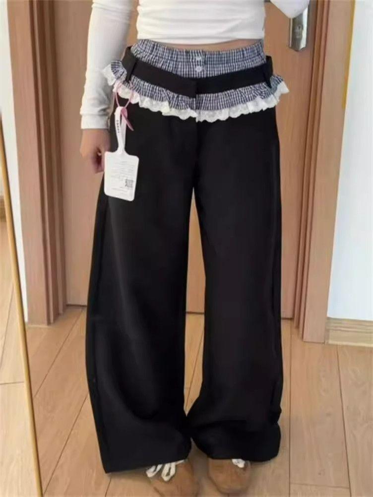 Pantalones casuales de encaje con costuras dobles y diseño relajado de nuevo estilo para mujer, pantalones de pierna ancha súper populares
