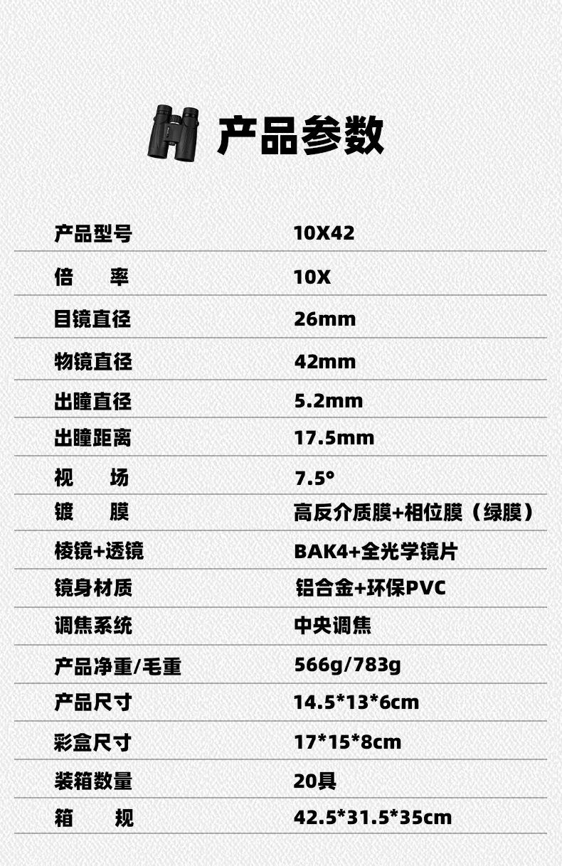 Binoculares de Concierto Rectos Habo 10*42 de Alta Potencia y Alta Definición con Visión Nocturna para Baja Luz Telescopio Portátil para Viajes