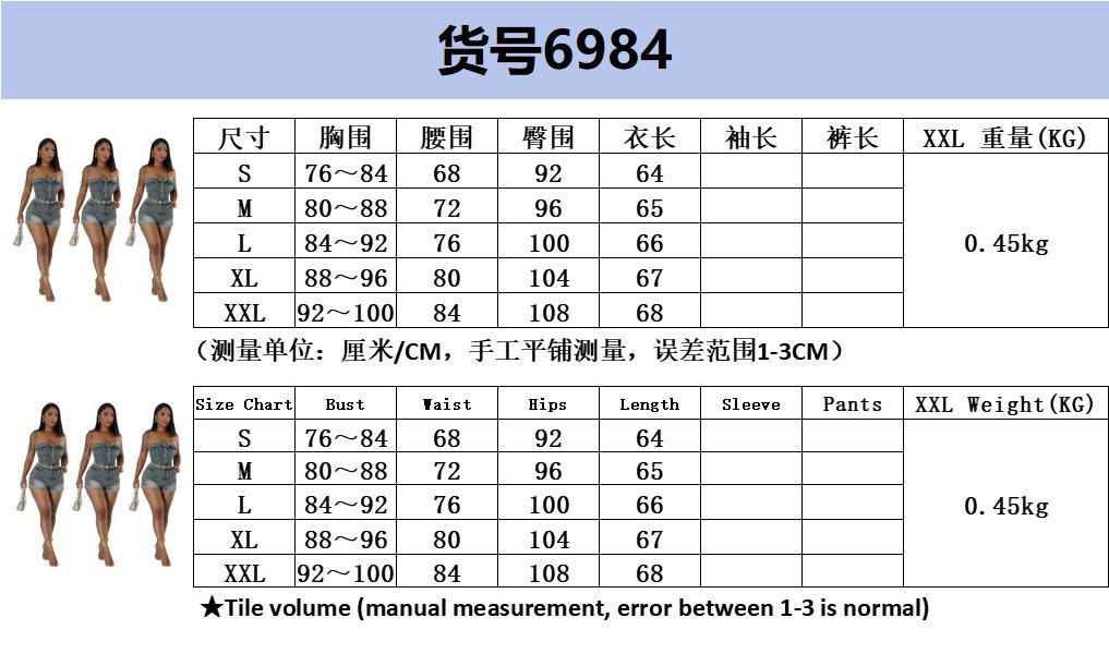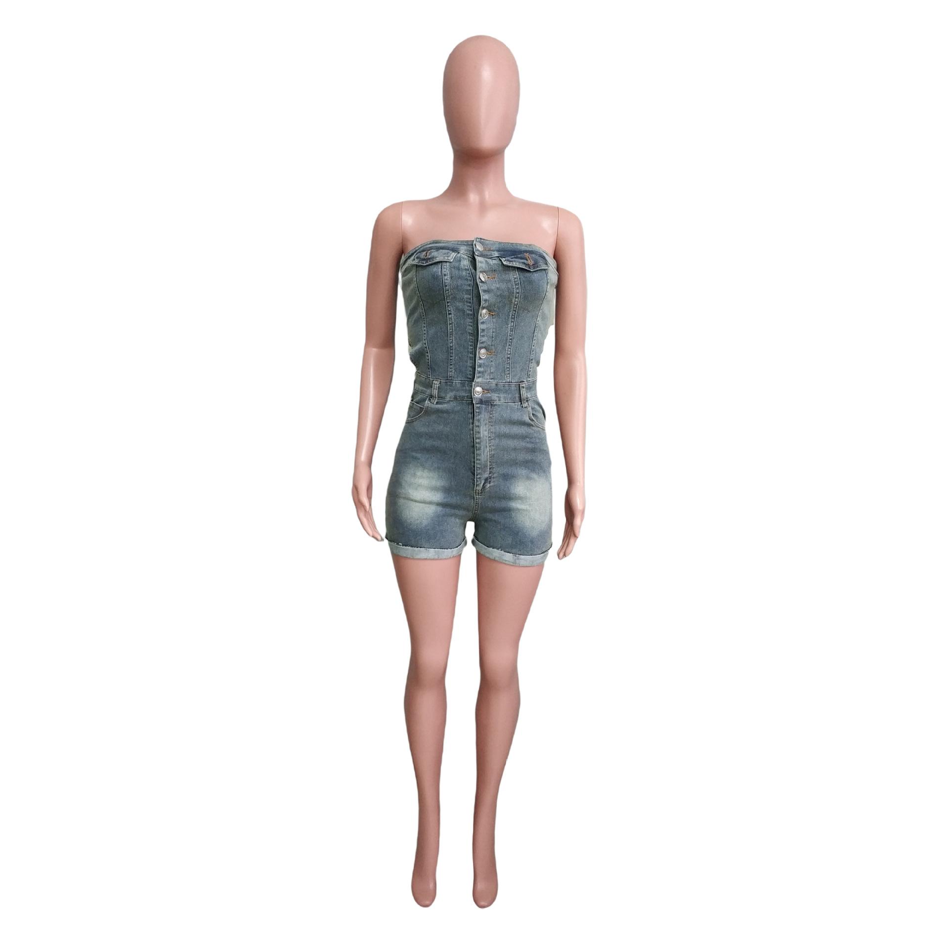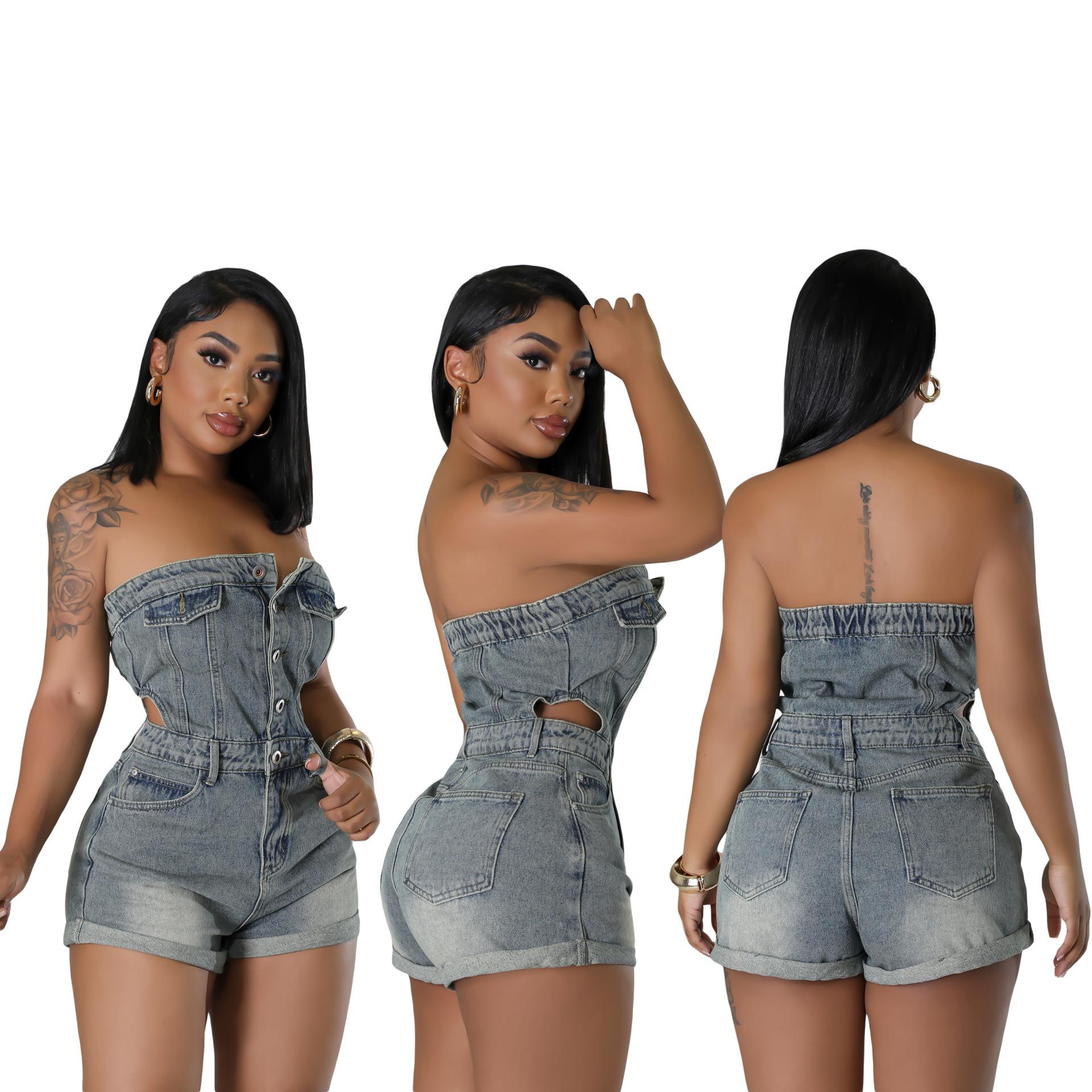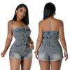 6984 Transfronterizo Amazon AliExpress Nueva moda casual europea y americana sin tirantes para mujer Denim ajustado