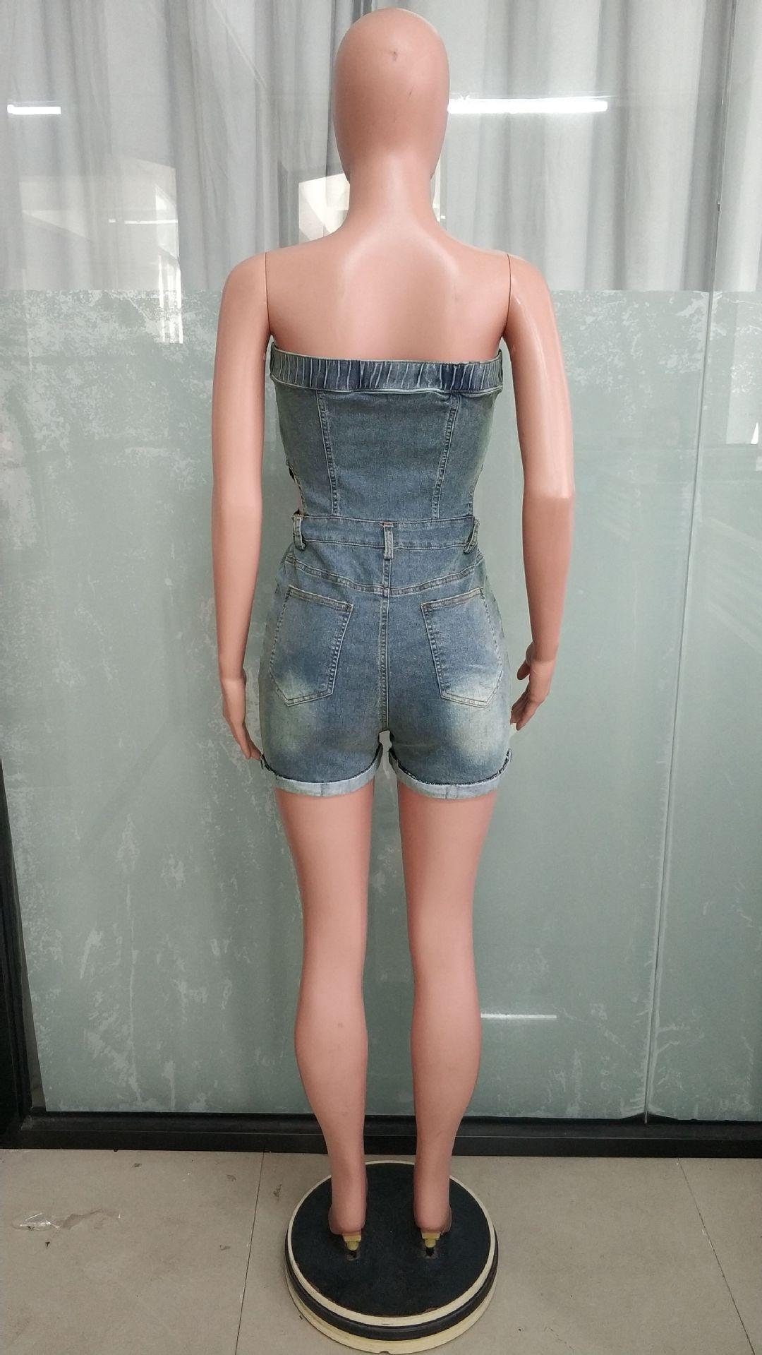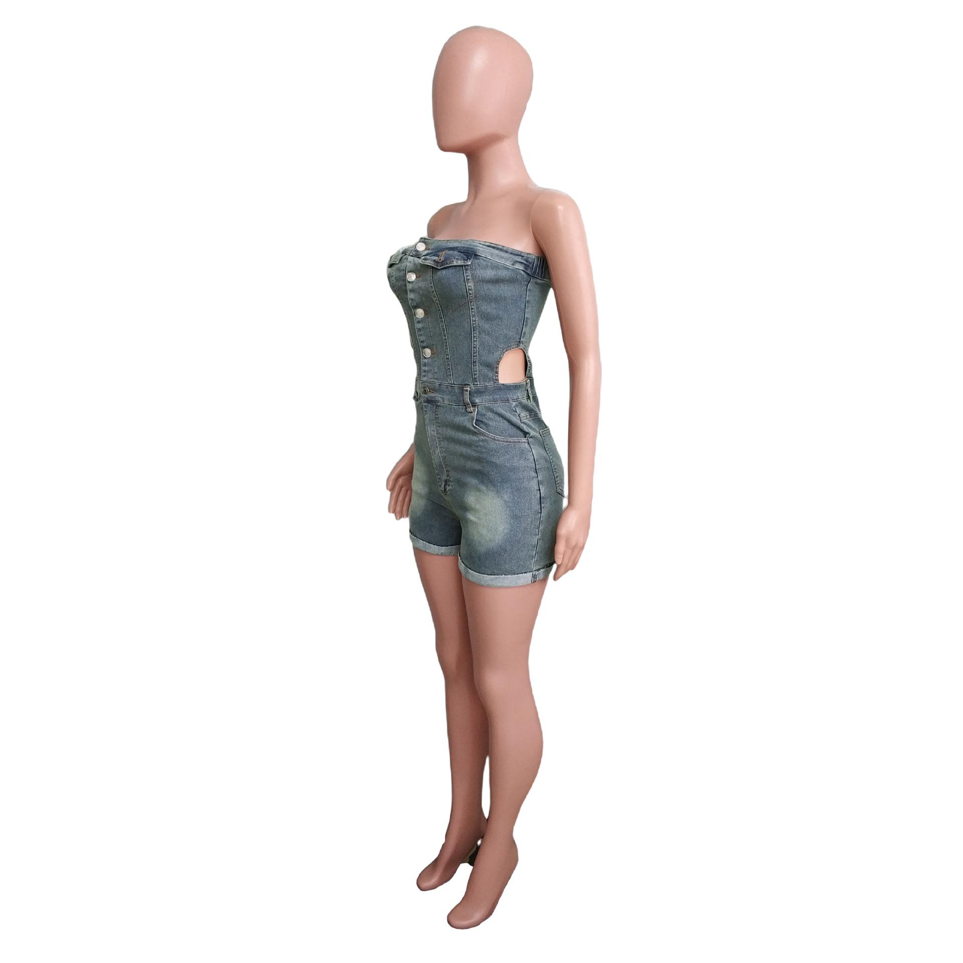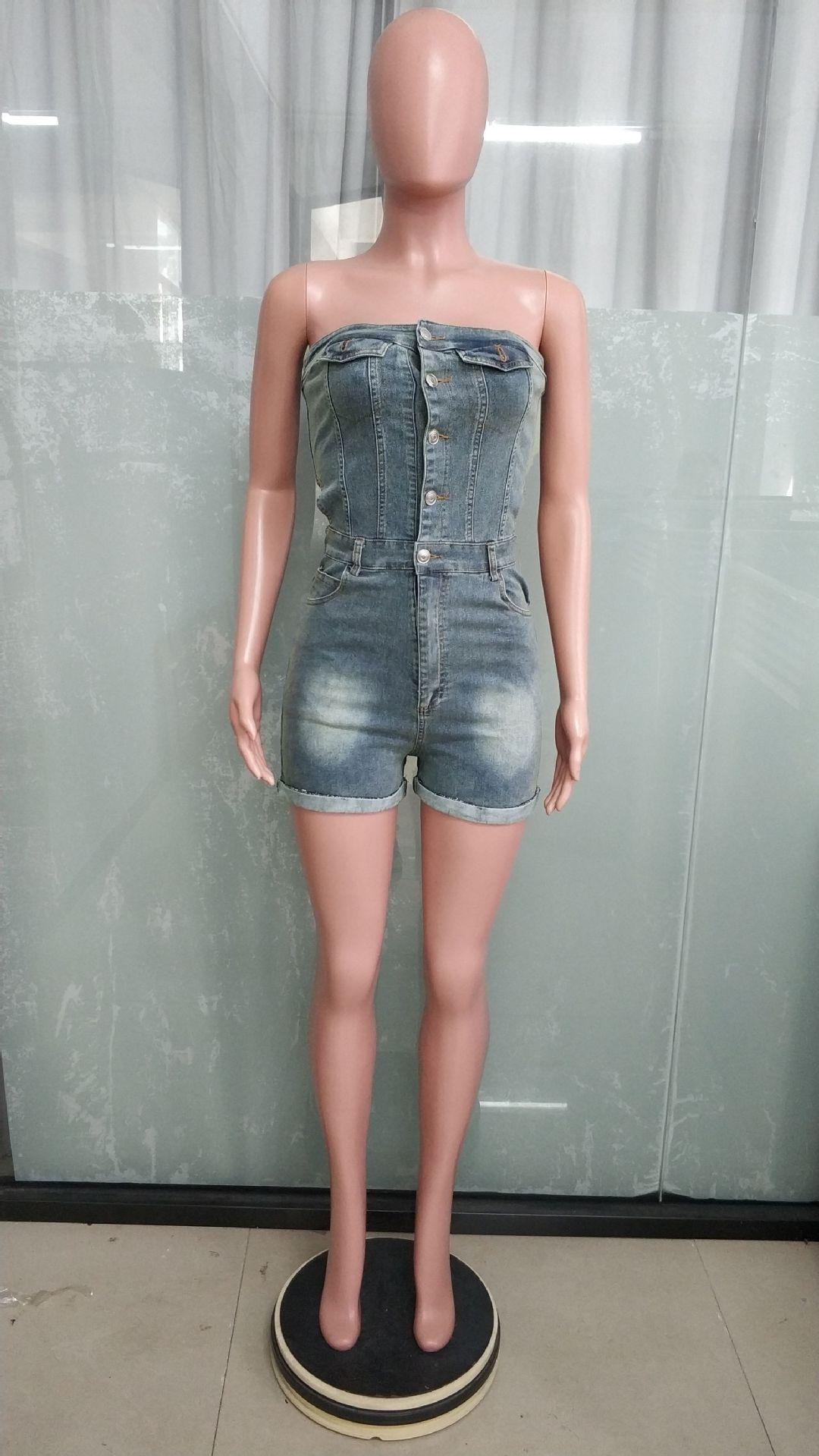 6984 Transfronterizo Amazon AliExpress Nueva moda casual europea y americana sin tirantes para mujer Denim ajustado