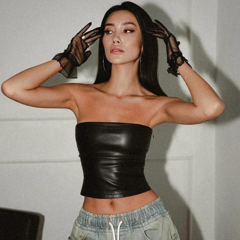 Chaleco de ombligo de Spice Girls con base de cuero PU sexy para mujer, estilo europeo y americano transfronterizo, otoño 2024