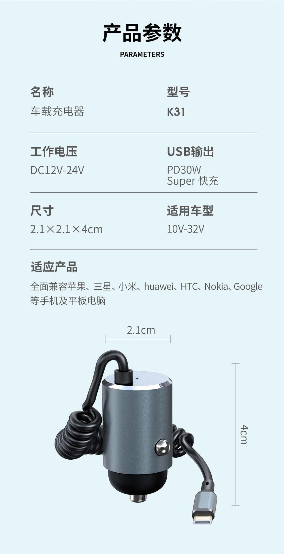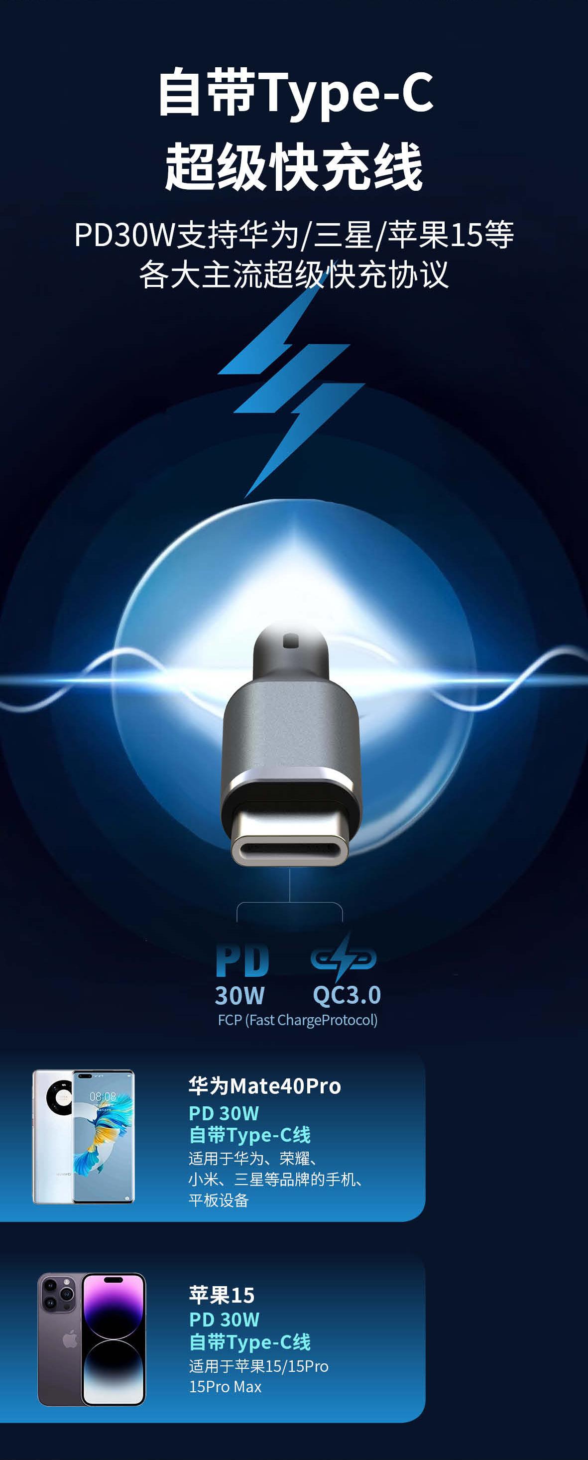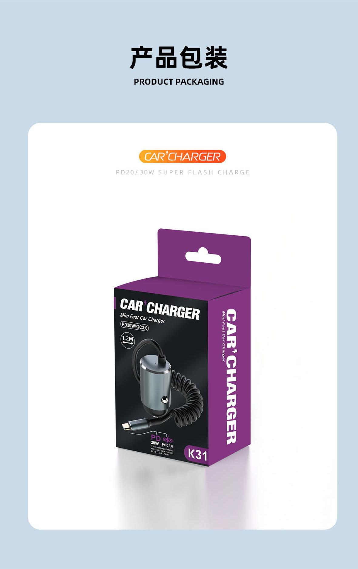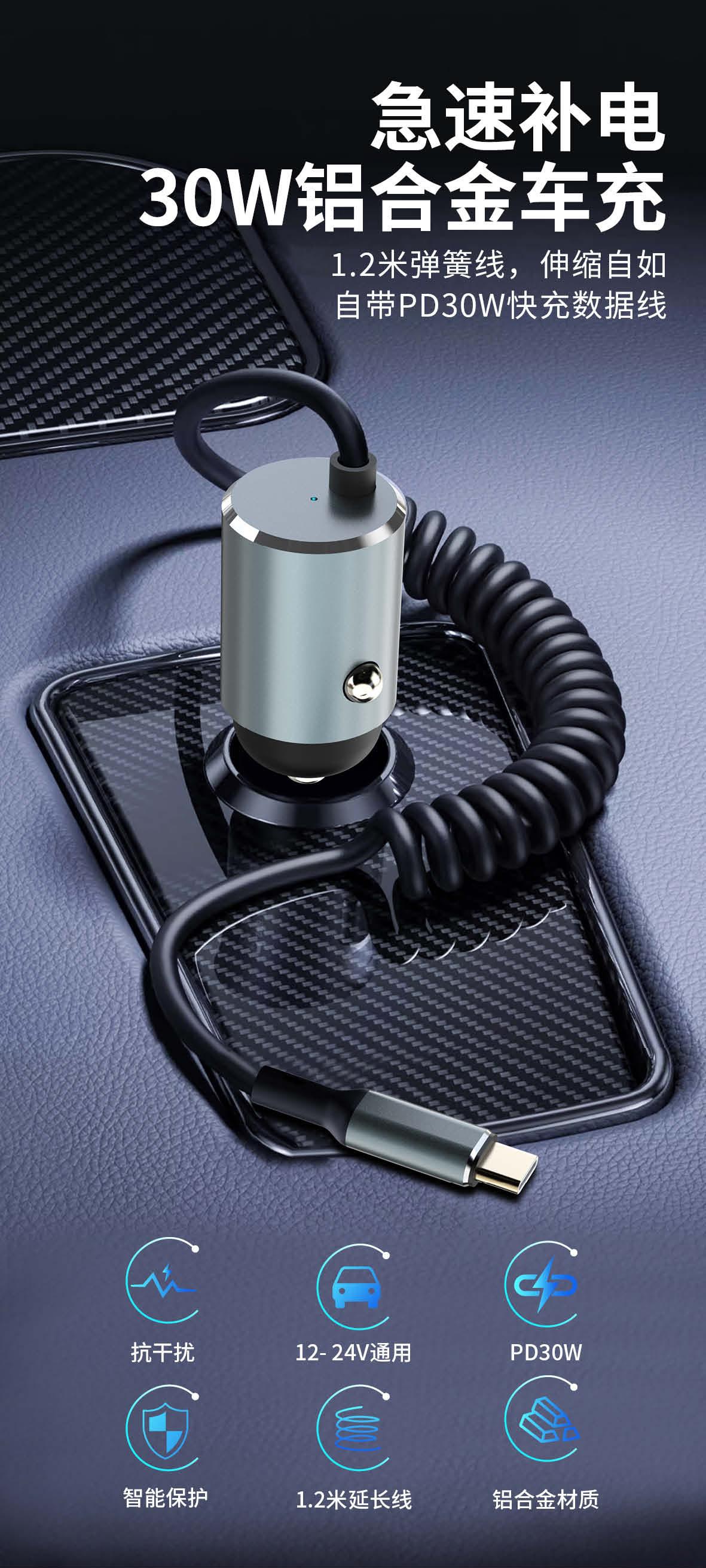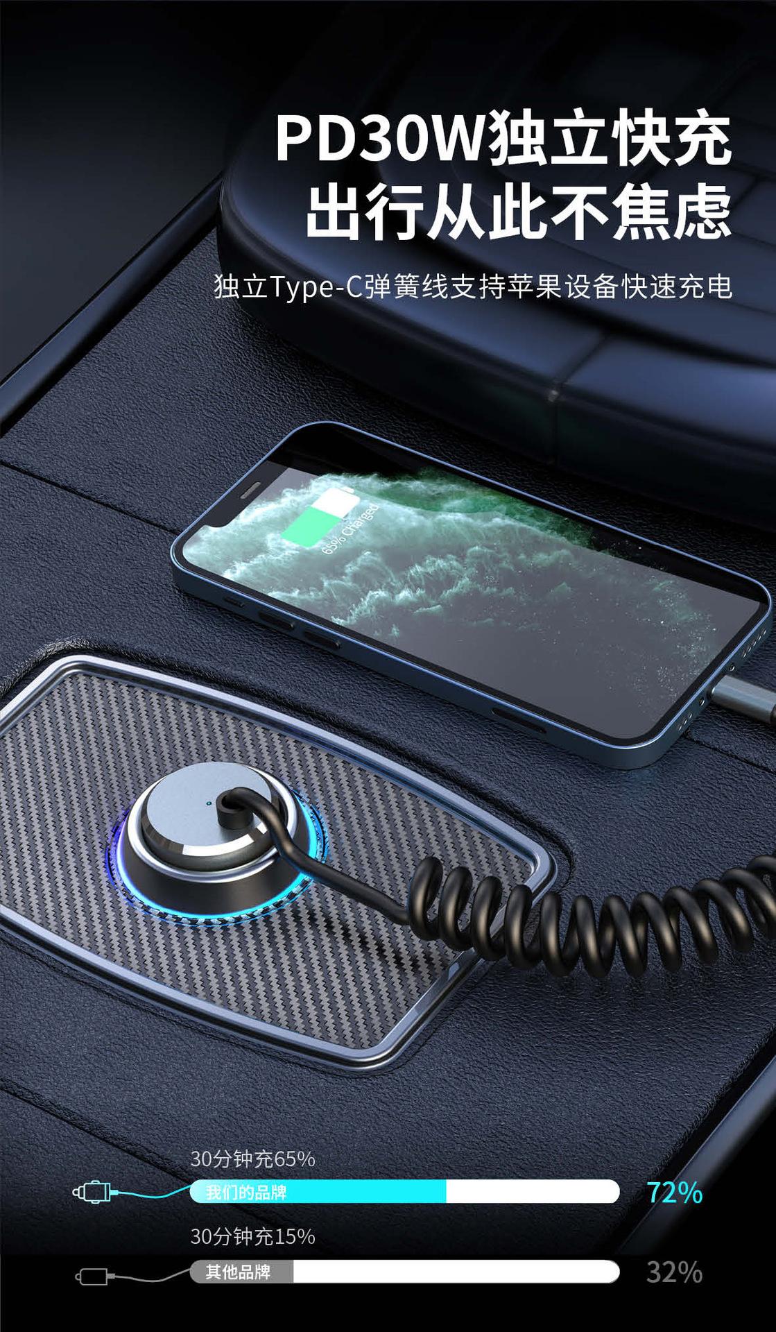 Cargador de coche en stock, cargador superrápido, carga de coche, enchufe de conversión de encendedor de cigarrillos PD30W, carga súper flash