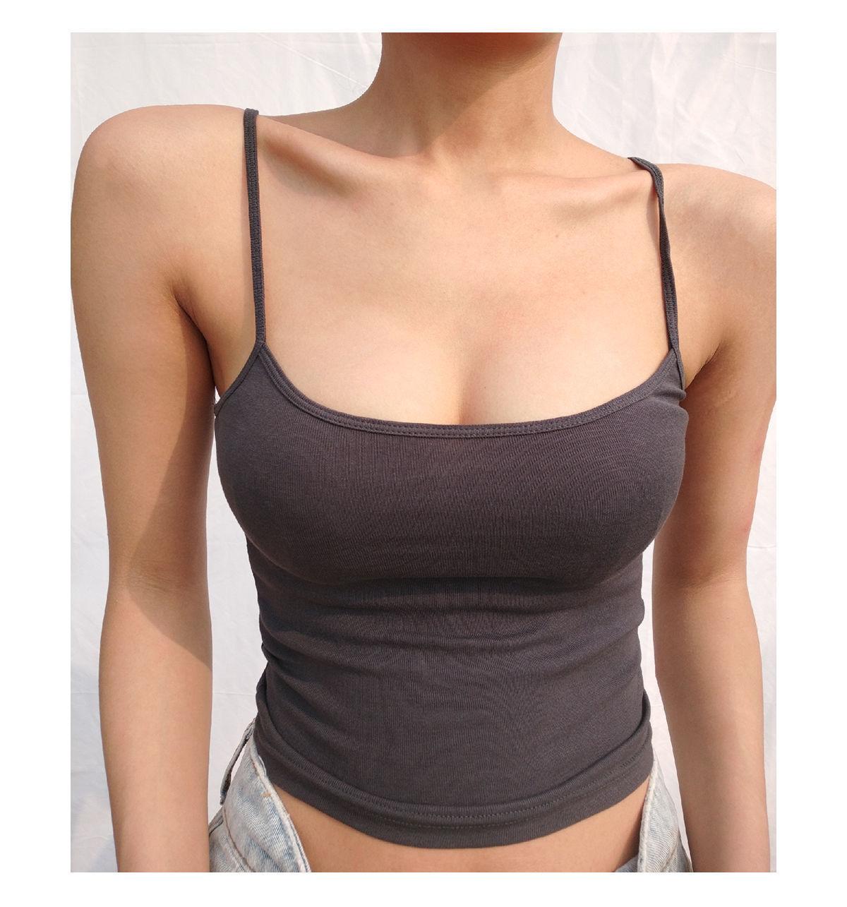 Camisola básica de verano estilo europeo y americano, de una sola pieza, ajustada hasta el ombligo, con base corta, con tirantes finos para mujer, top sexy