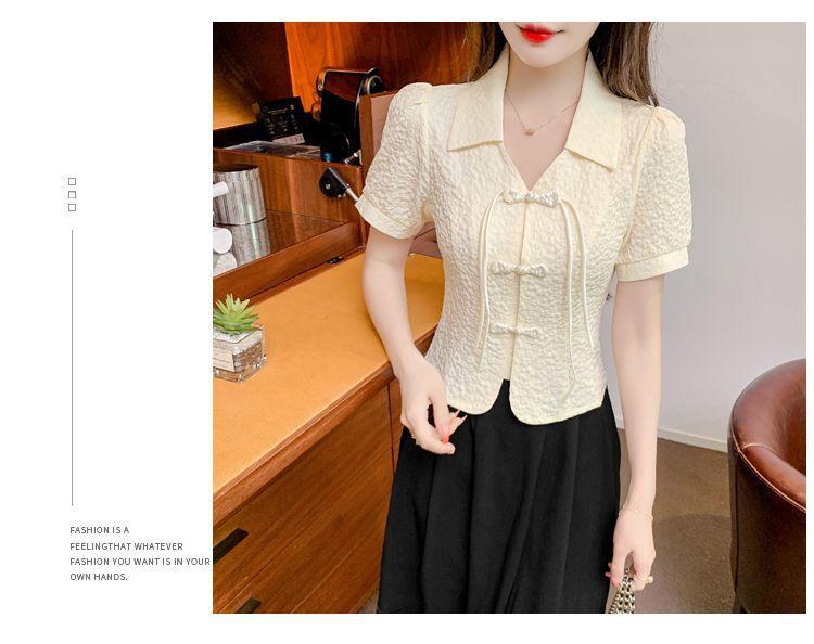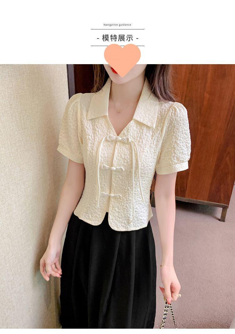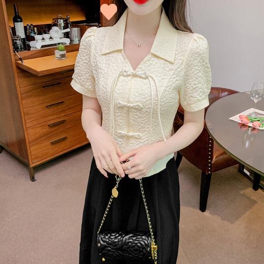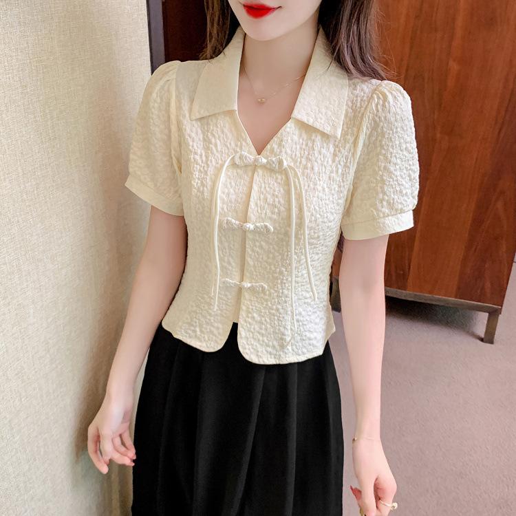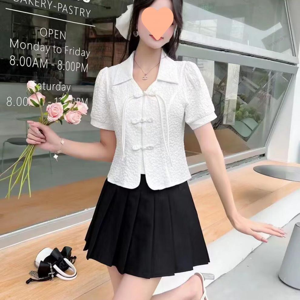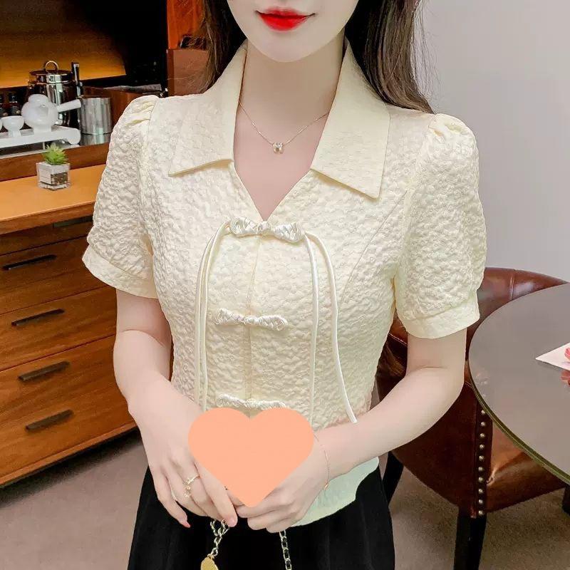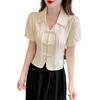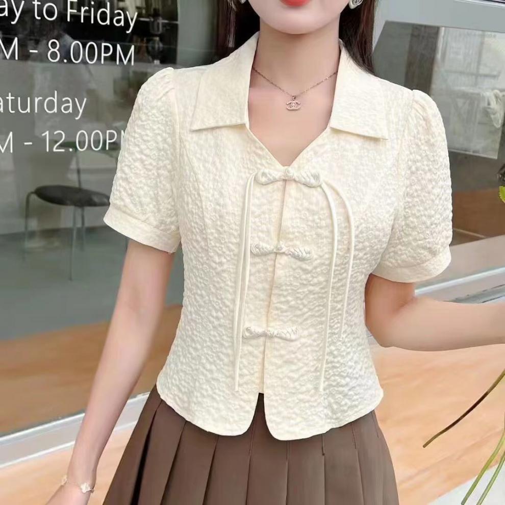 Camisa francesa de manga corta blanca de verano, nueva, con diseño de nicho, botones retro, camisa pequeña, top de manga abullonada para mujer