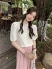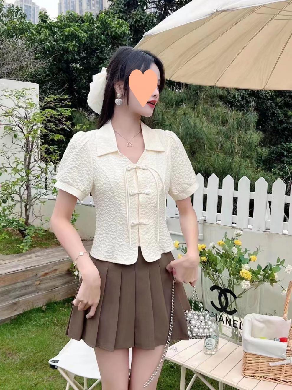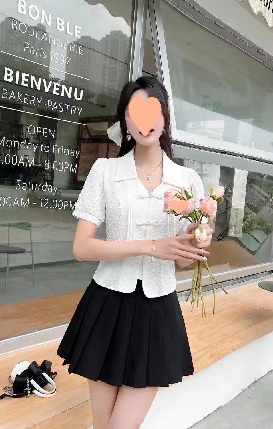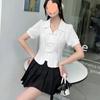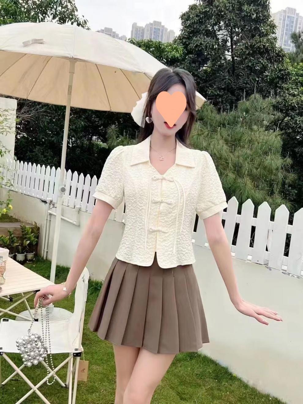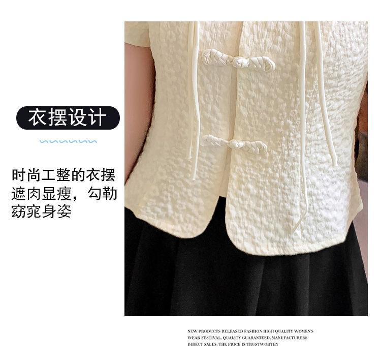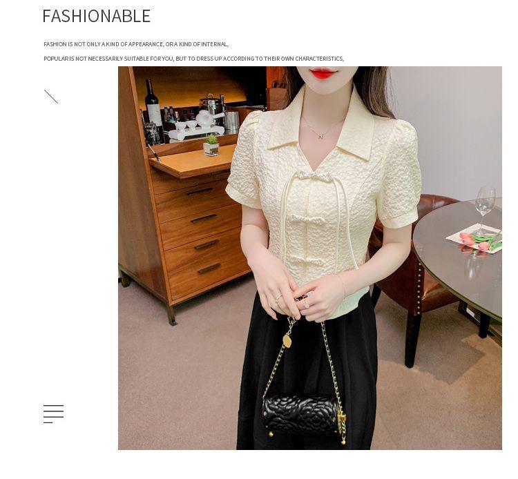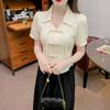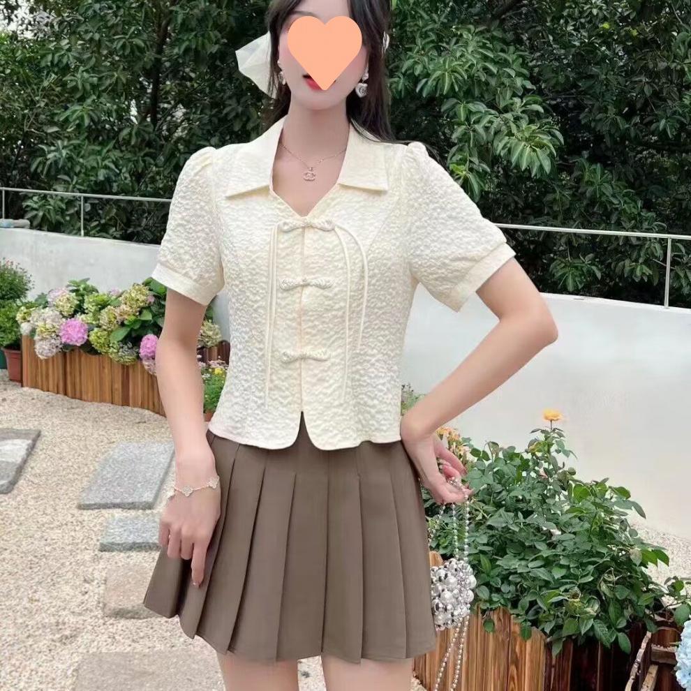 Camisa francesa de manga corta blanca de verano, nueva, con diseño de nicho, botones retro, camisa pequeña, top de manga abullonada para mujer