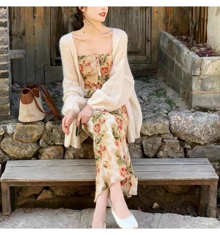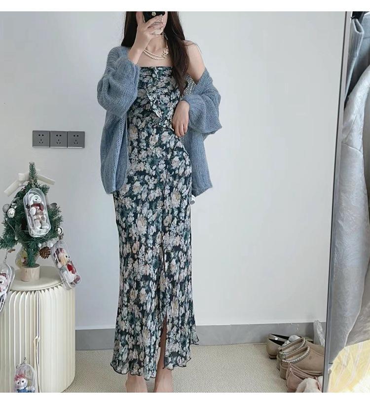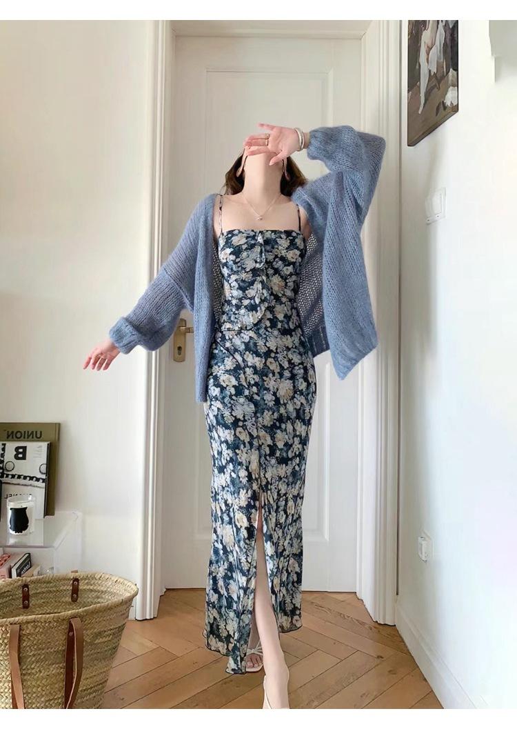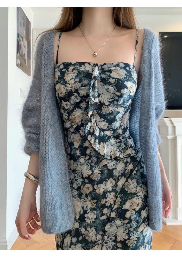 Rose red-dress-ready stock, Lanhai-dress-ready stock, Romantic blue-cardigan-ready stock, Cinnamon powder-cardigan