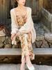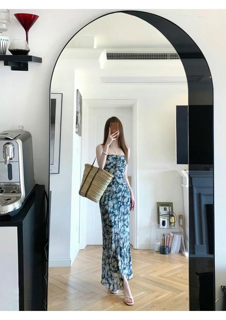 Vestido Top de Tubo con Tirantes Florales de Flor Cayendo para Mujer Vacaciones de Verano Cintura Estilo Largo